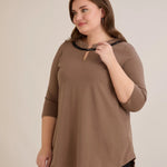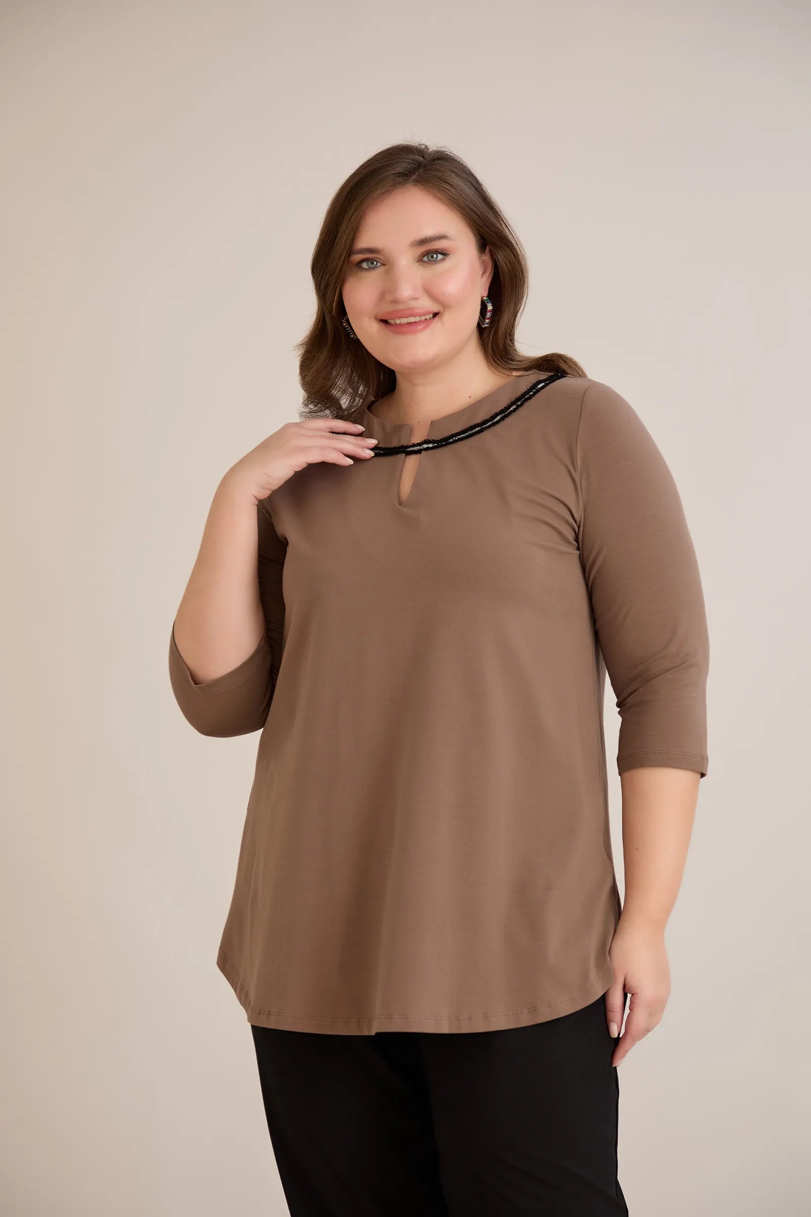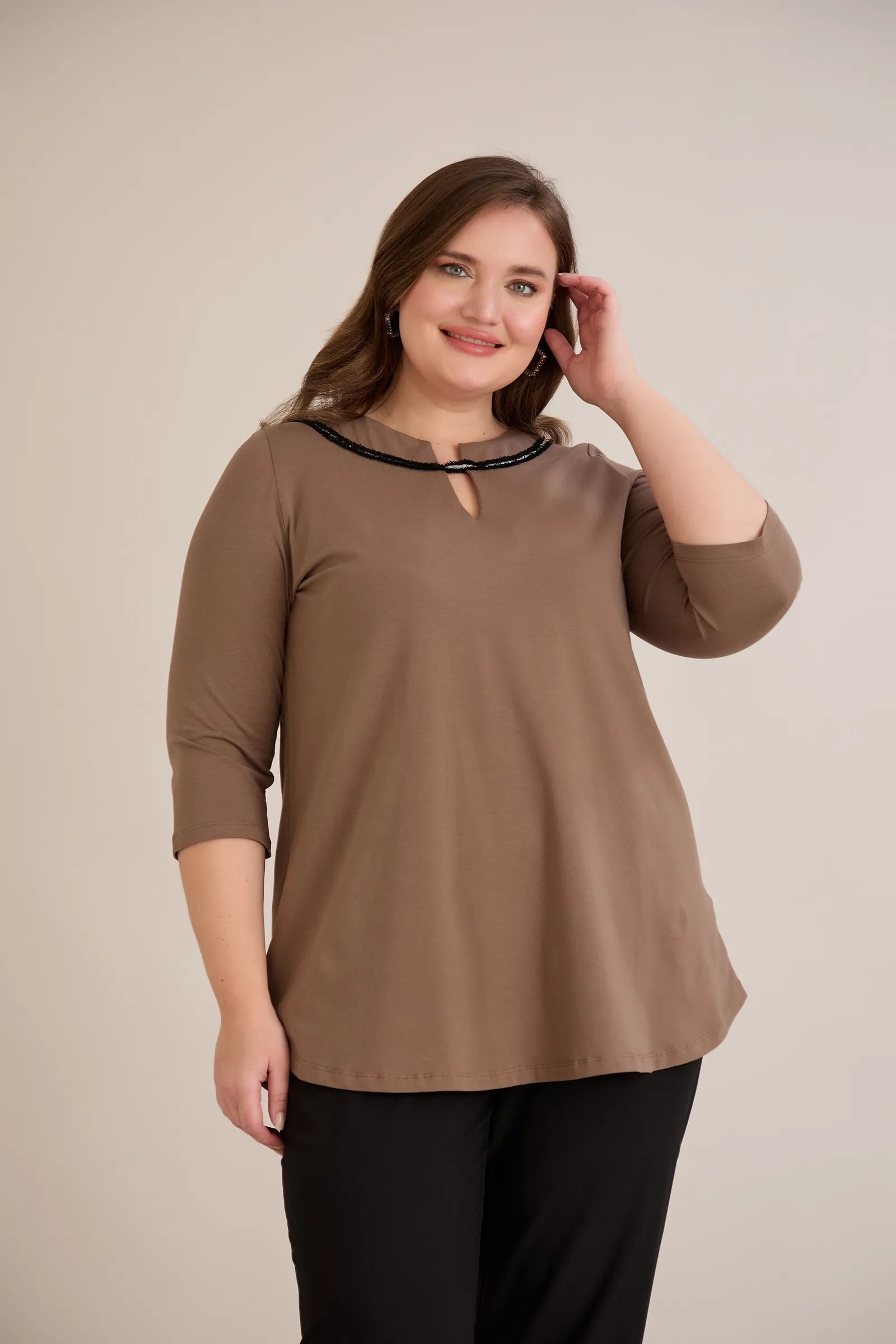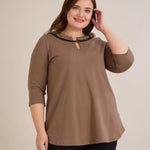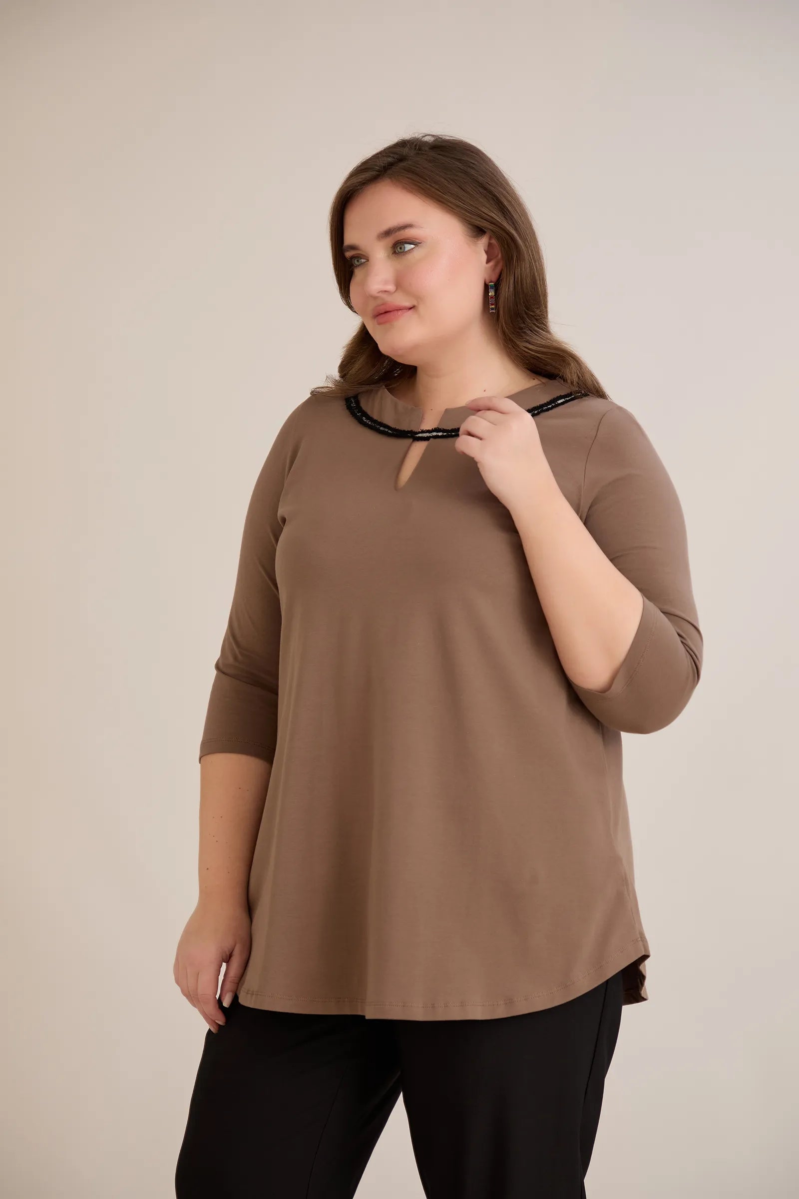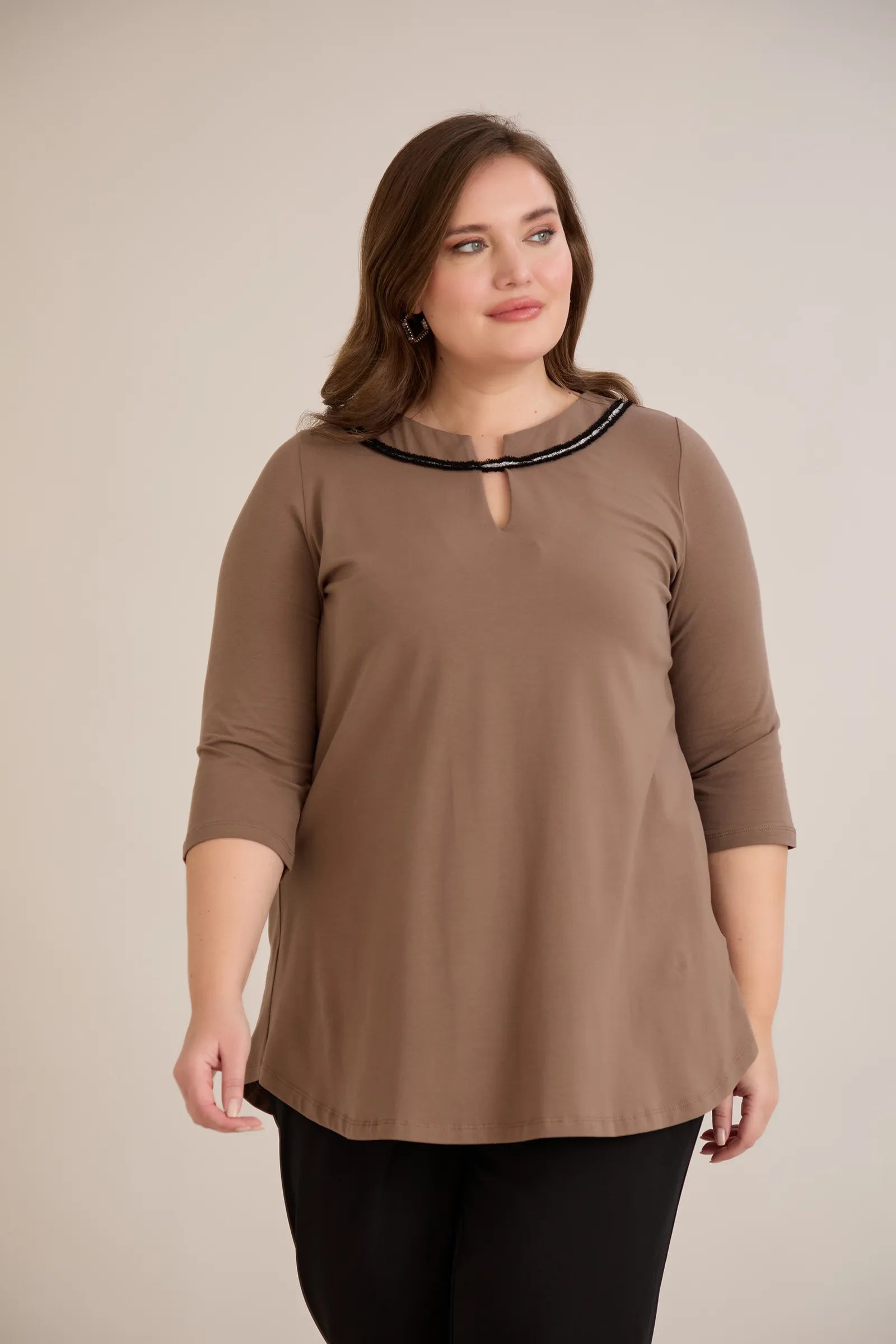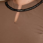 Памучна туника с ефектно деколте със сребрист акцент - мока