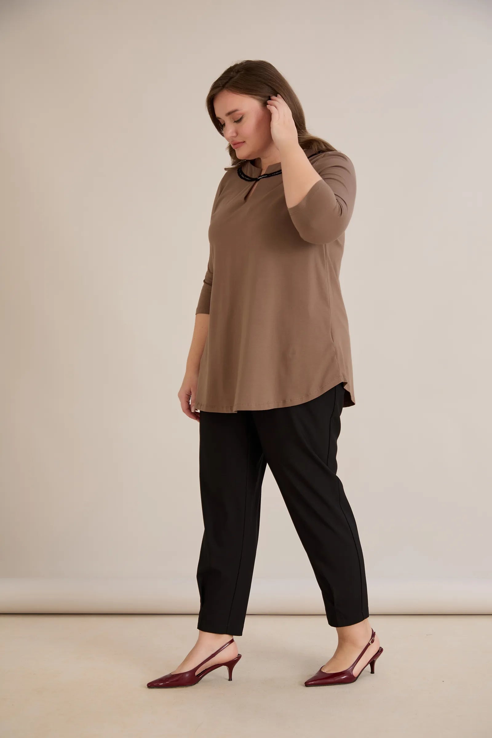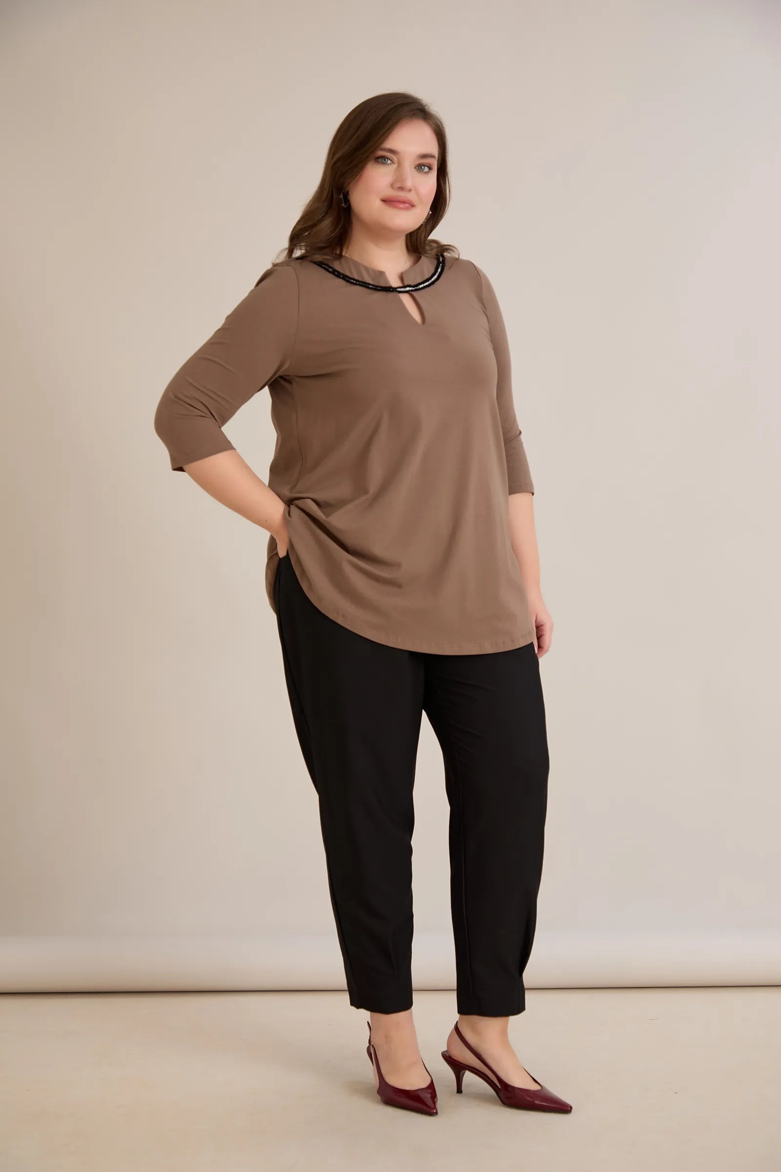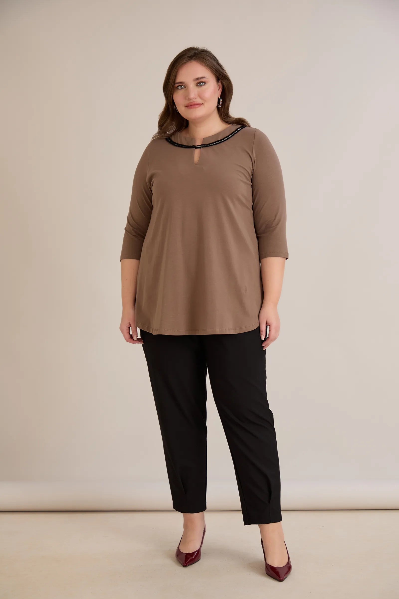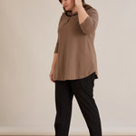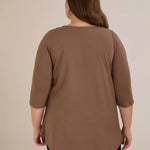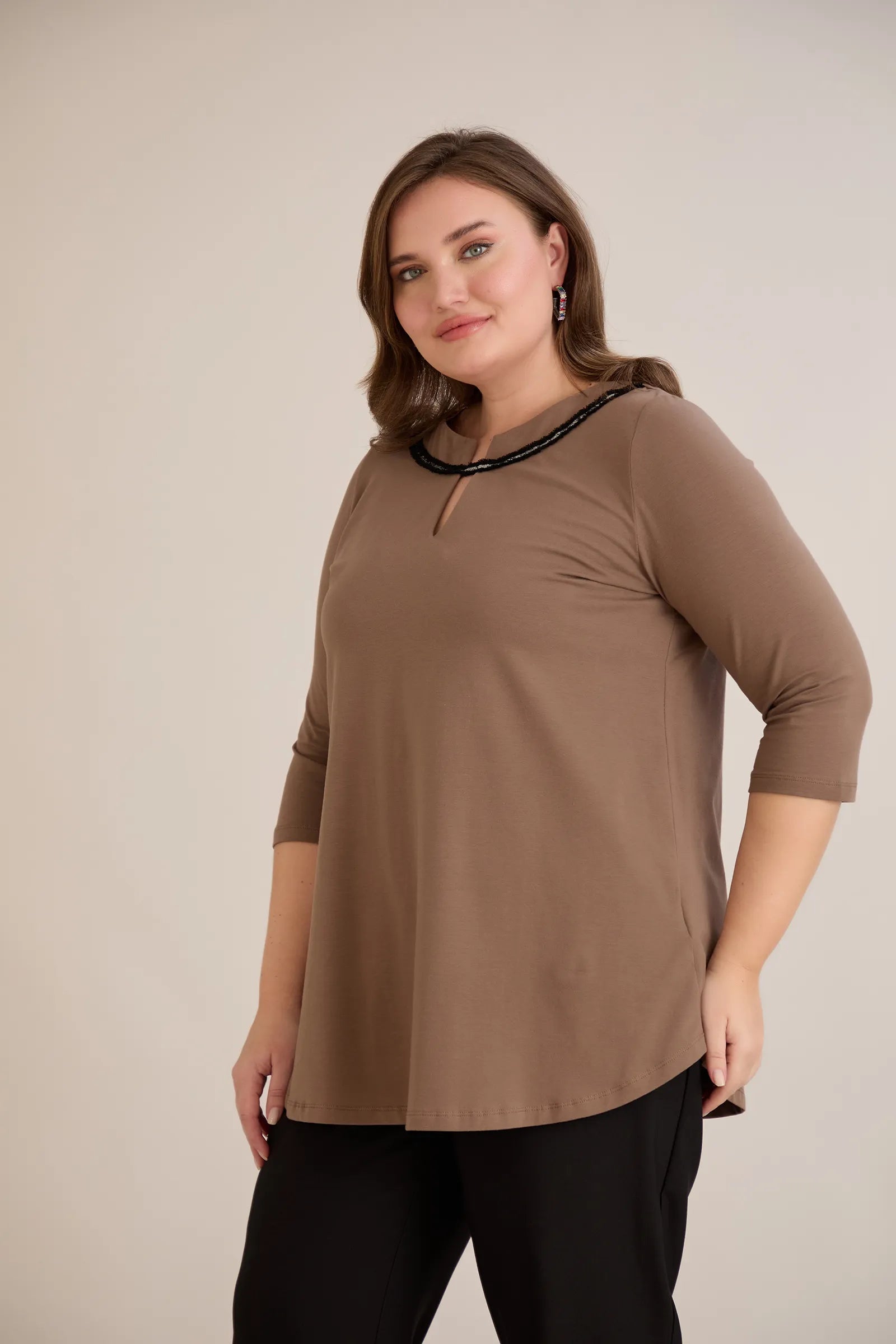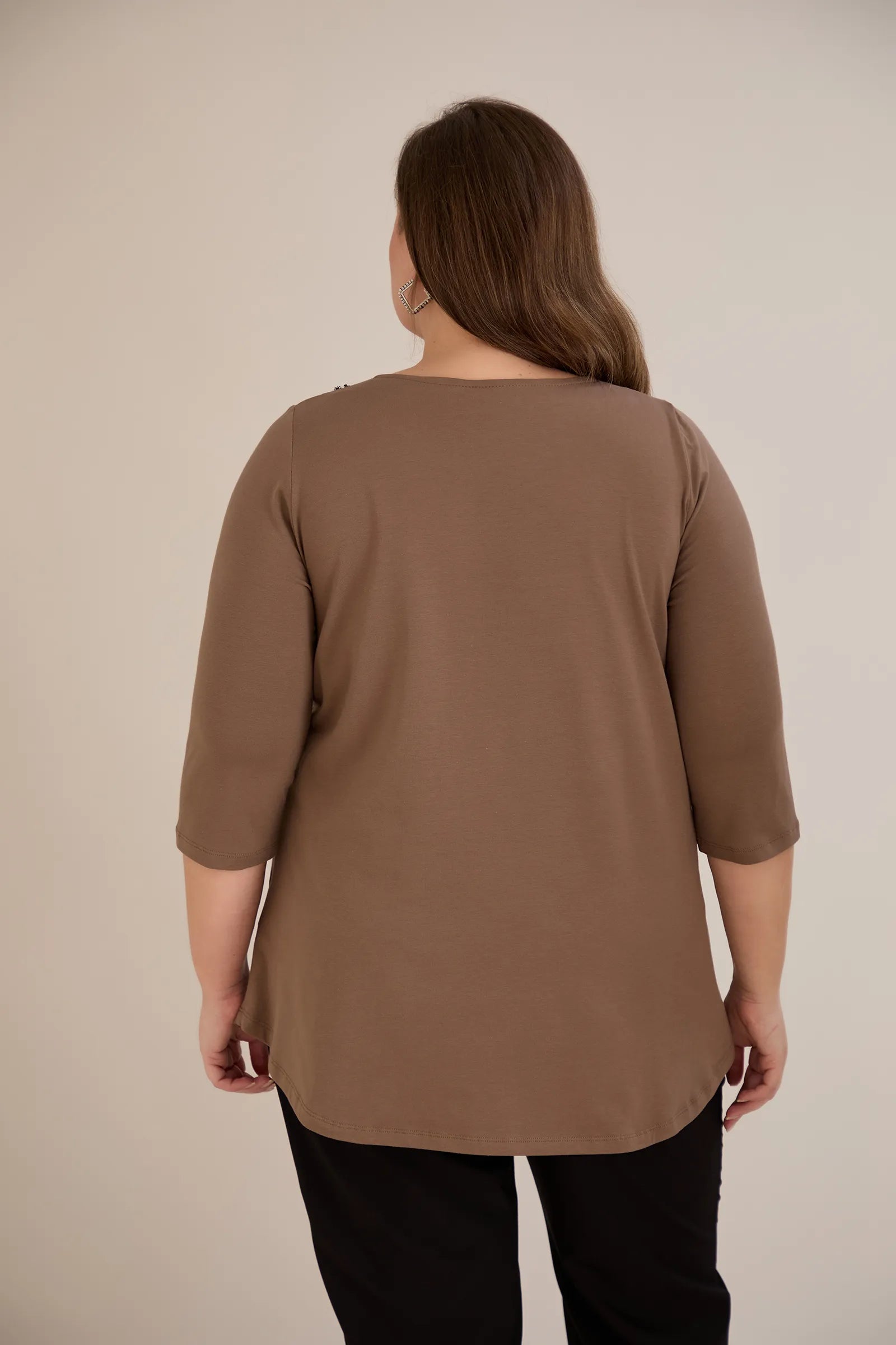 Памучна туника с ефектно деколте със сребрист акцент - мока