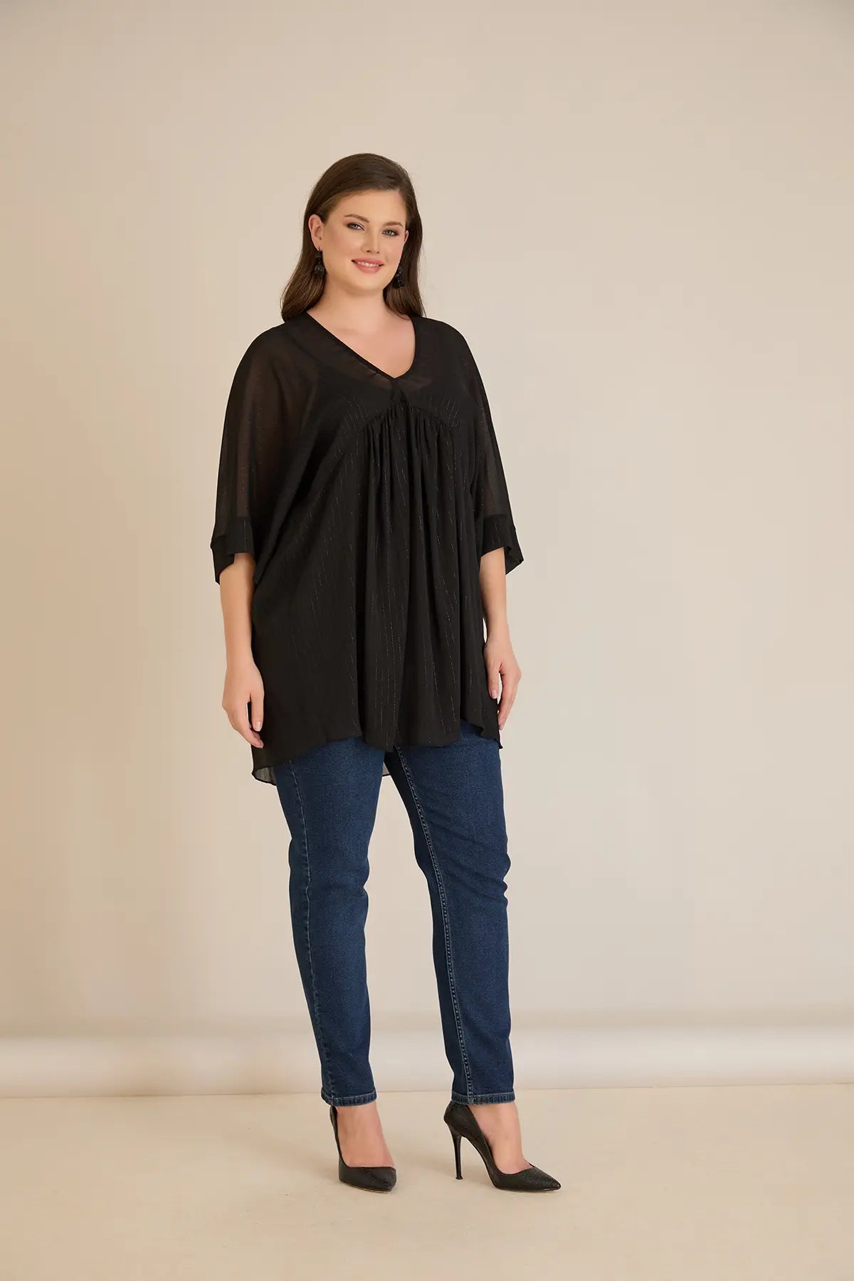 • Елегантна туника от две части, горната е шифон с дискретно ламе и топ с тънки презрамки от еластична ликра
