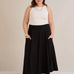 Широк летен еластичен панталон с памук - черен