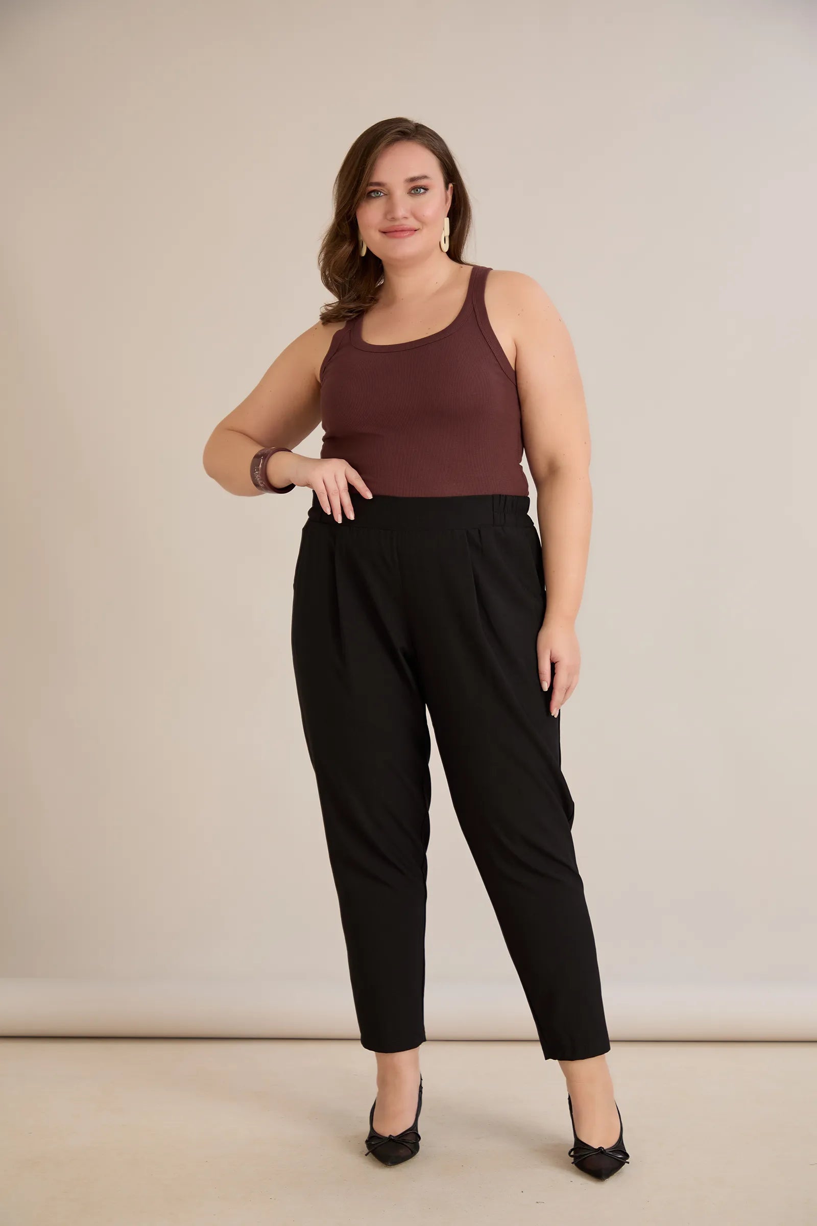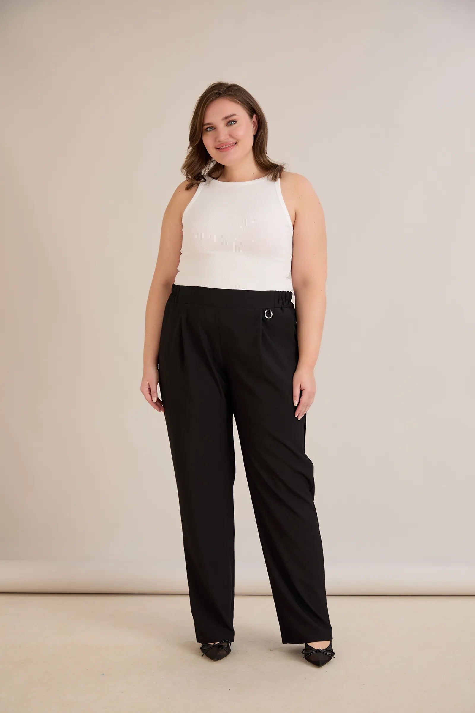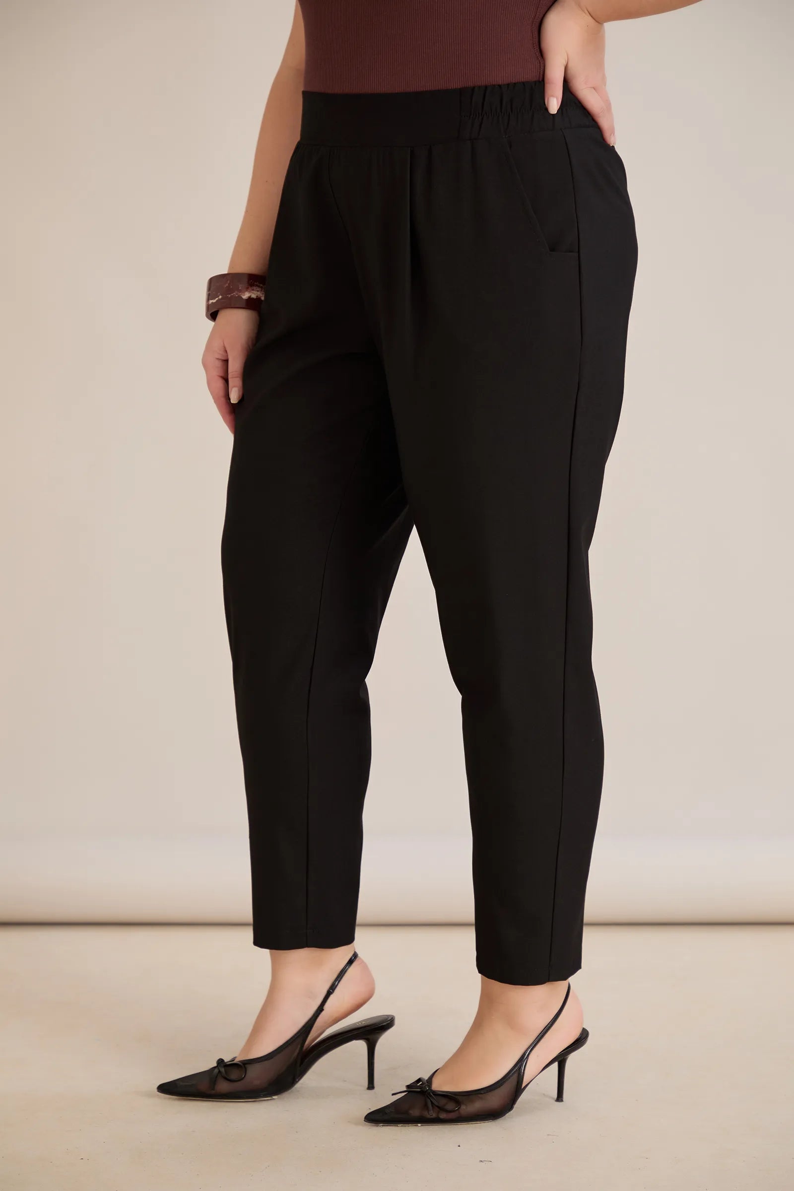 Летен еластичен панталон с памук - черен