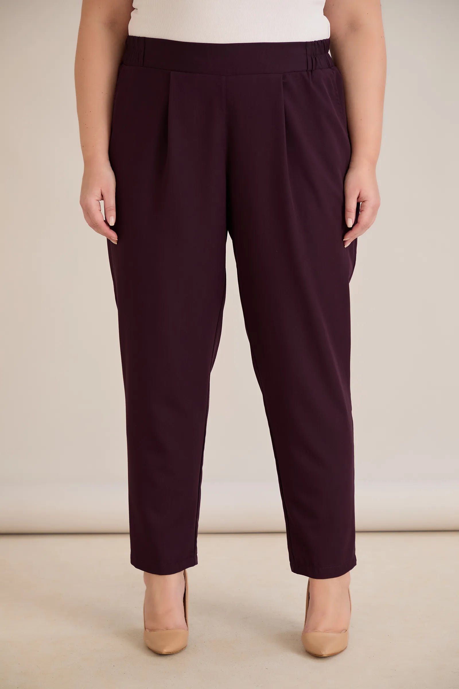 Летен еластичен панталон с памук - бургунди