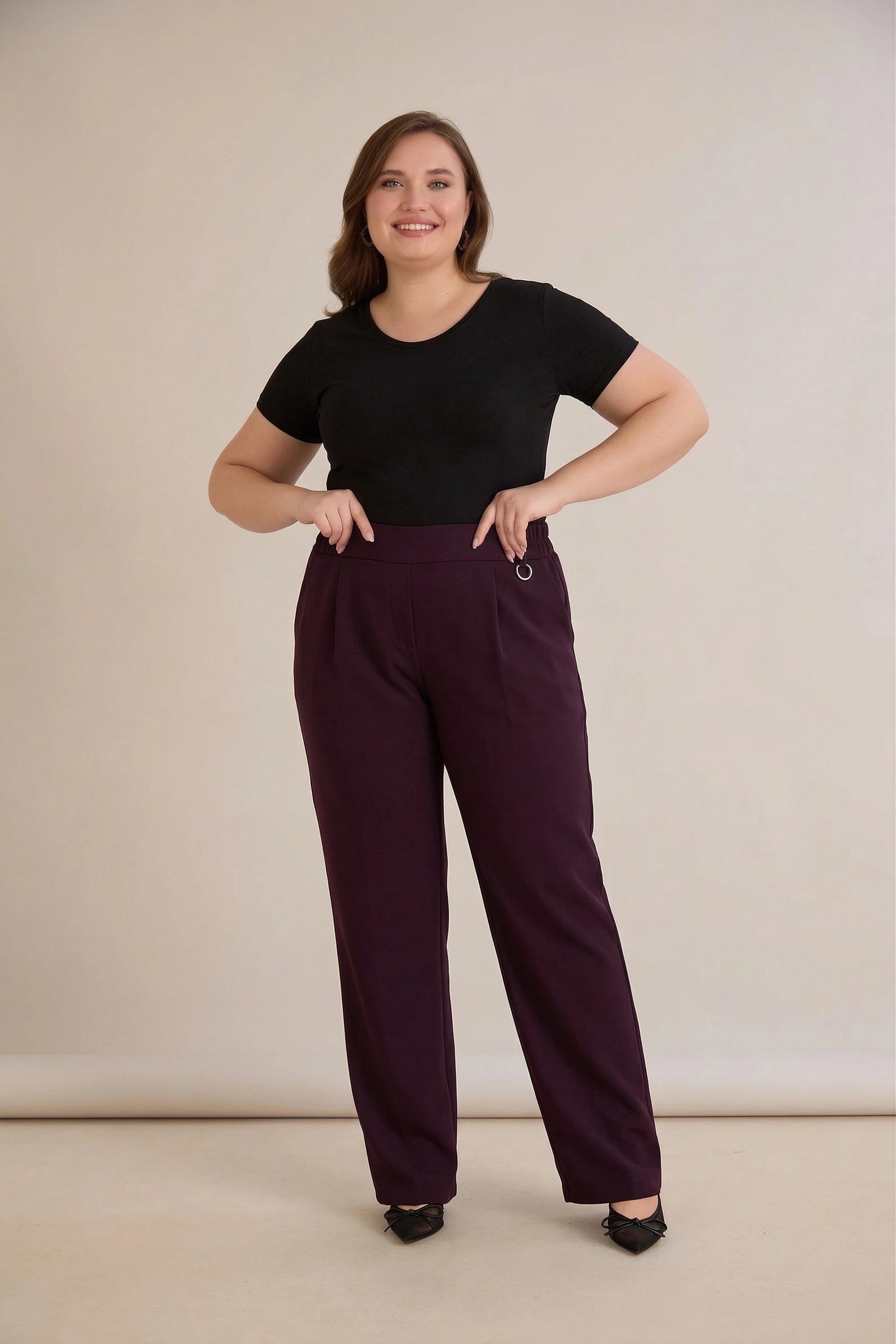 Широк летен еластичен панталон с памук - бургунди