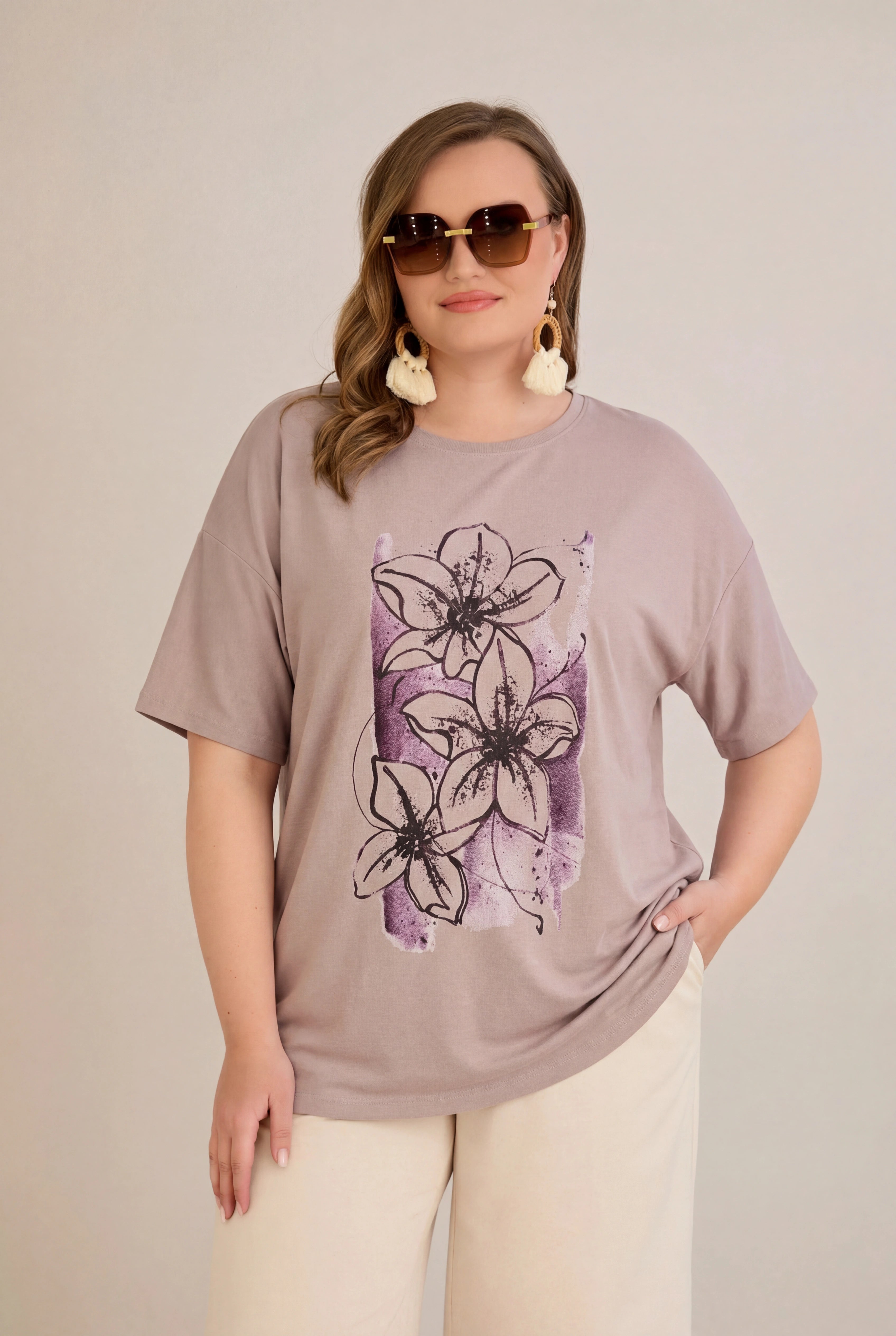 Памучна тениска с флорална апликация