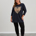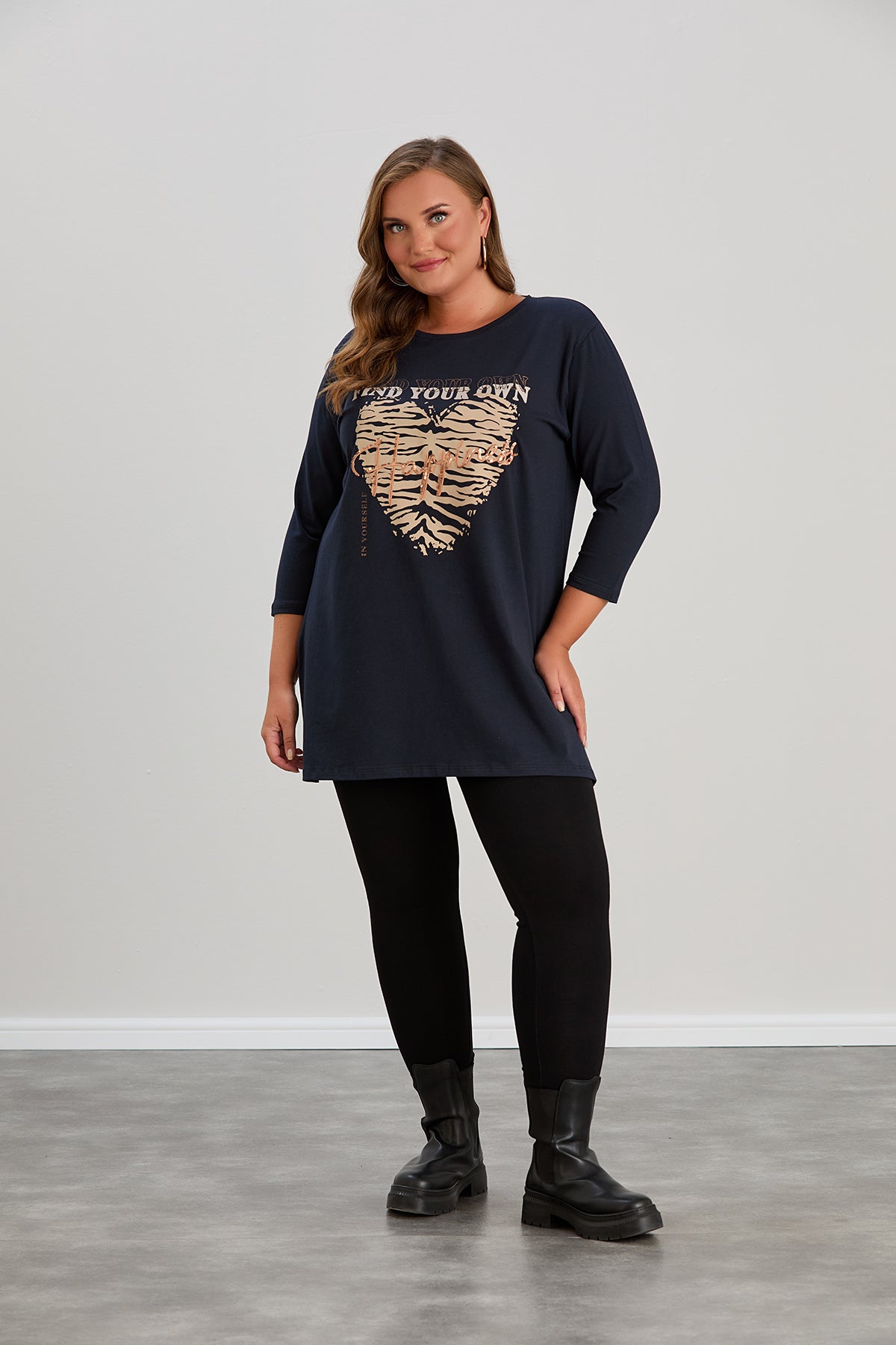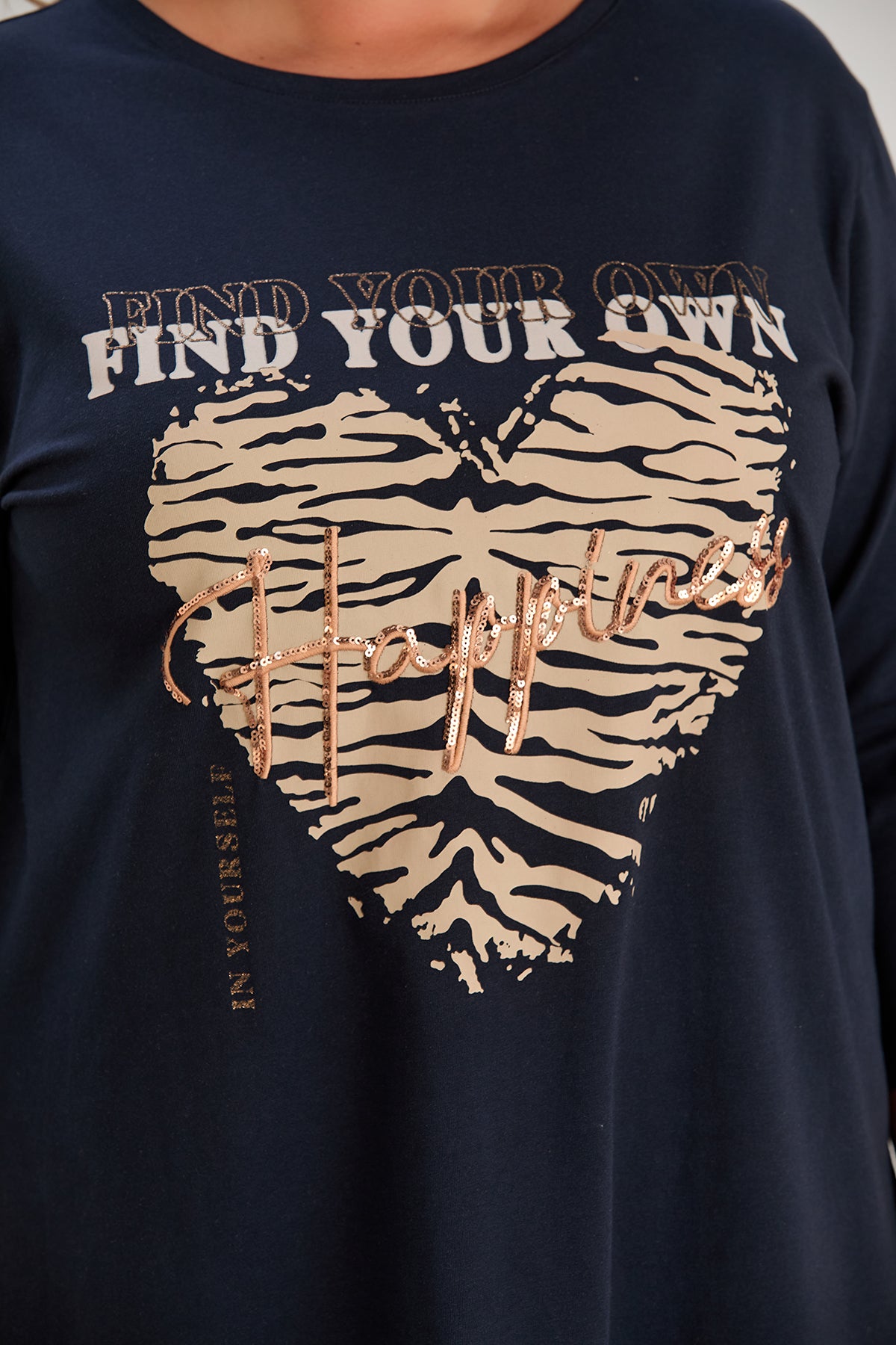 Дамска памучна туника с щампа "Happiness" - тъмносиня