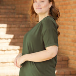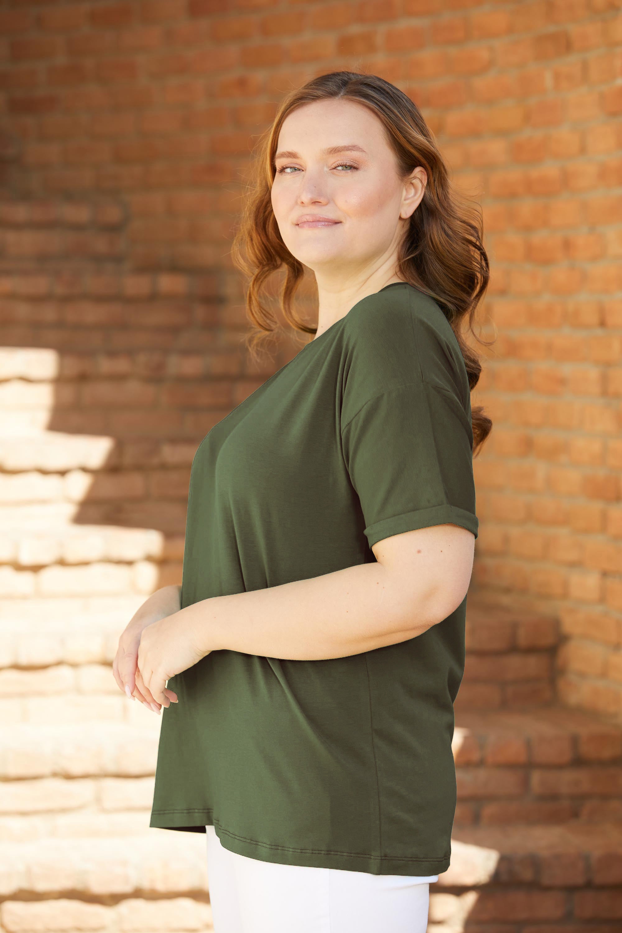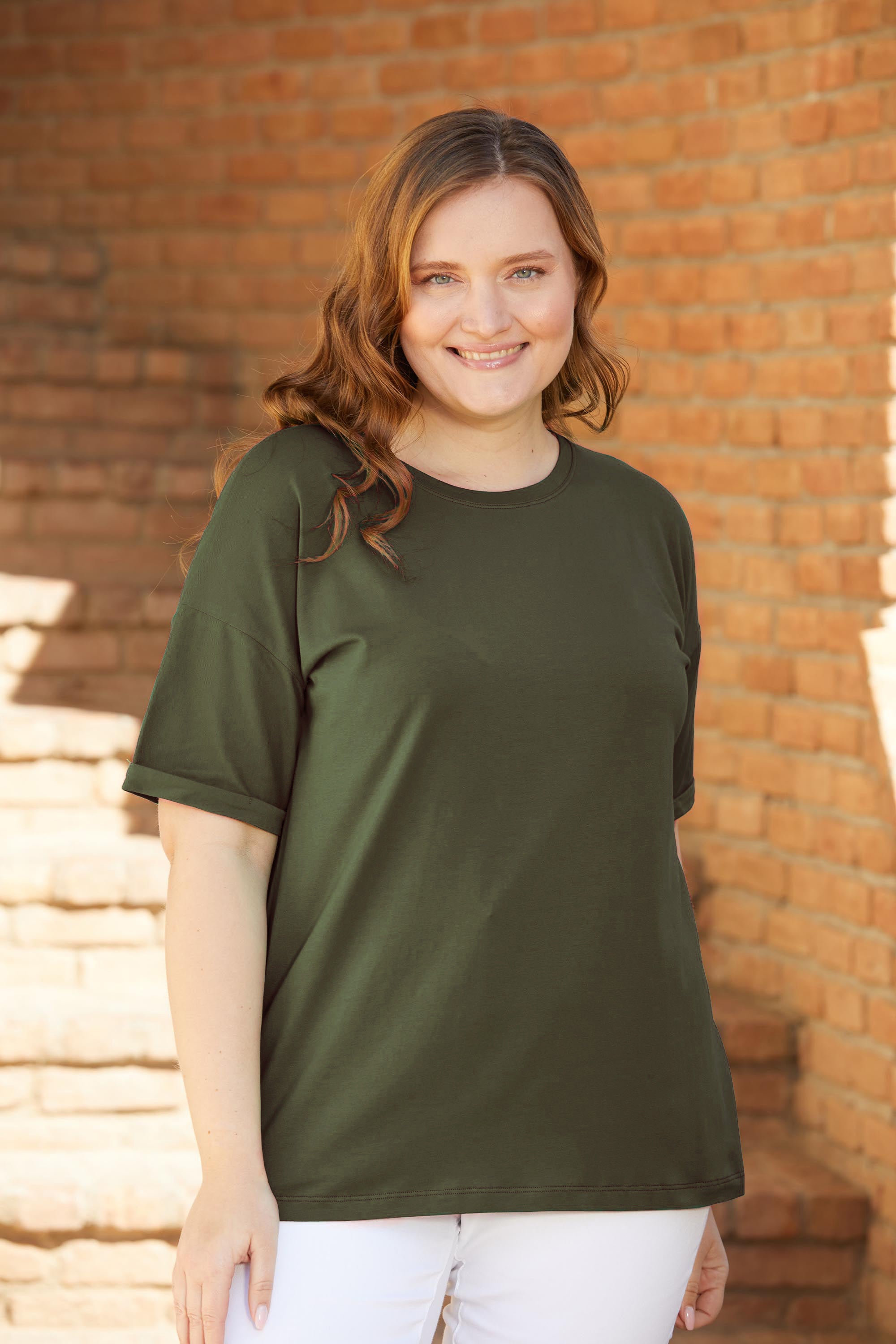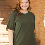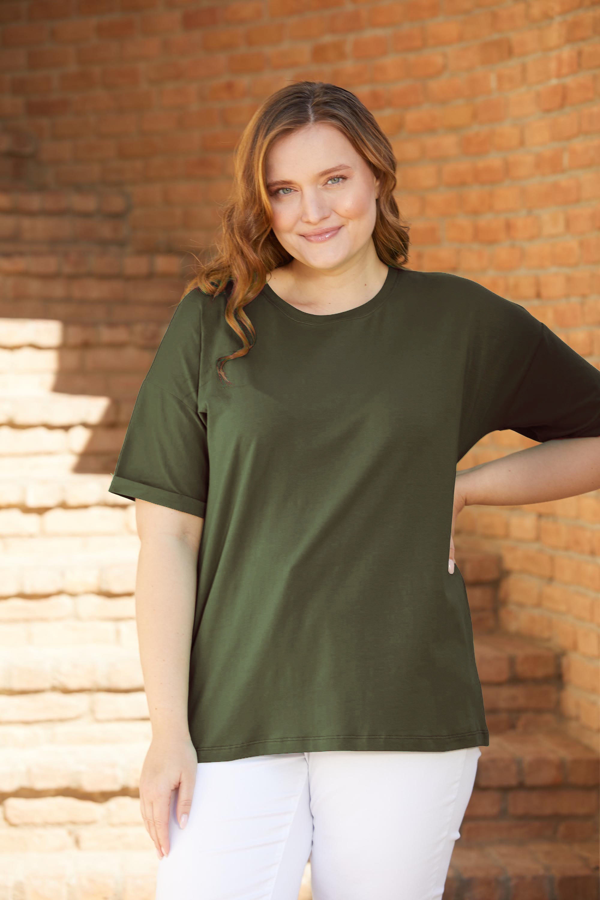 Дамска памучна тениска голям размер - Каки