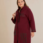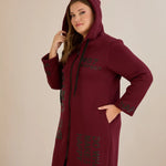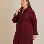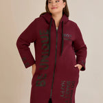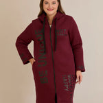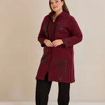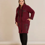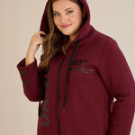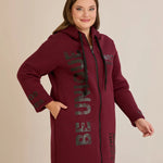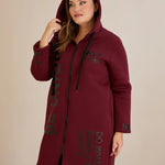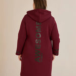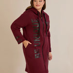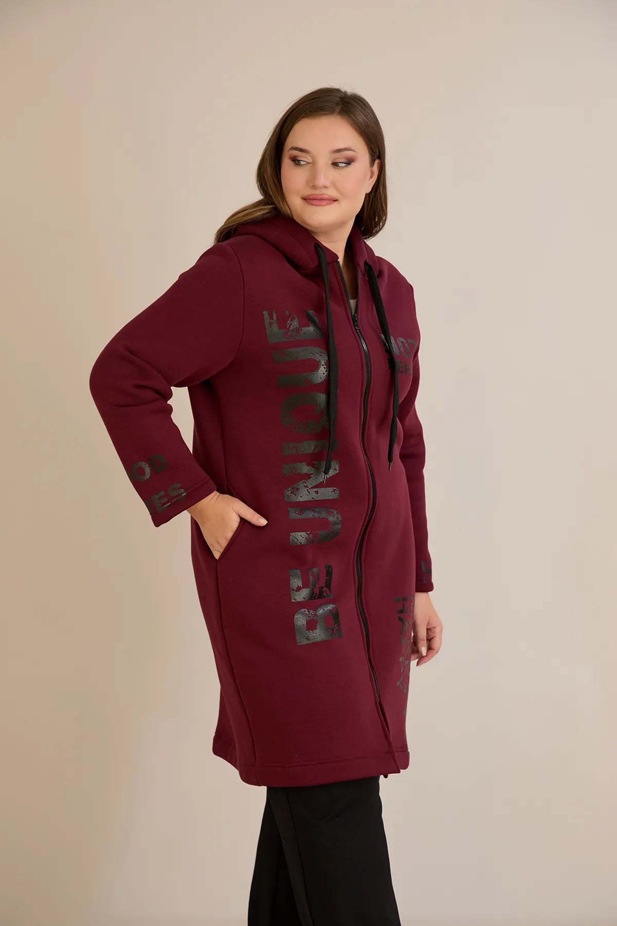 Дълъг суитшърт от триконечна вата с качулка - бордо
