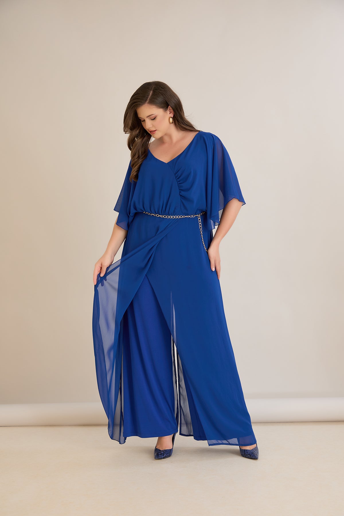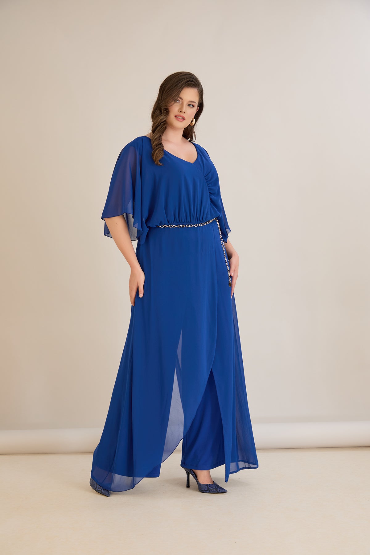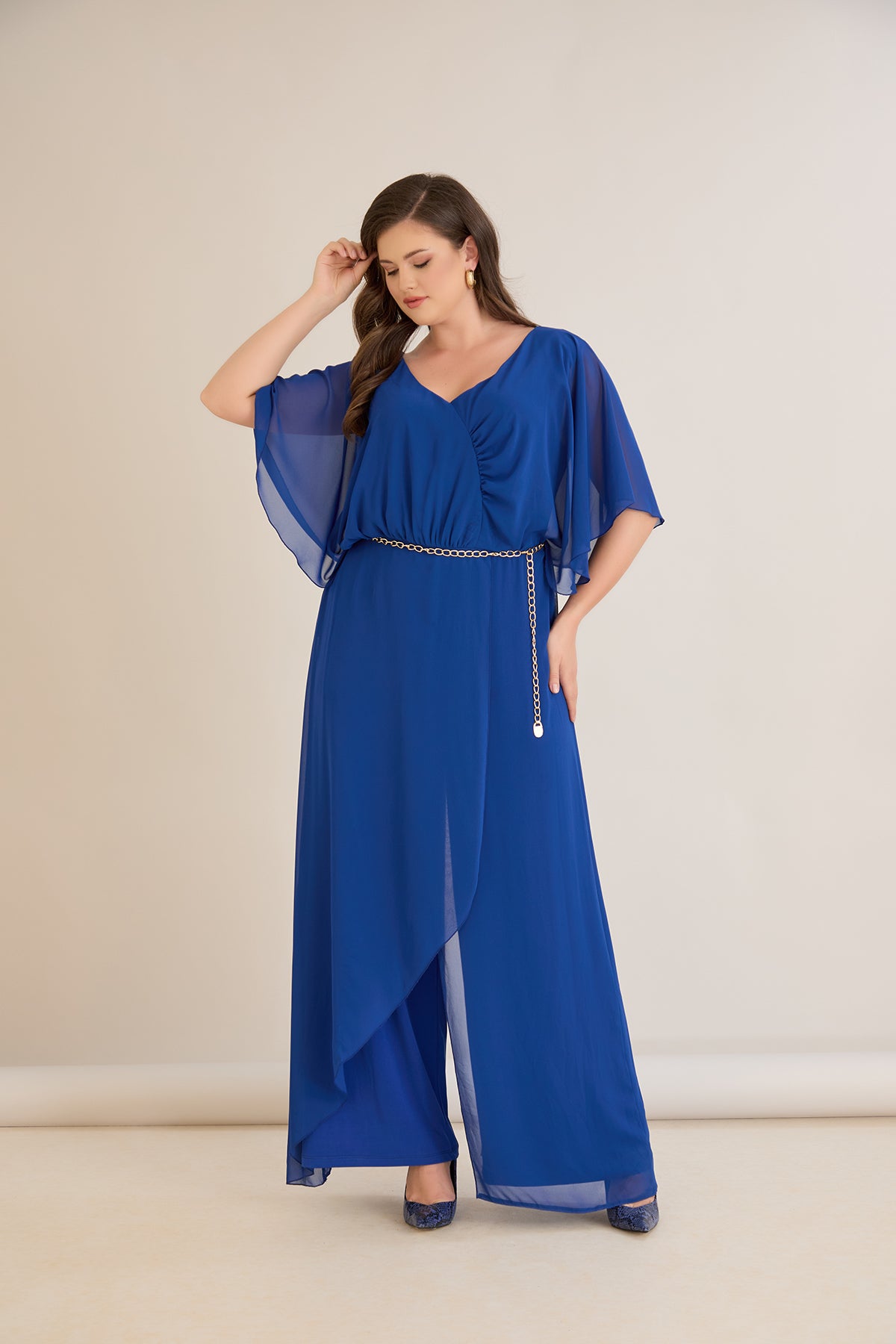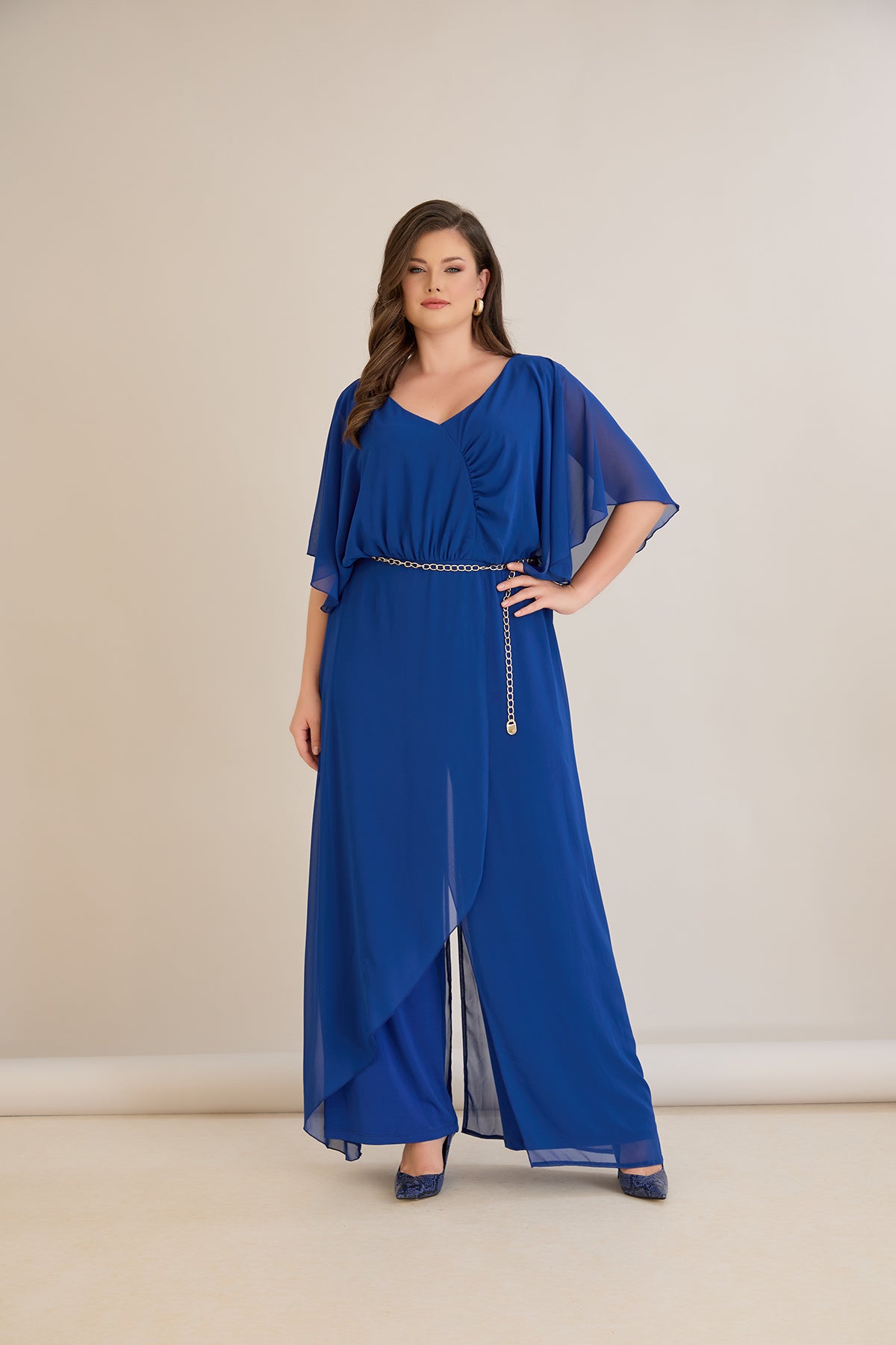 Елегантен гащеризон от шифон със синджир - кобалт