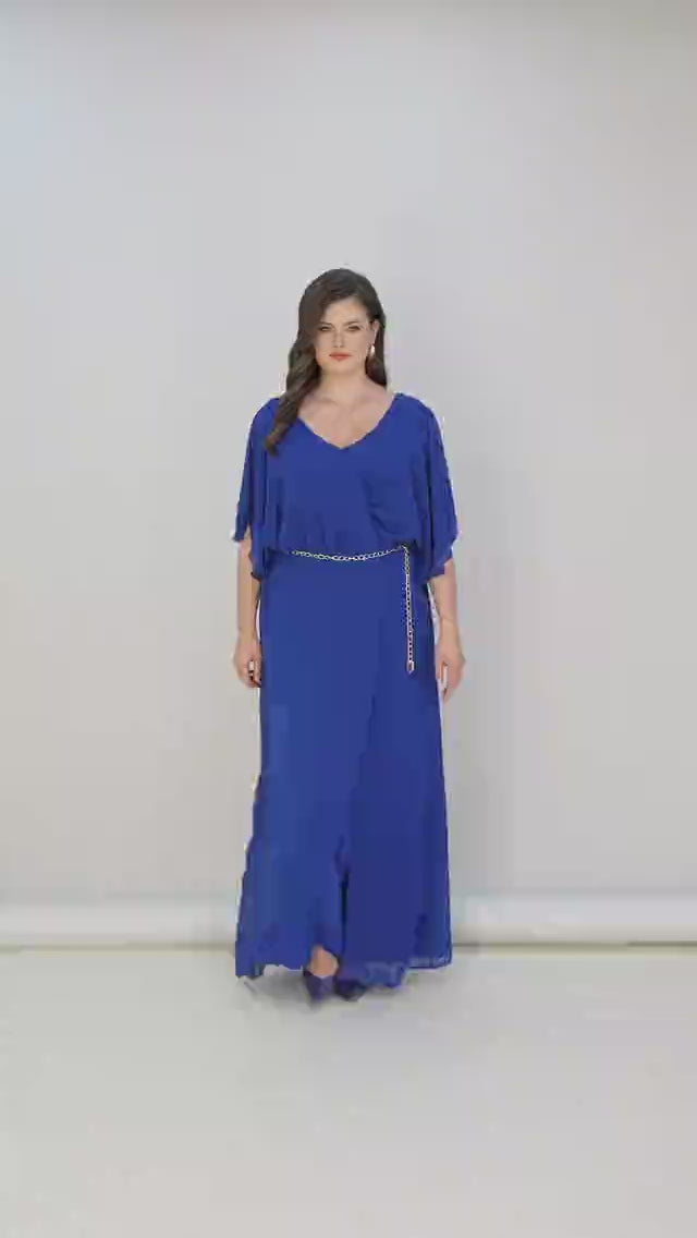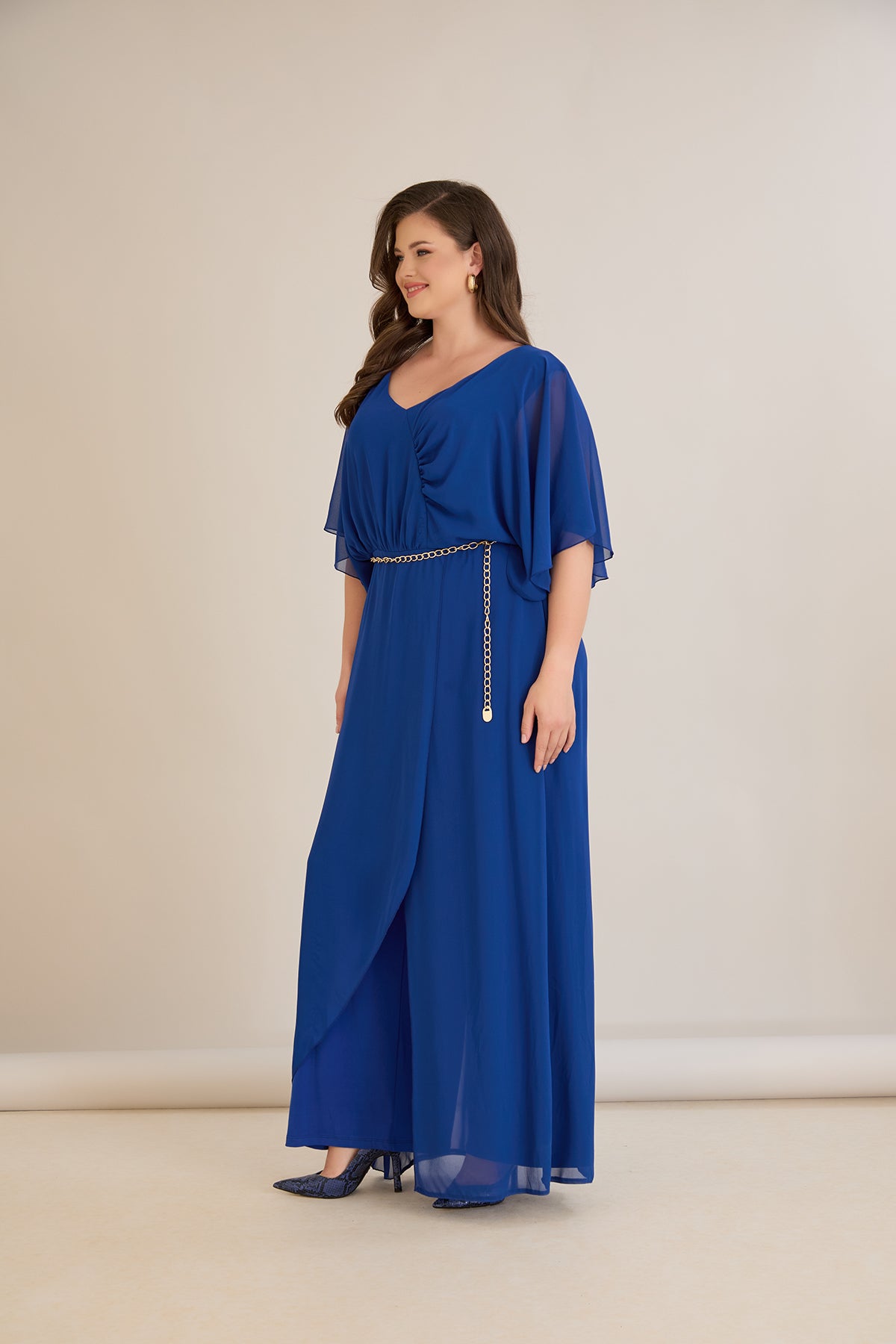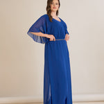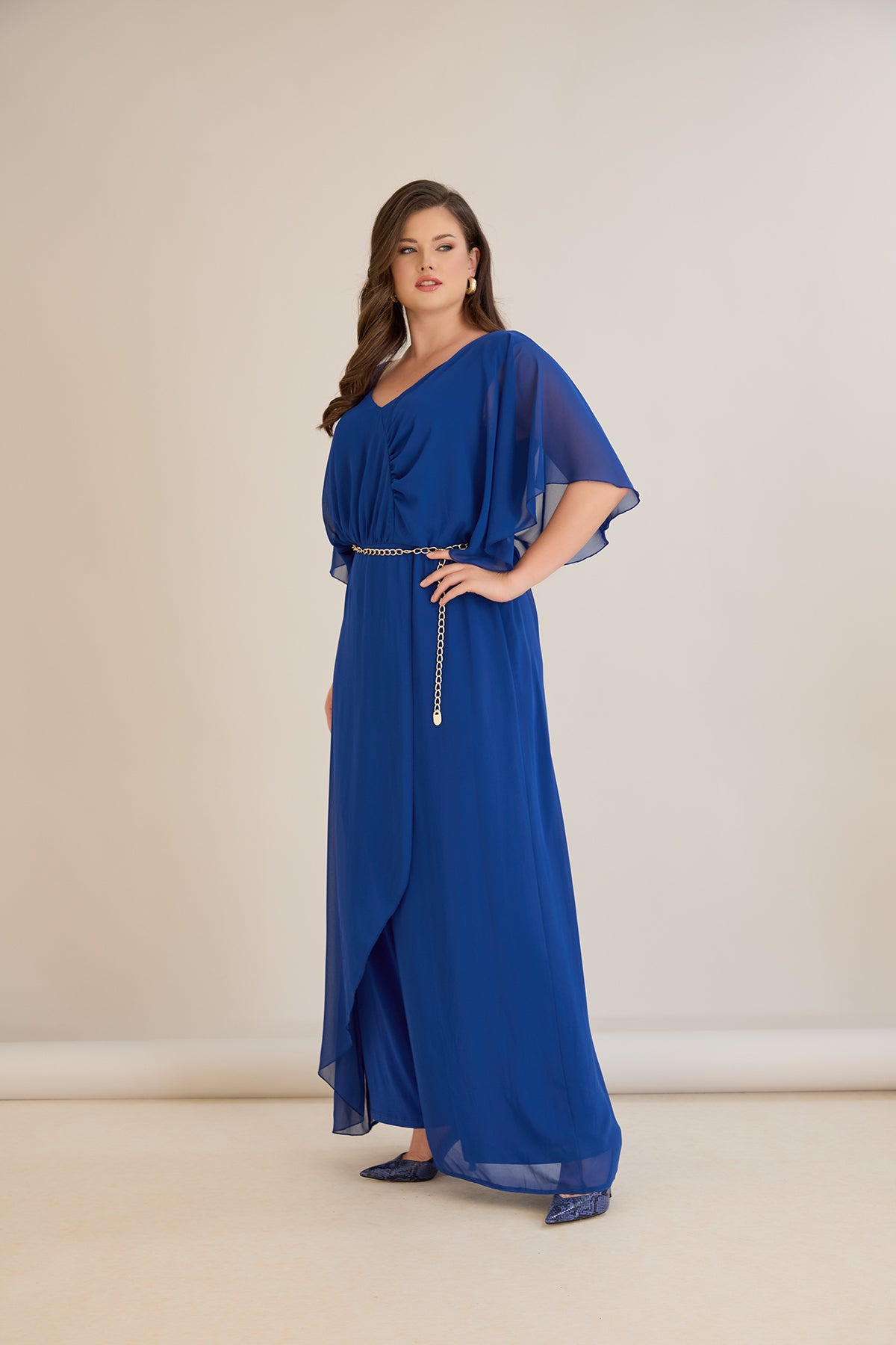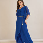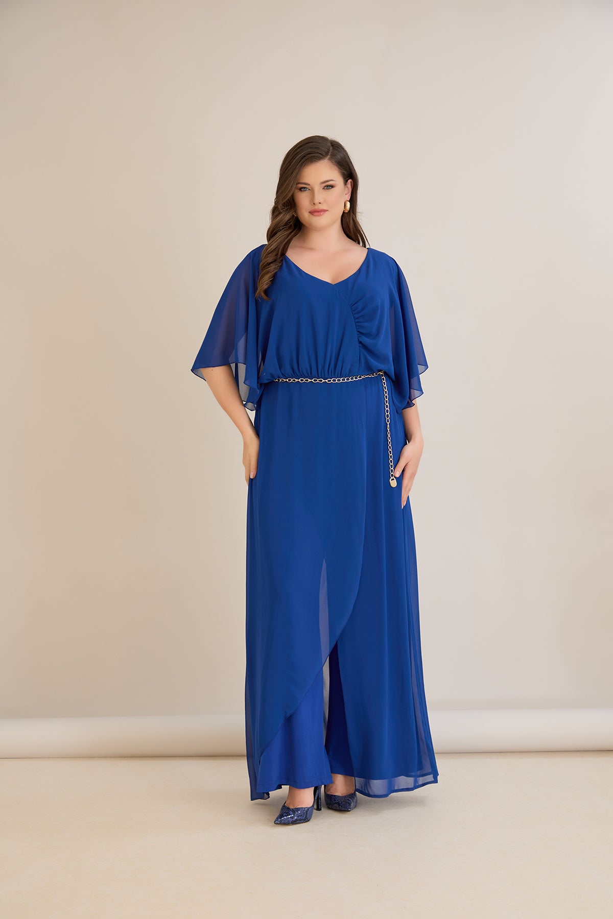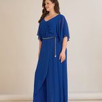 Елегантен гащеризон от шифон със синджир - кобалт
