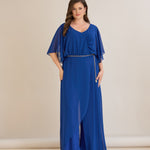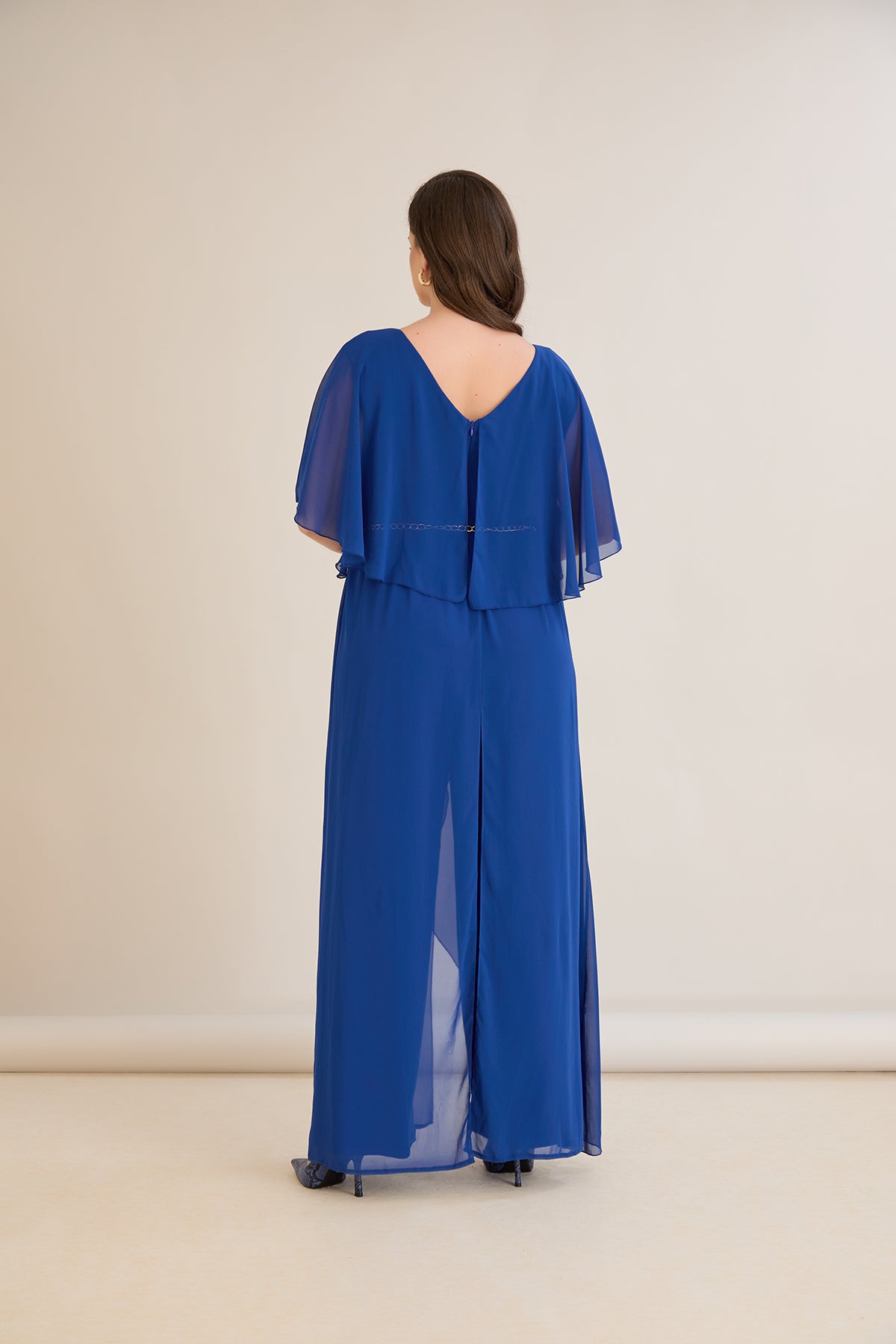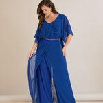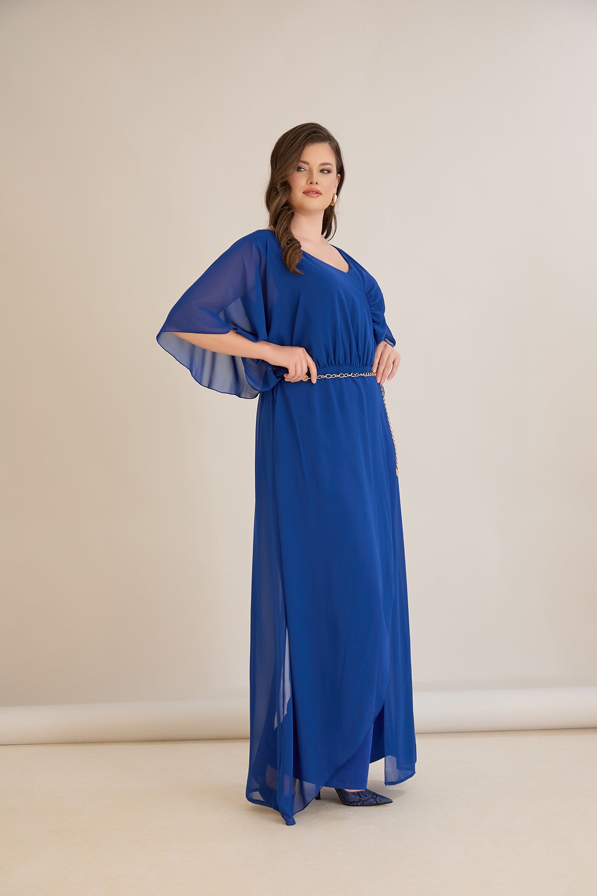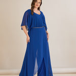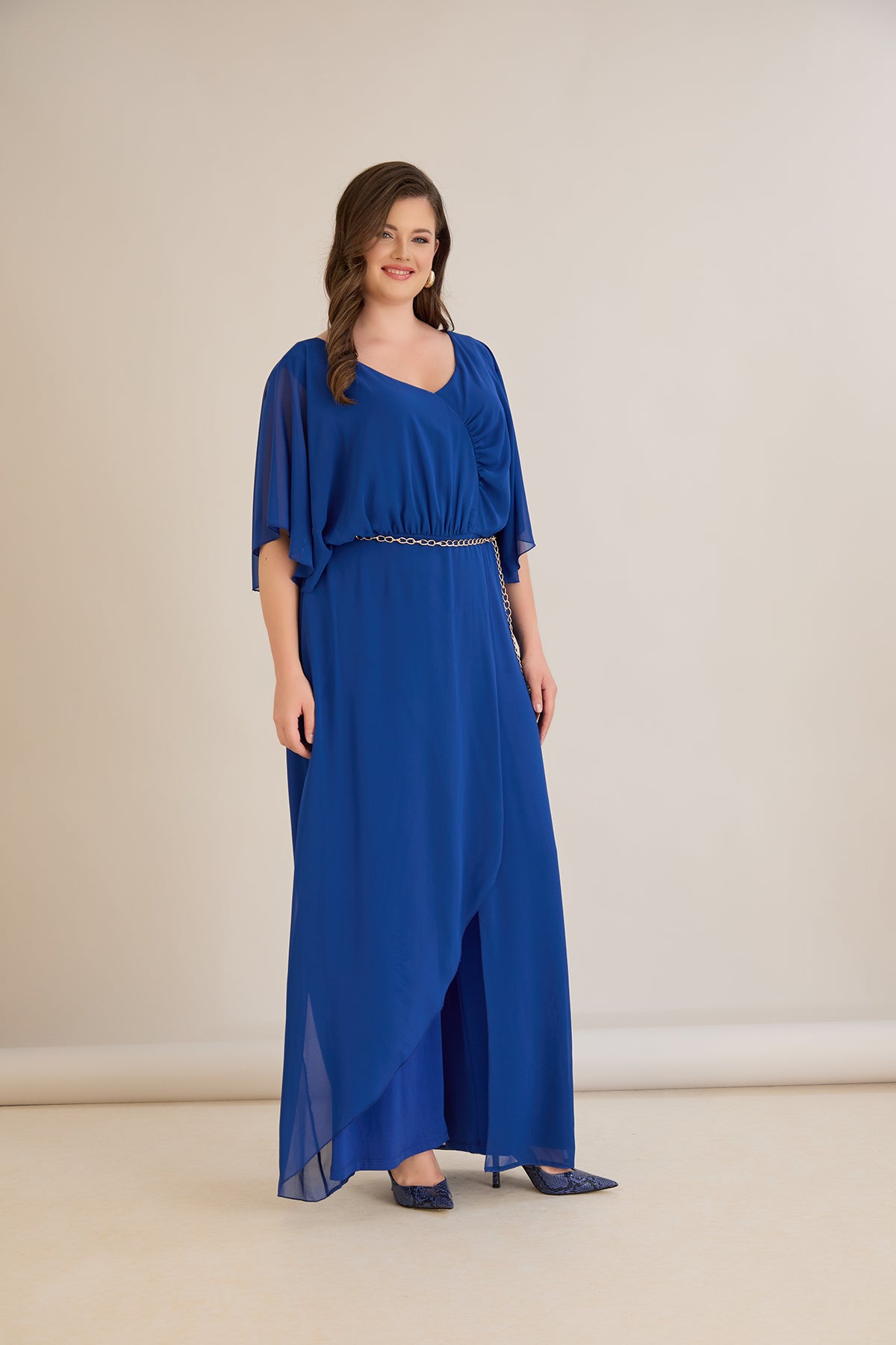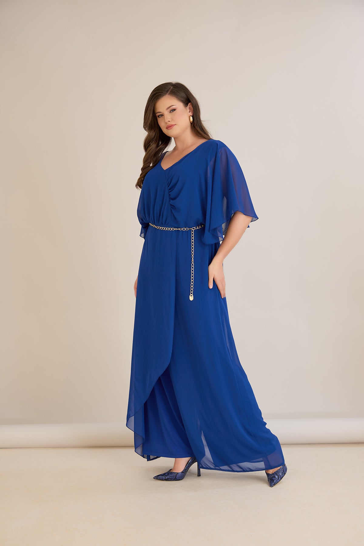 Елегантен гащеризон от шифон със синджир - кобалт