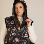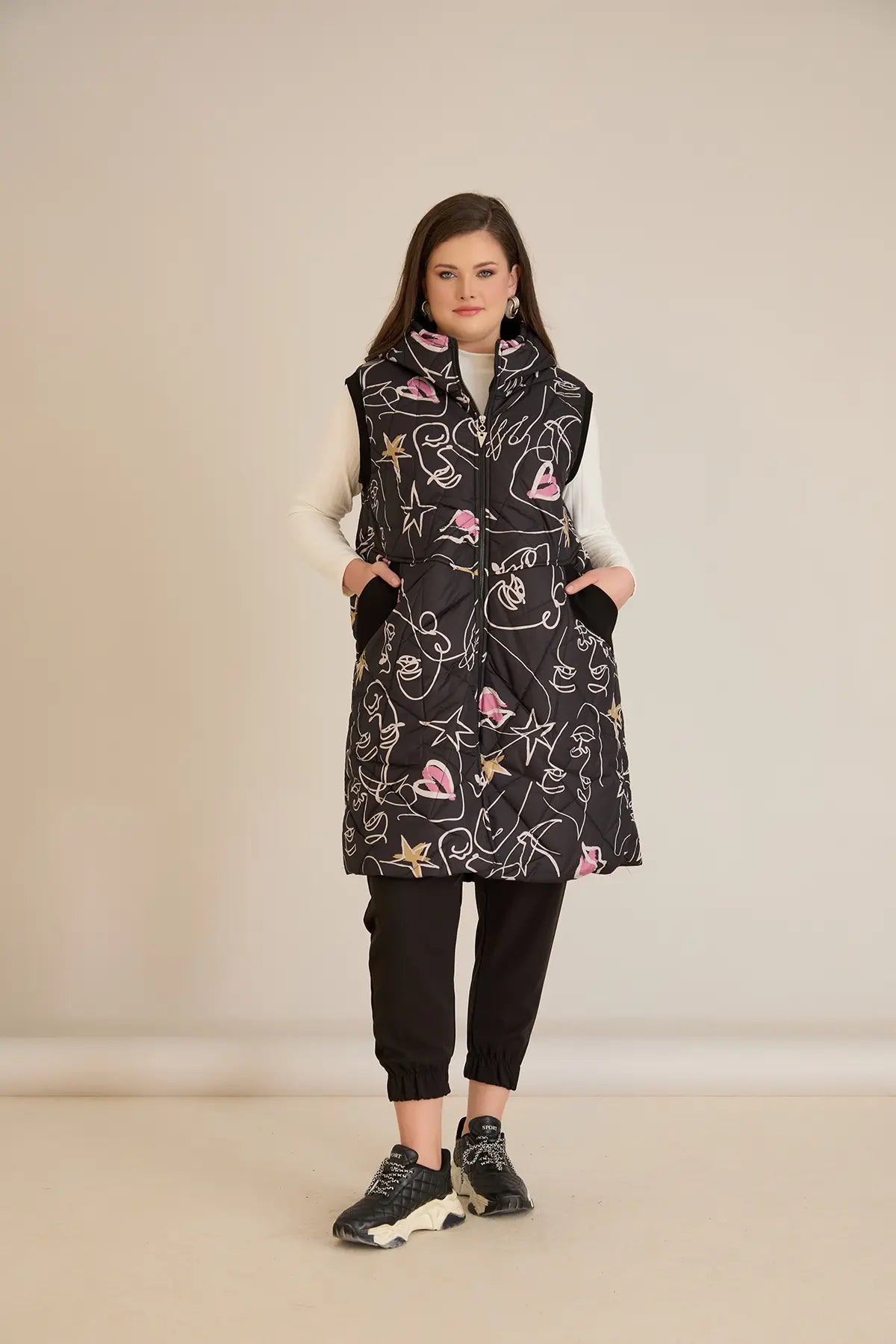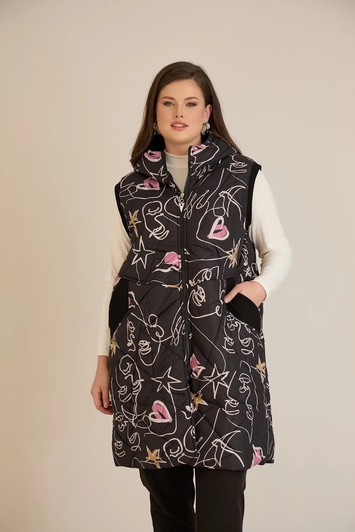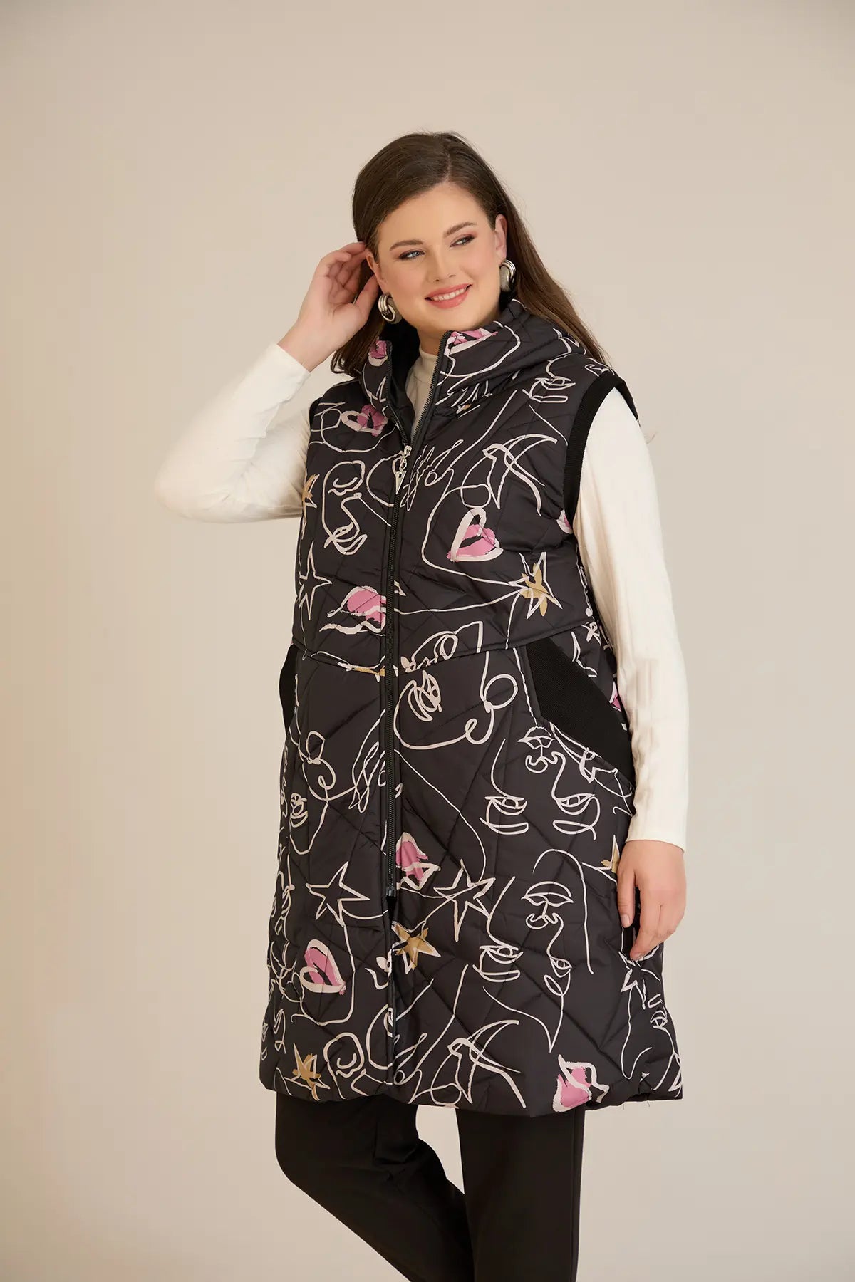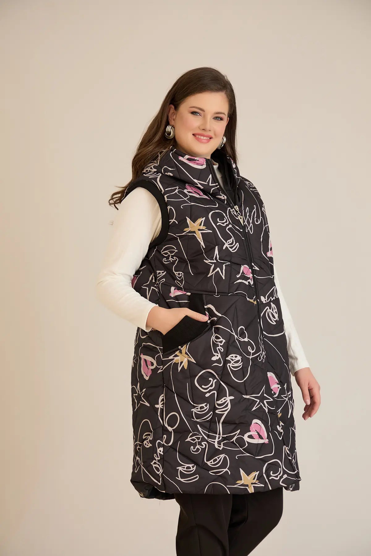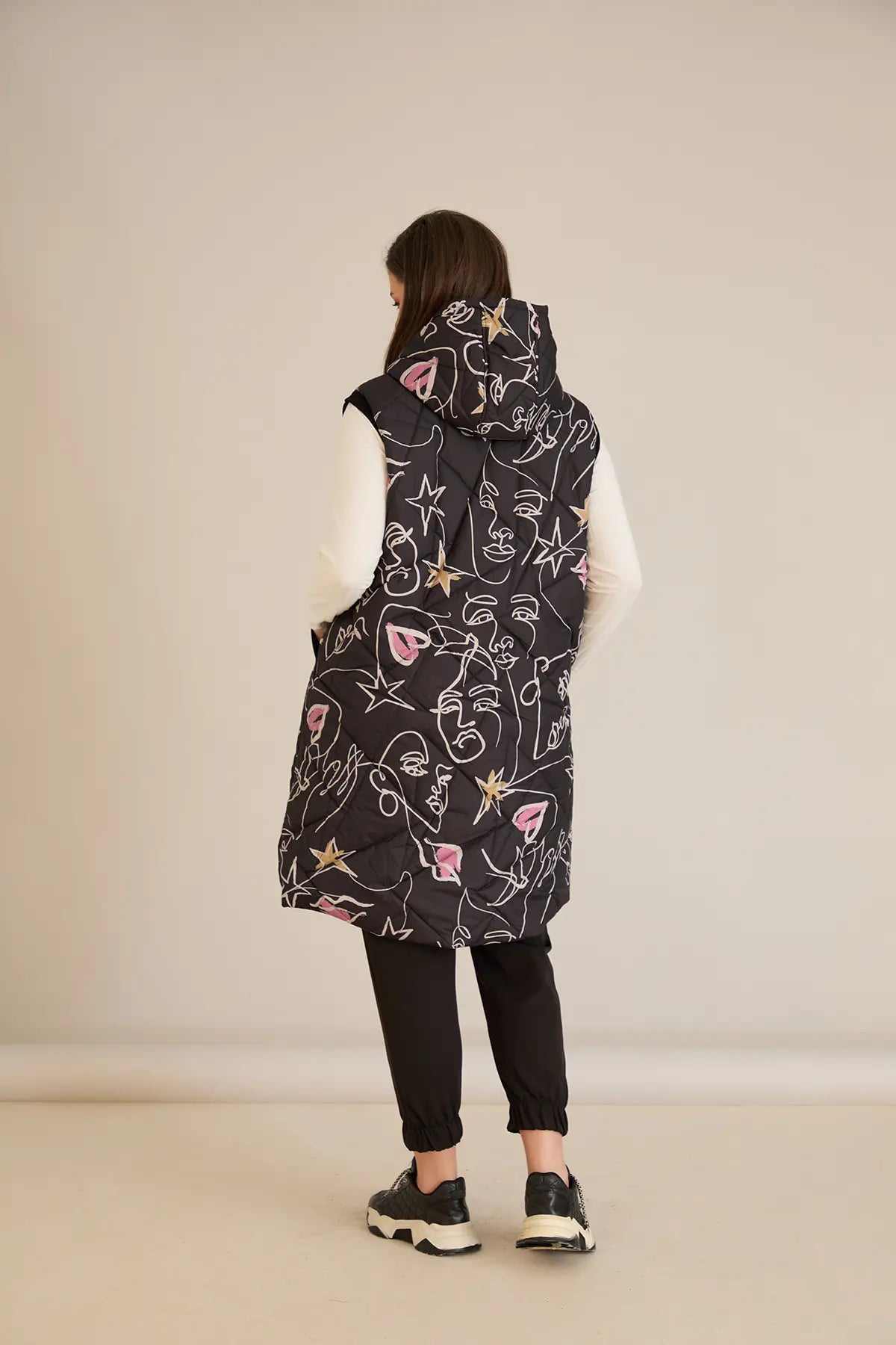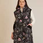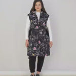 Дълъг ватиран елек с модерна щампа А-линия