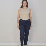 Дамски дънки за макси дами, модерни дънки с ластик на талията в големи размери