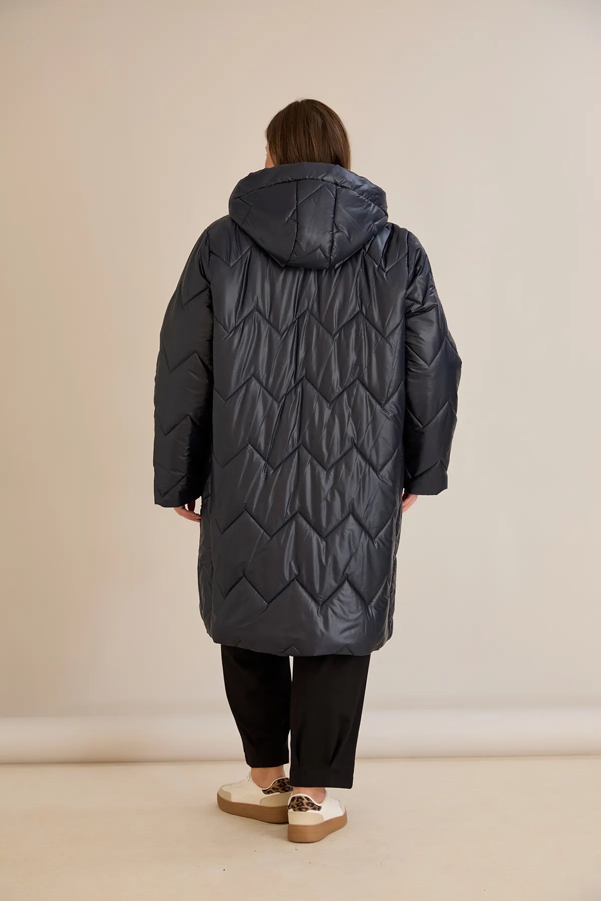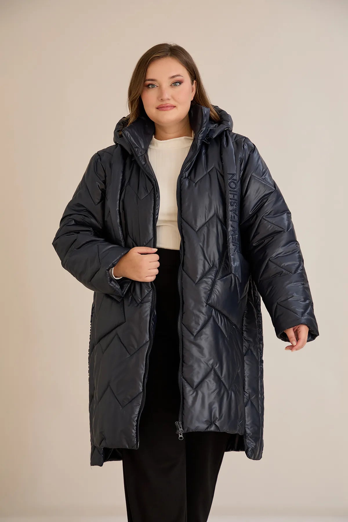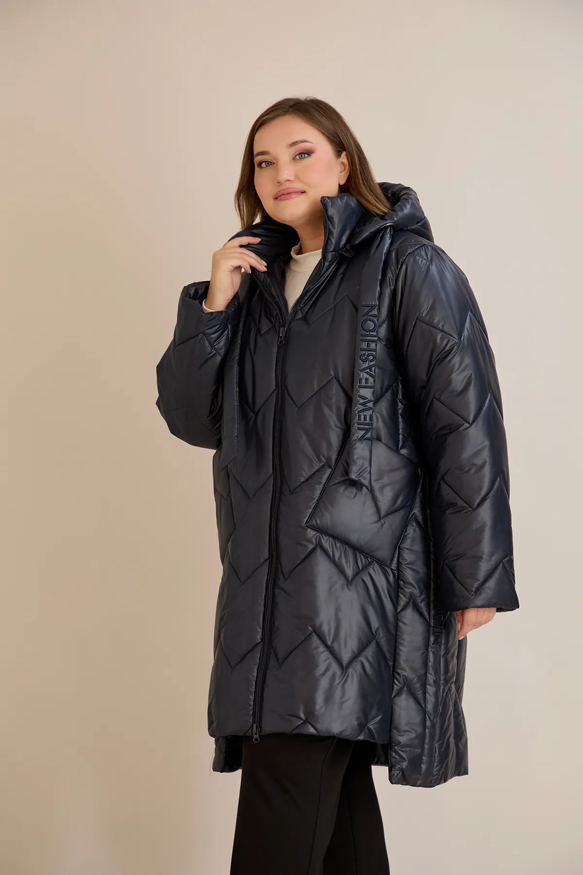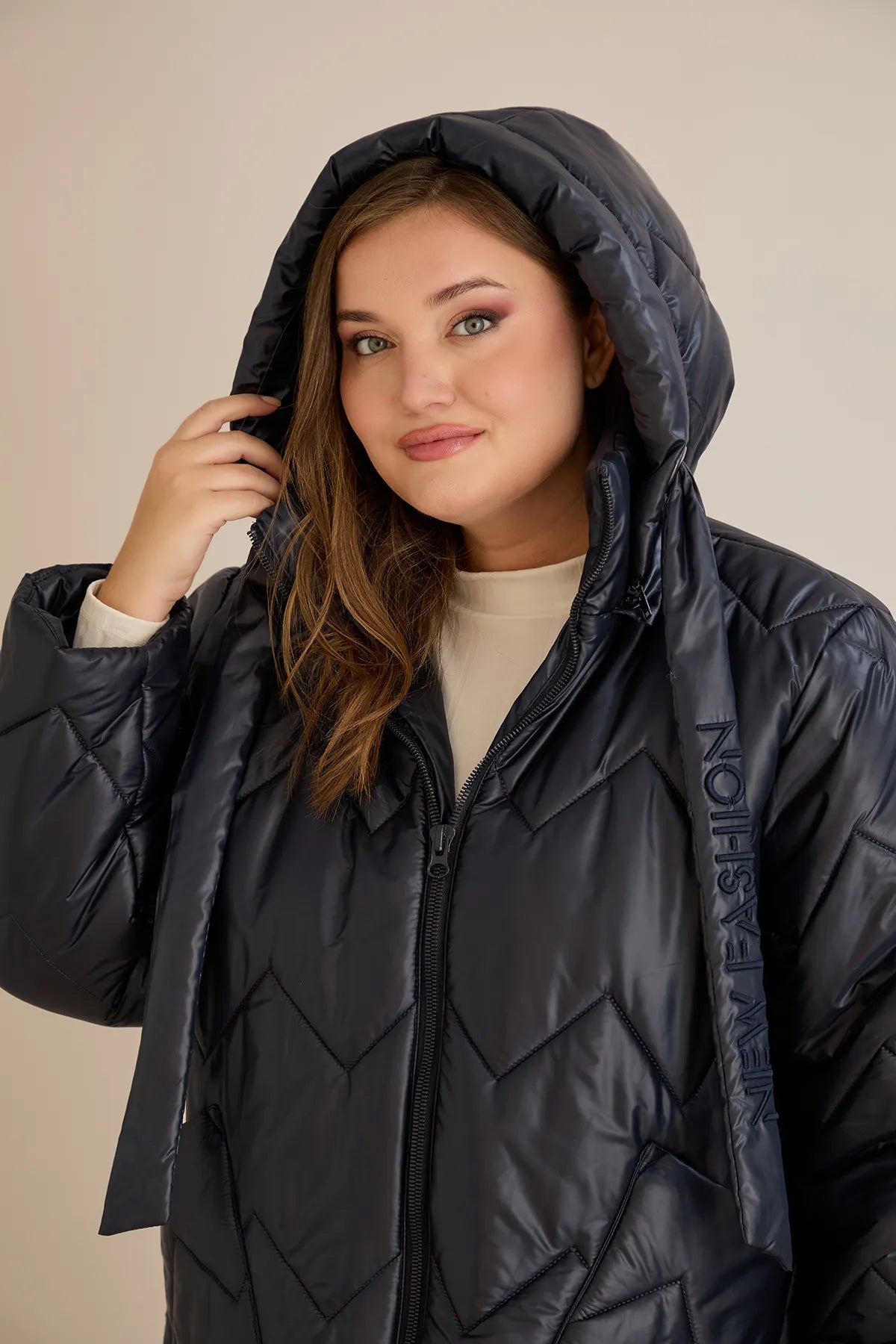 Модерно яке с двоен цип и сваляща се качулка - тъмносин