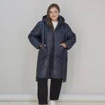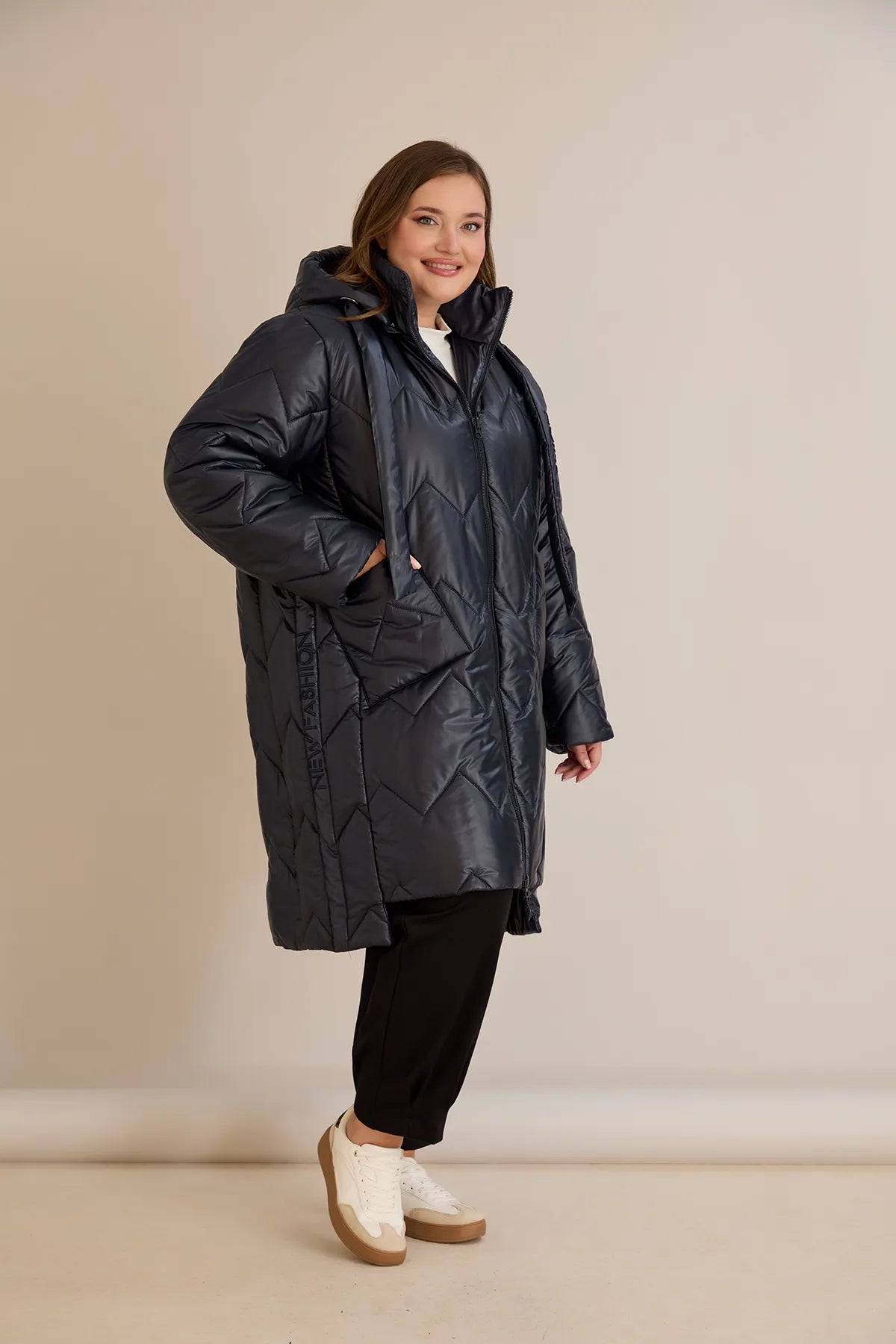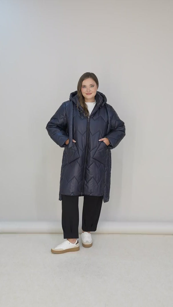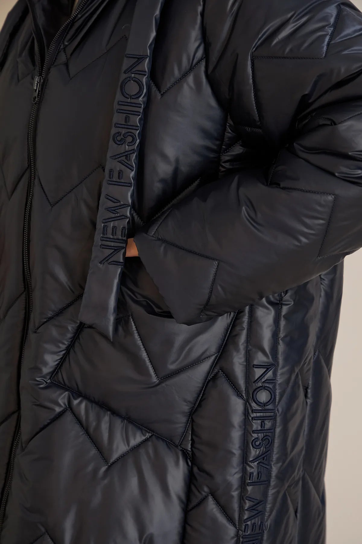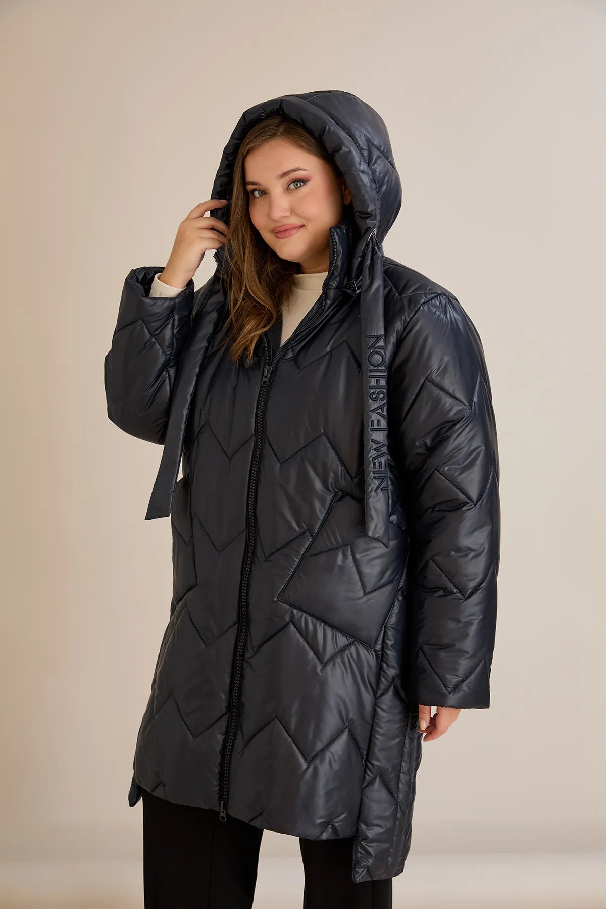 Модерно яке с двоен цип и сваляща се качулка - тъмносин