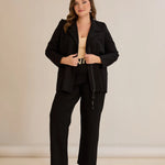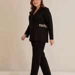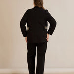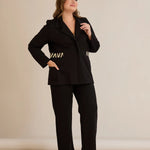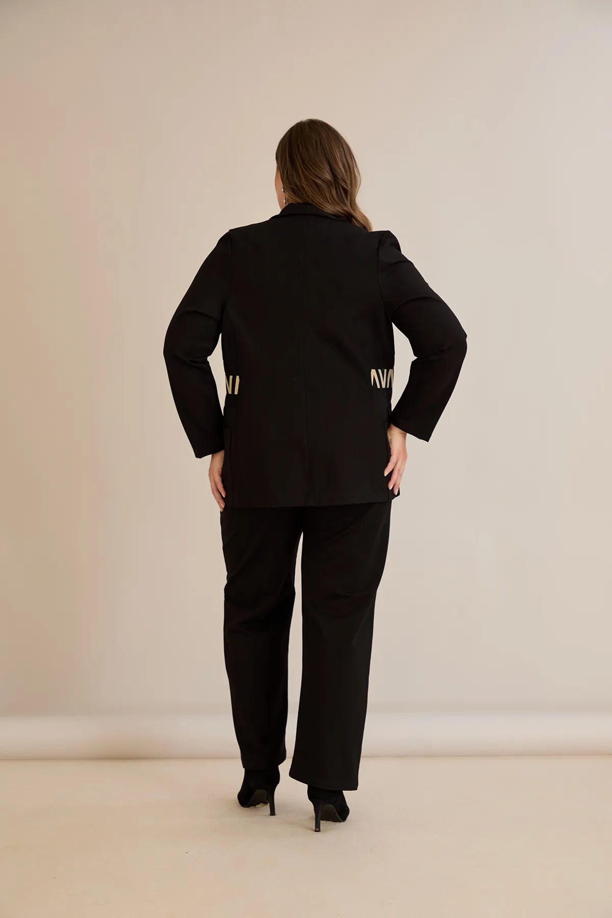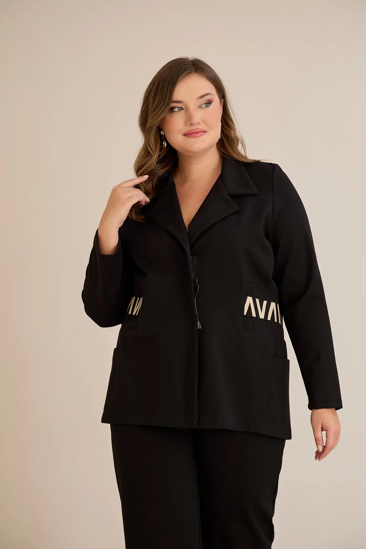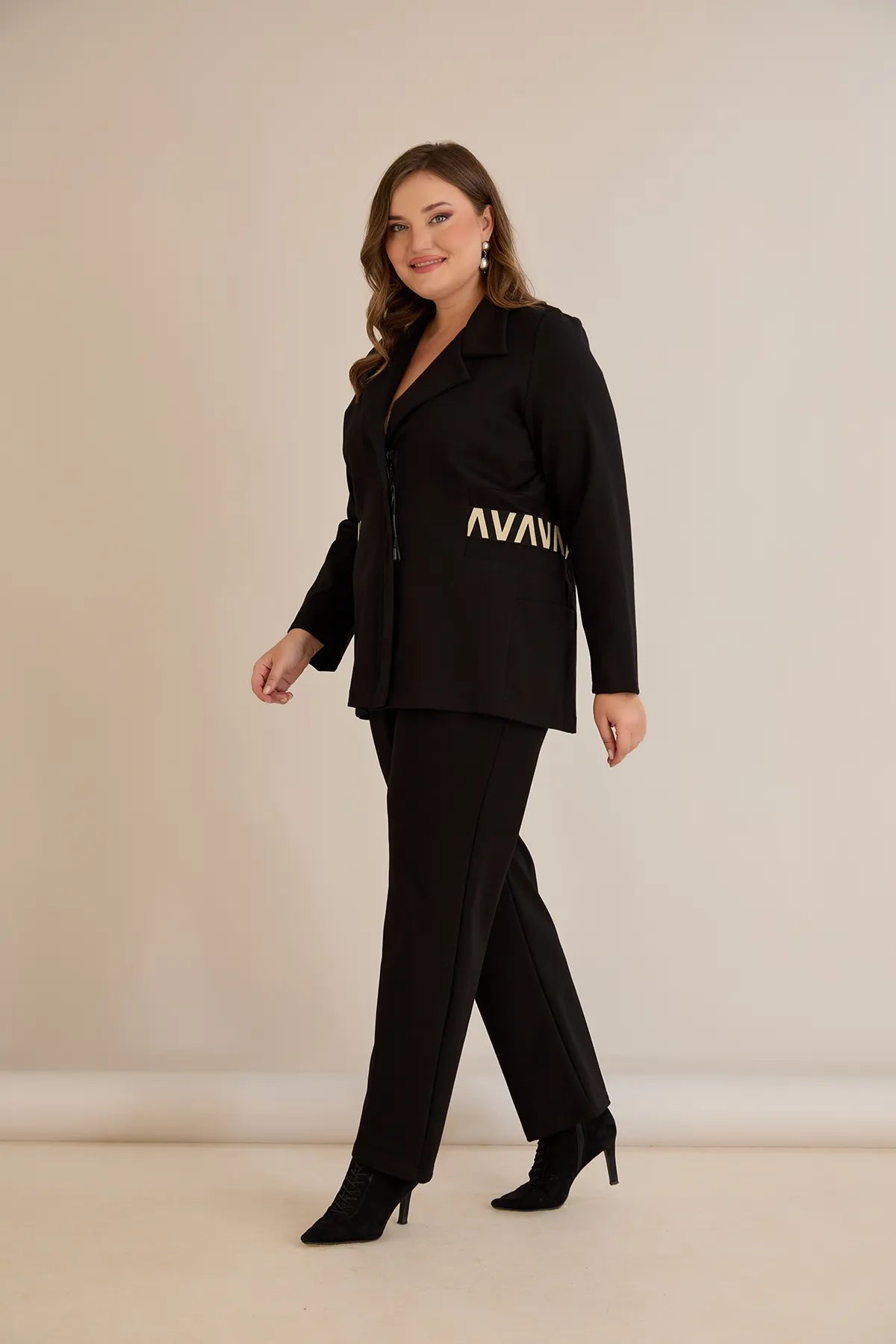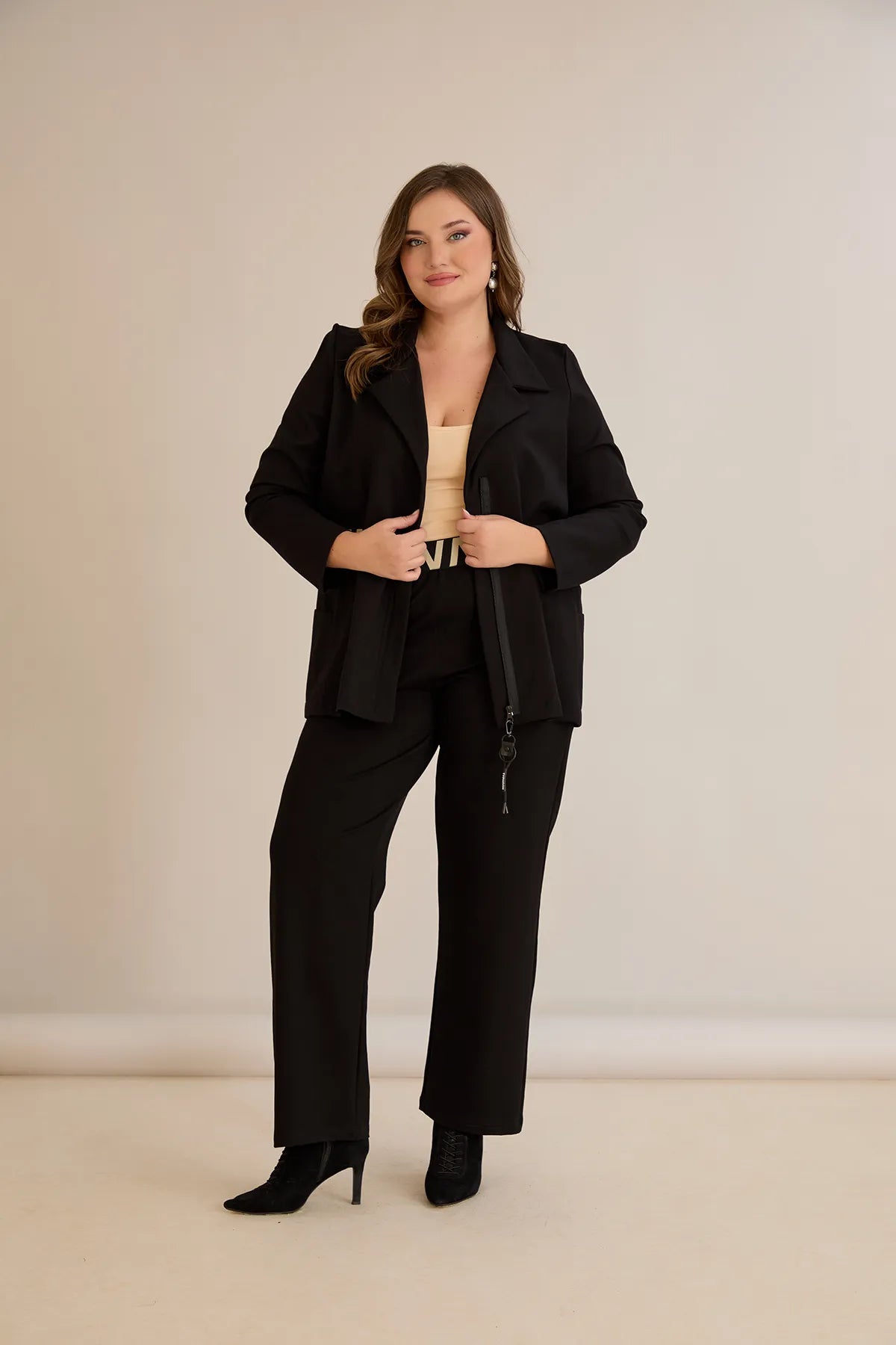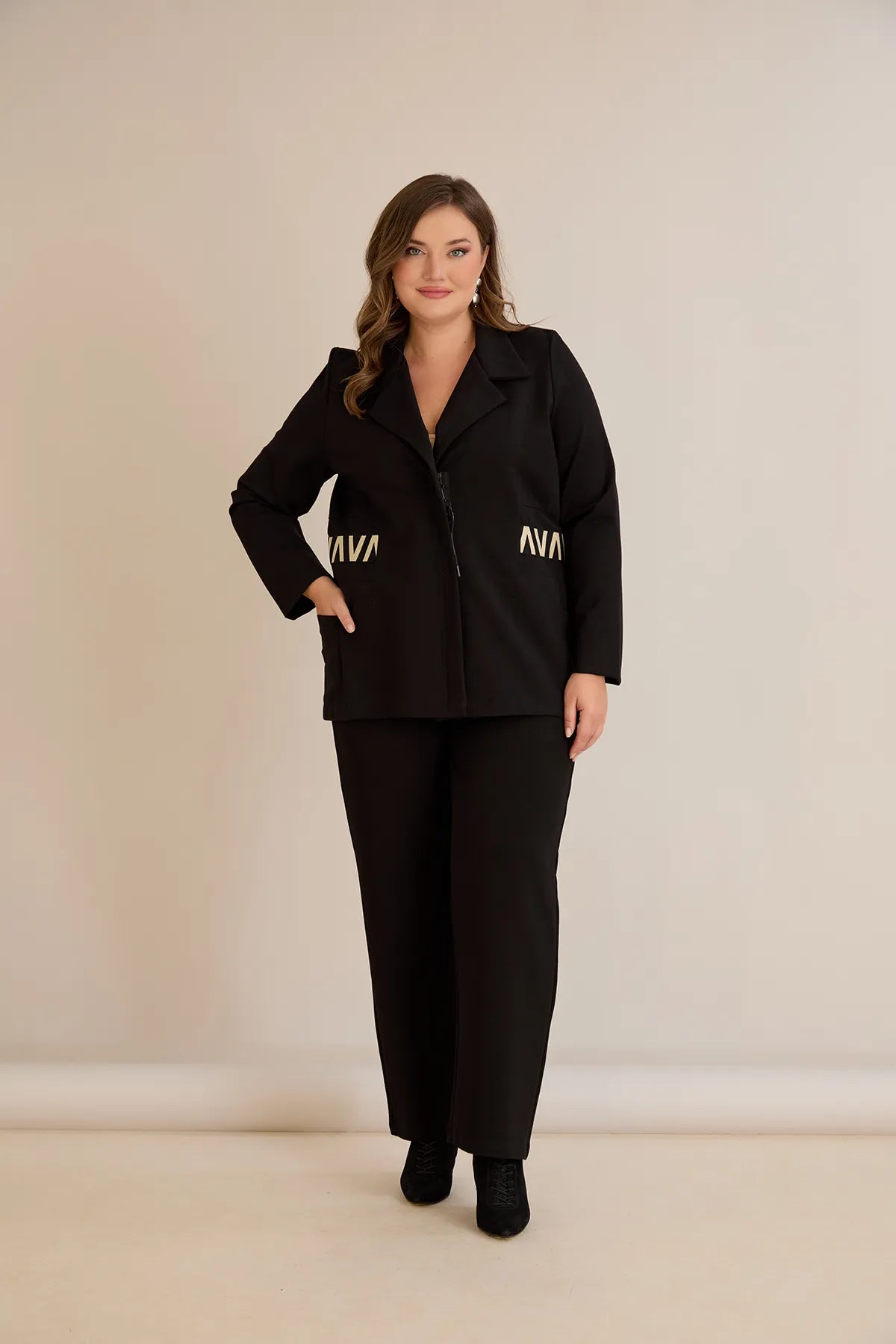 • Сет с оригинален дизайн - сако със закопчаване с цип и панталон с права кройка