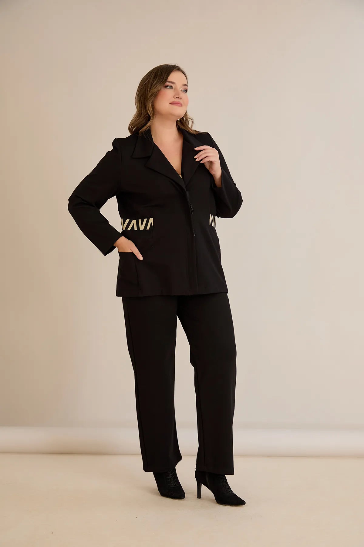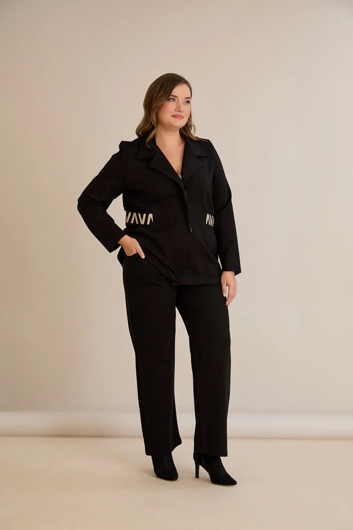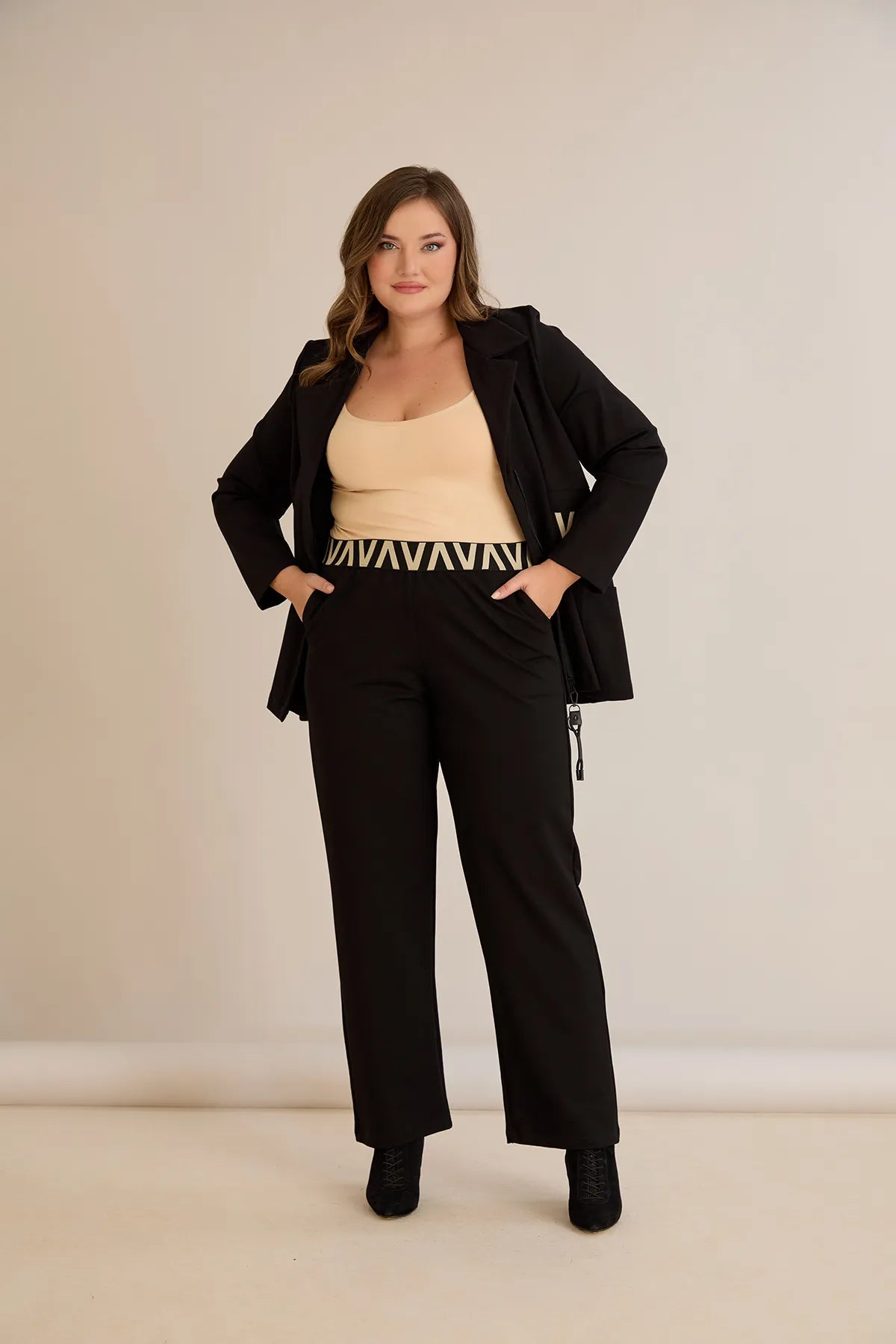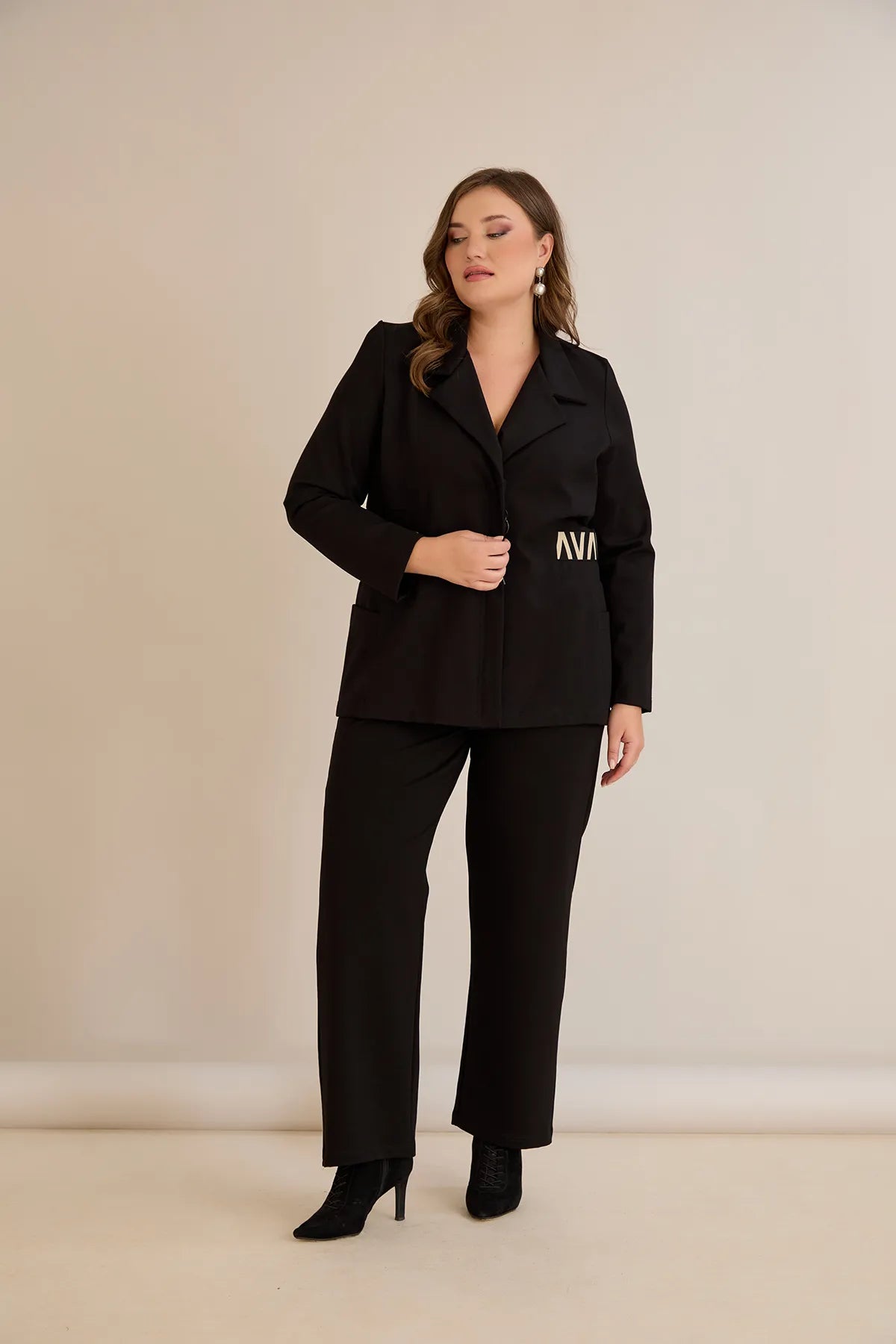 • Ефектен фигурален акцент от широк ластик на колана и на сакото