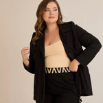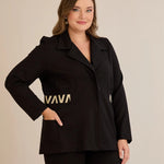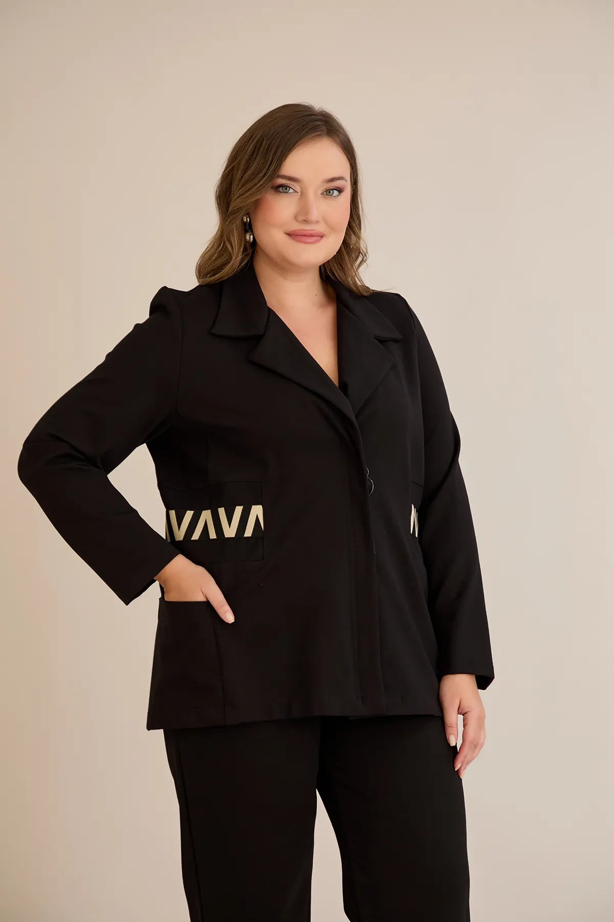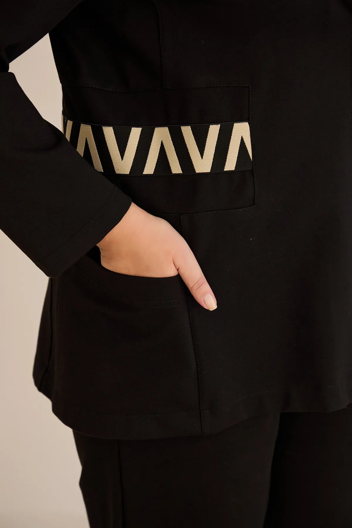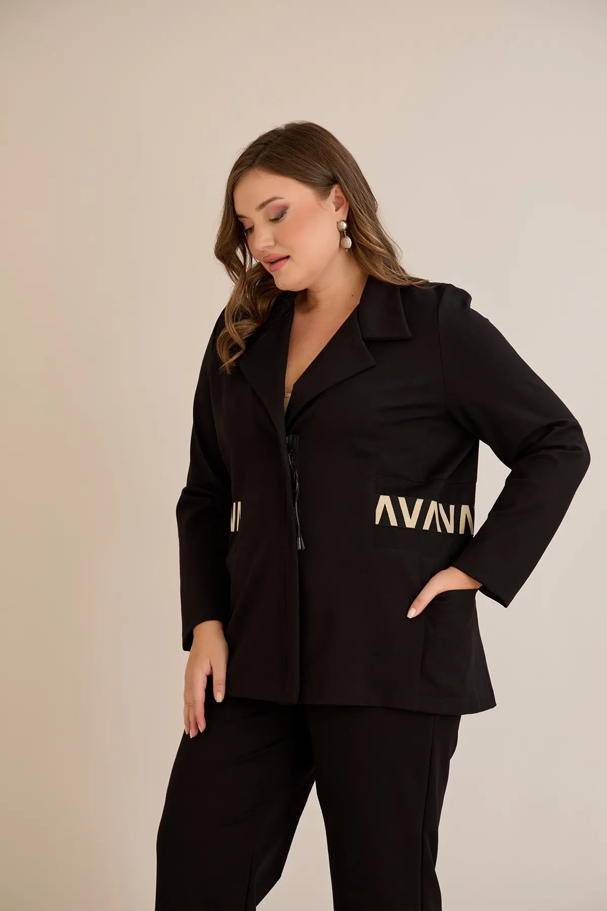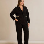 • Ефектен фигурален акцент от широк ластик на колана и на сакото