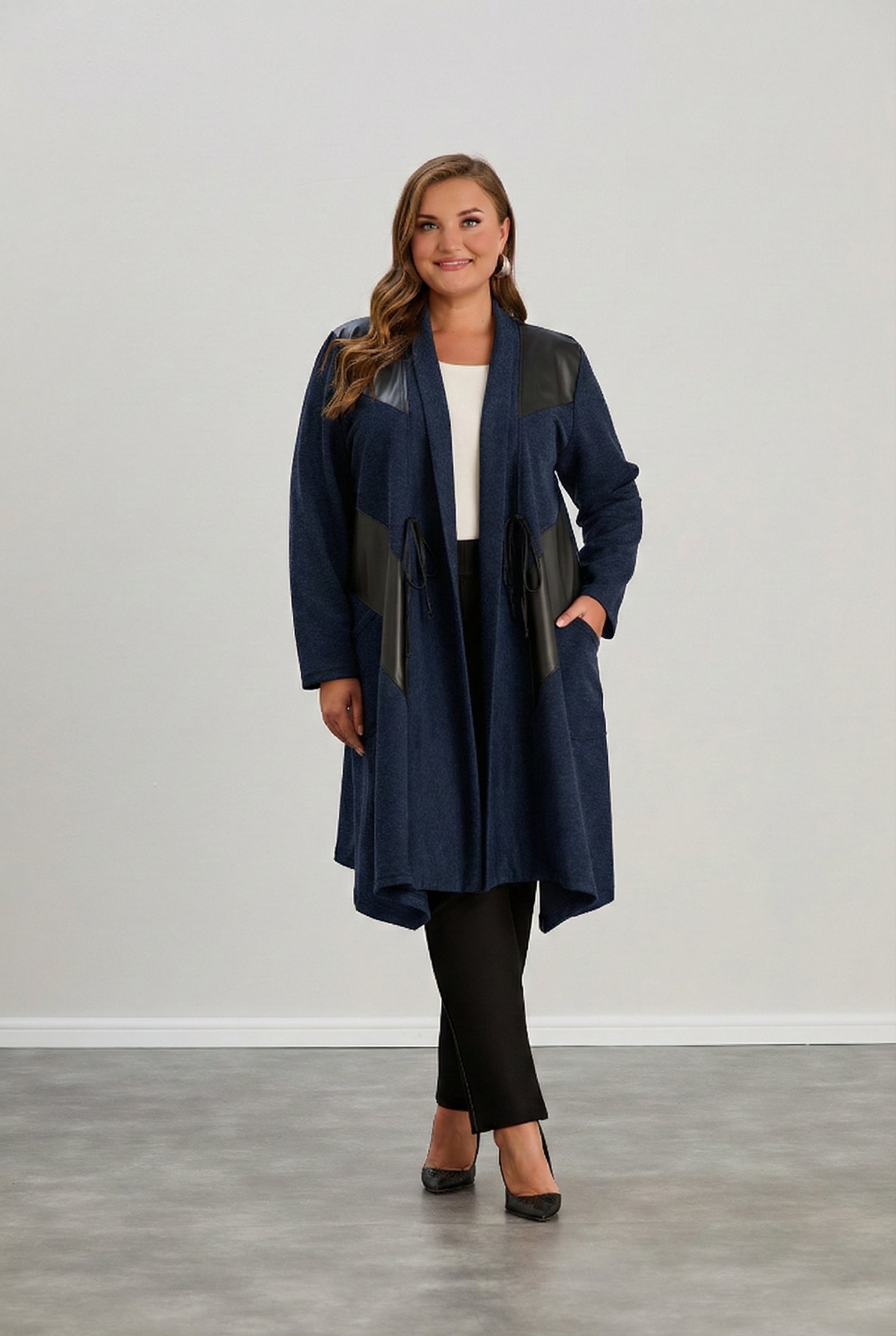 Придайте стилен завършек на вашия тоалет с елегантната жилетка, която комбинира изтънченост и комфорт. Тази жилетка е перфектния избор за всеки сезон, благодарение на своята ефектна визия и удобство. Изработена с внимание към детайла, тя се отличава с връзки и акцент от кожени ленти, които добавят уникалност и изисканост. Класическата разкроена линия осигурява свободно и комфортно прилягане, а двата странични джоба са практични и стилни. Тази жилетка е идеалният избор за дамите, които искат да изглеждат добре, без да жертват комфорта си.