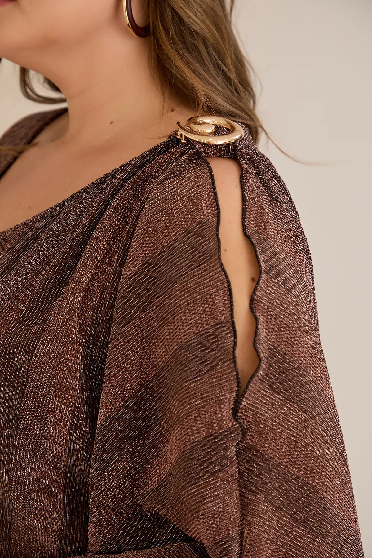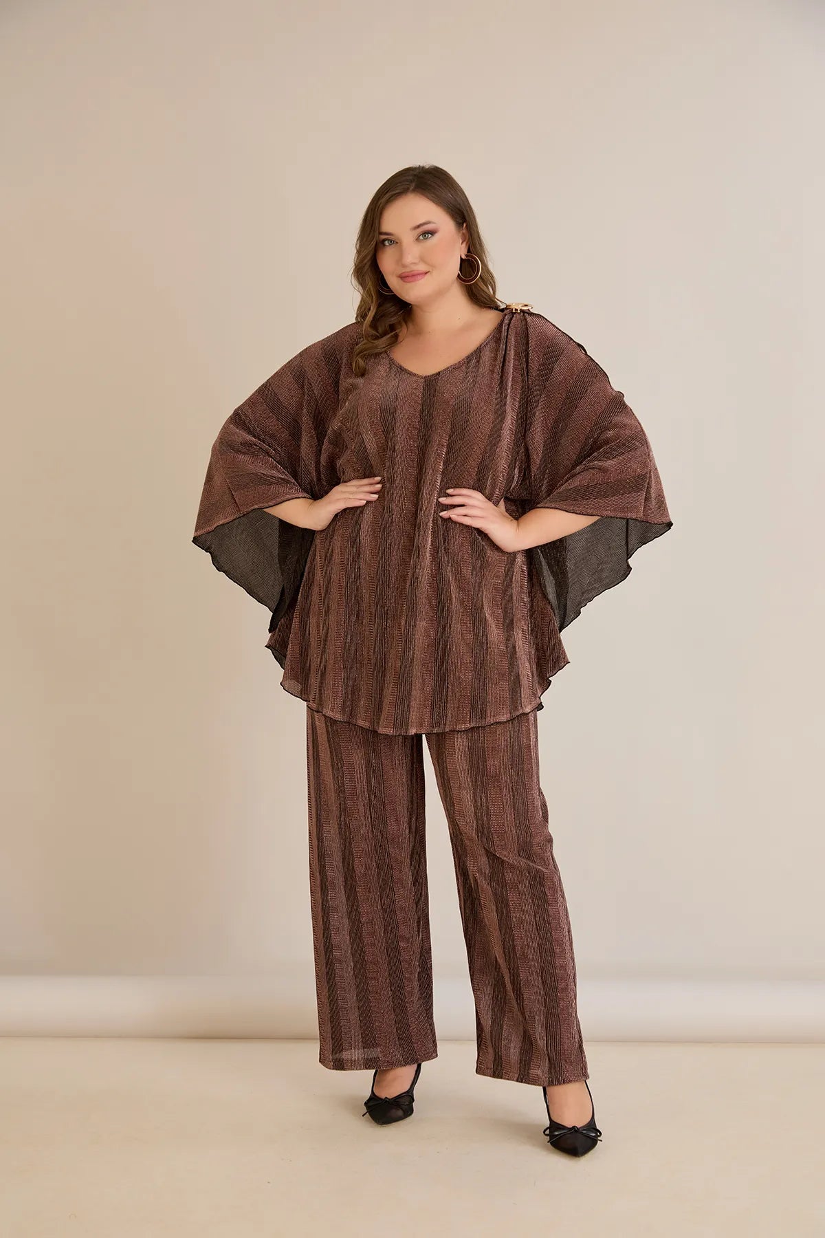 Елегантен сет рипс с ламе с атрактивен гръб - кафе