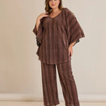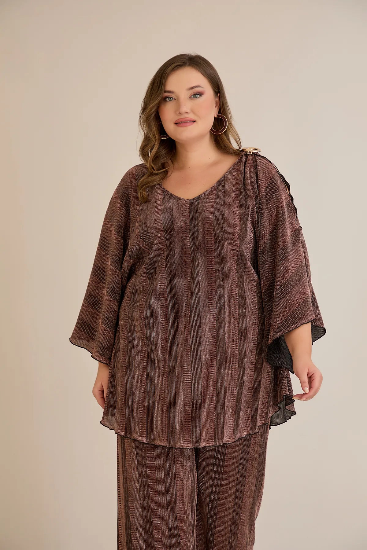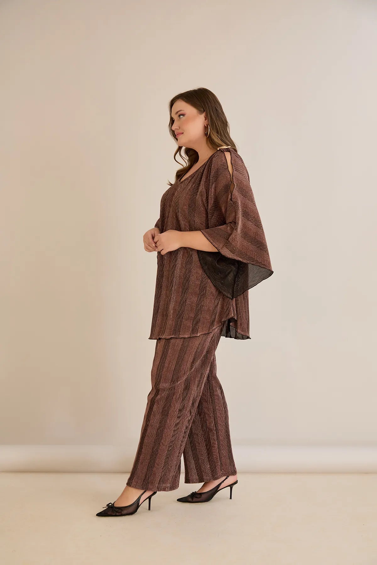 • Фееричен сет от еластична материя с ламе, осигуряващ стилна и комфортна визия