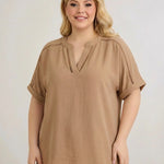 • Туника с V-деколте с декоративни изрязани акценти и бохо излъчване