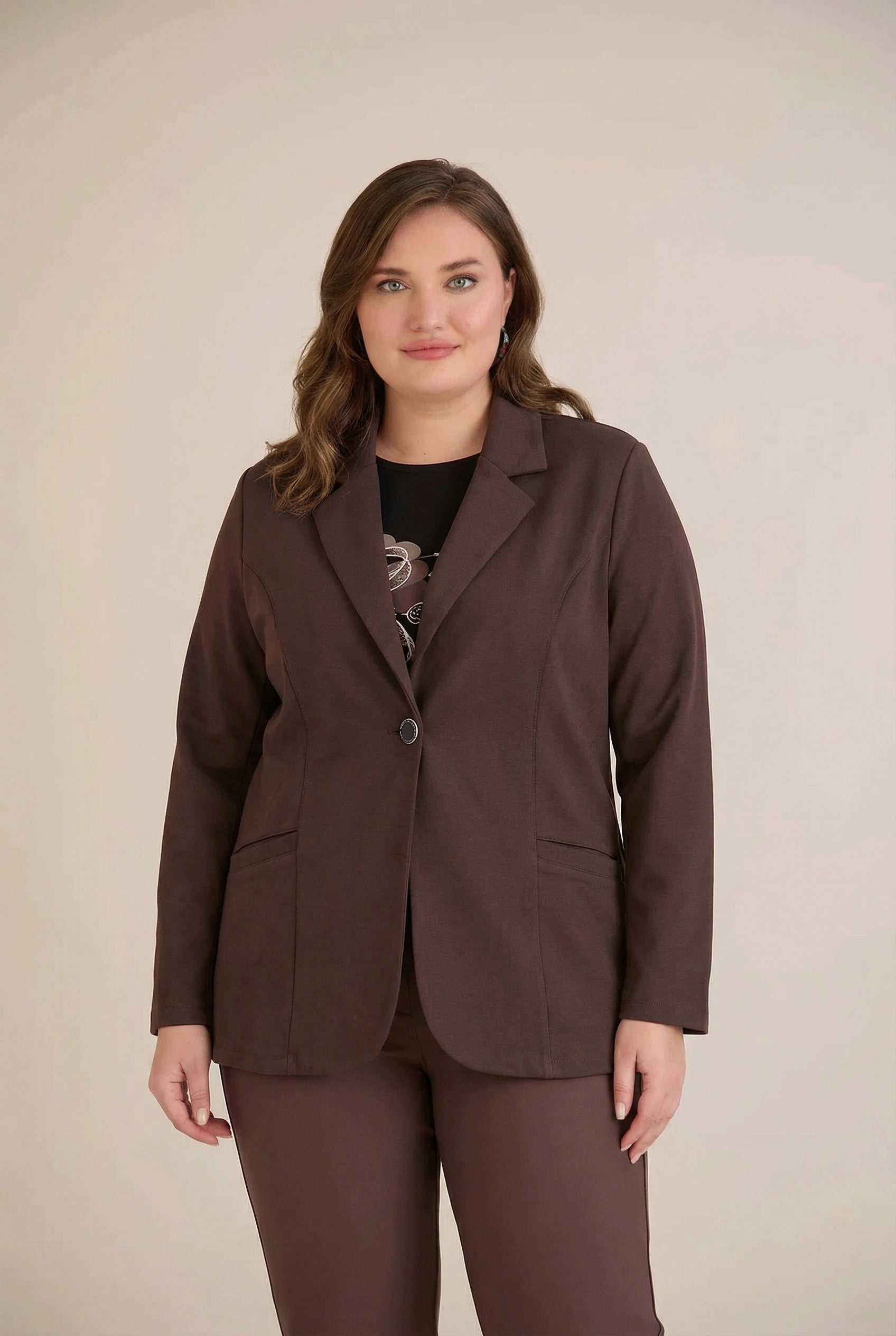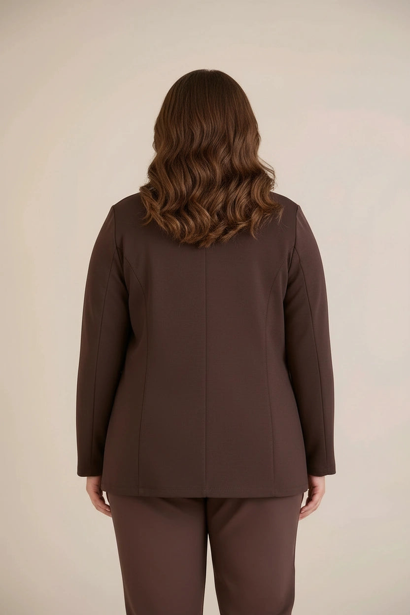 Спортно-елегантно сако с ревер и закопчаване - шоколад