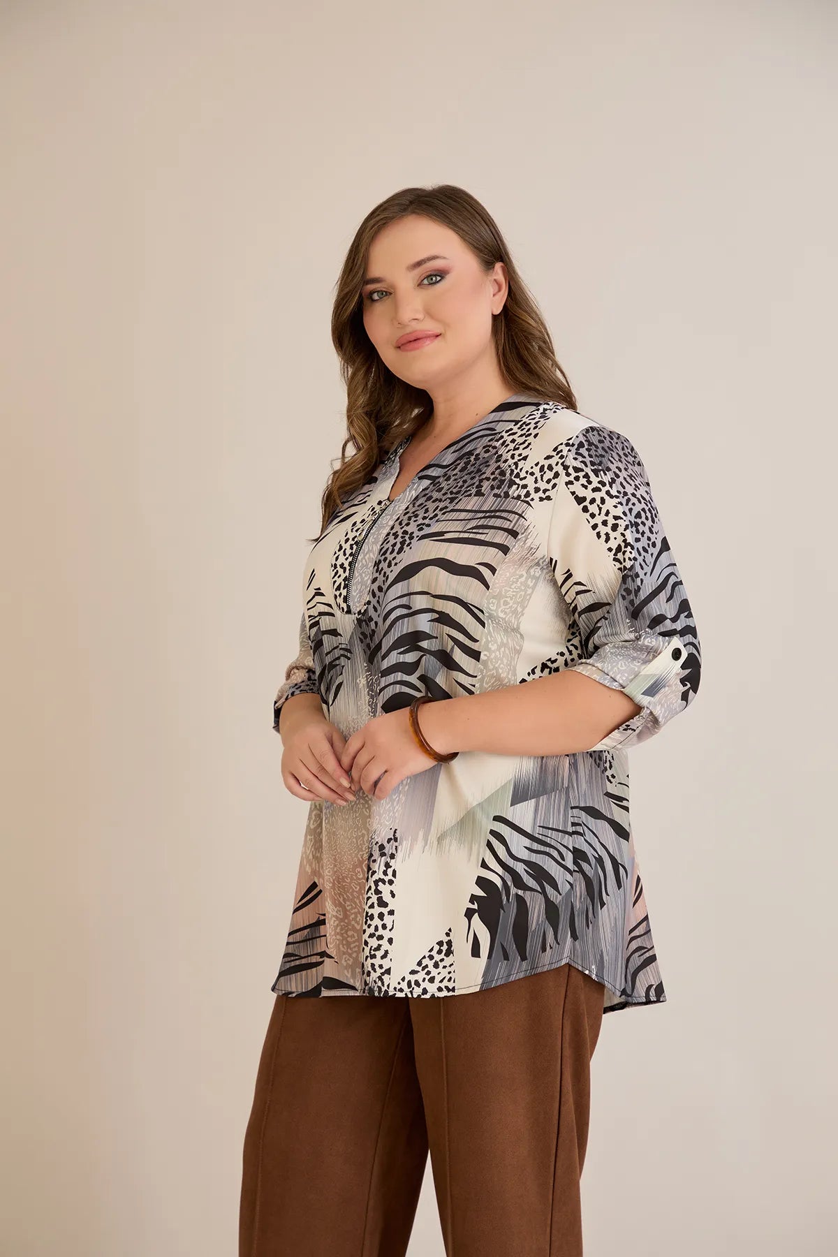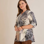 Блуза с цип авторски принт - леопард