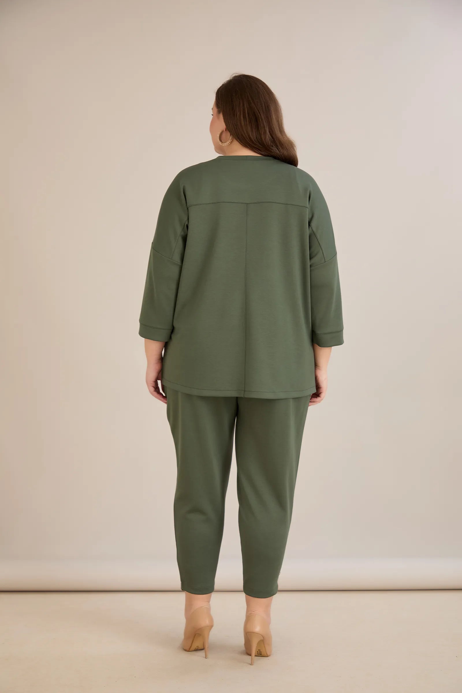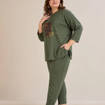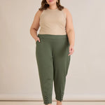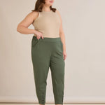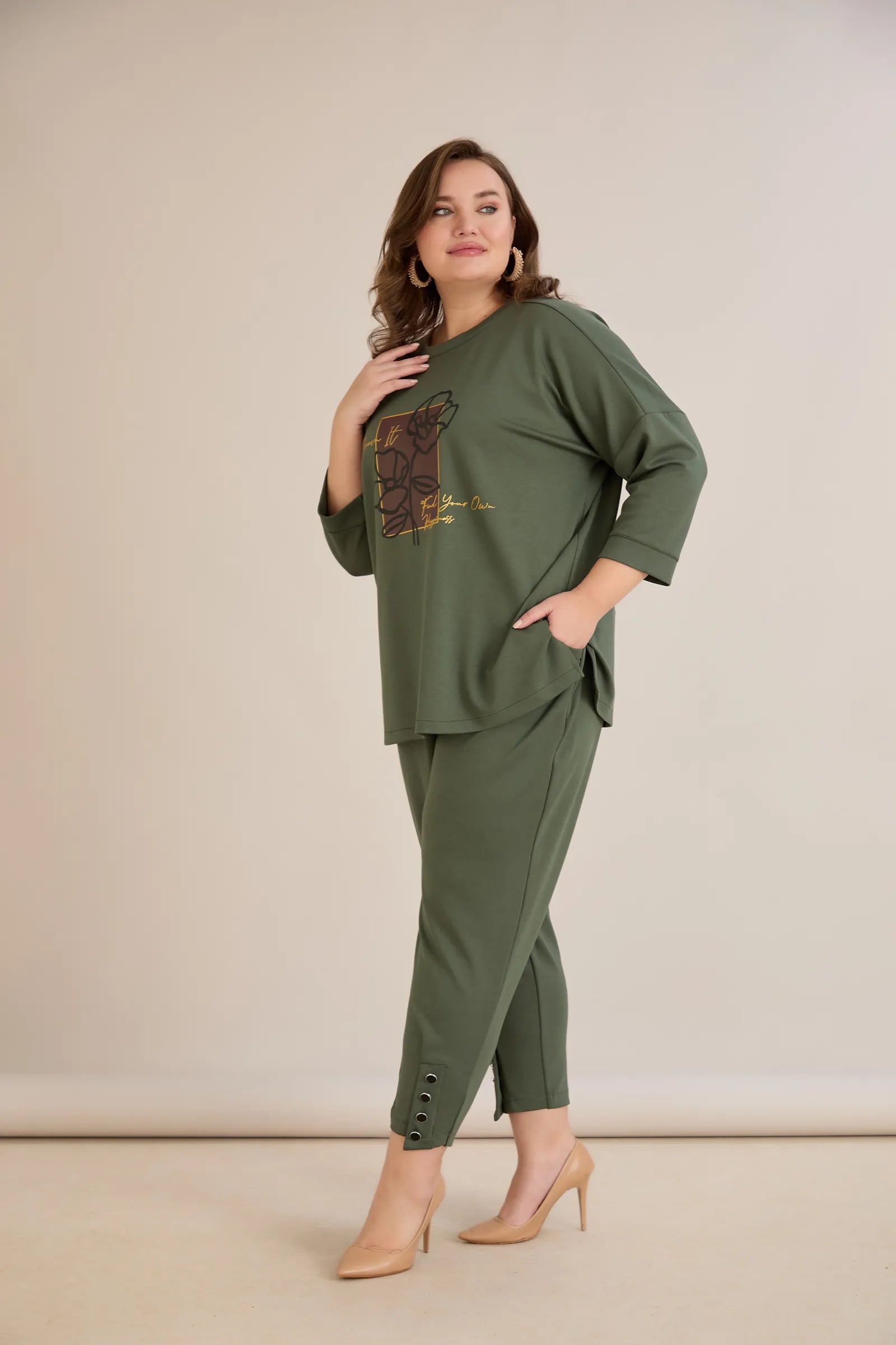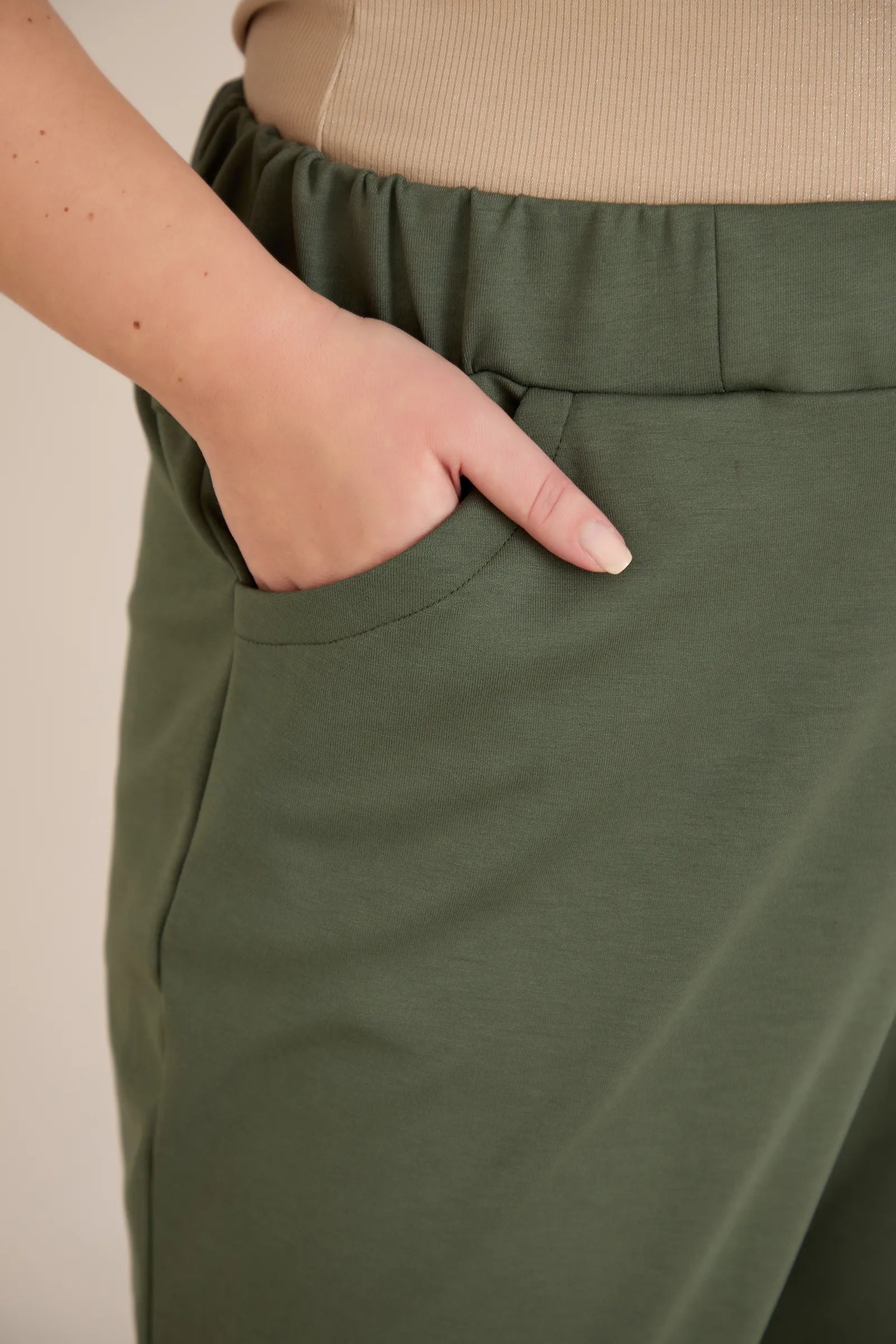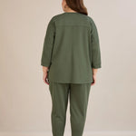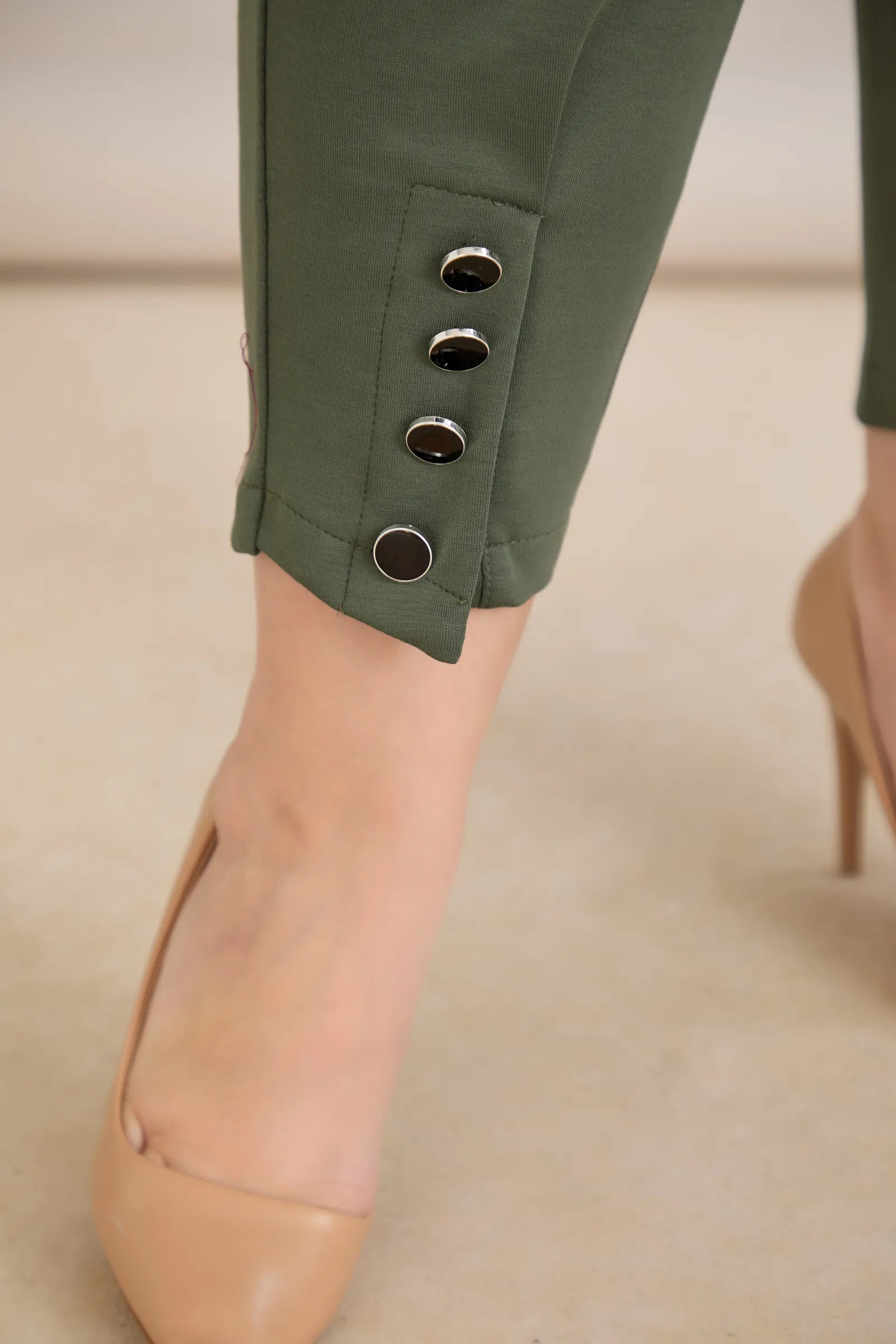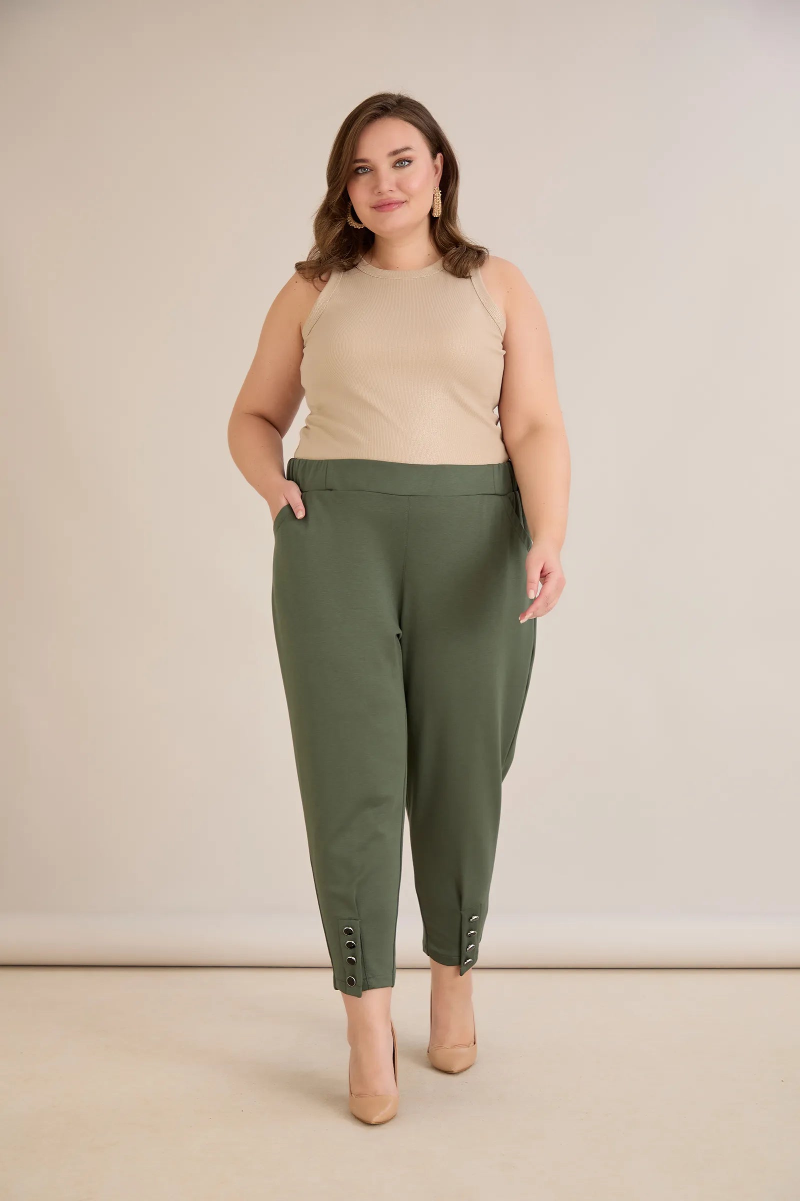 Еластичен дамски панталон с копчета - олив