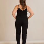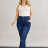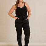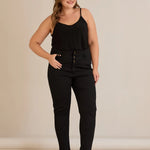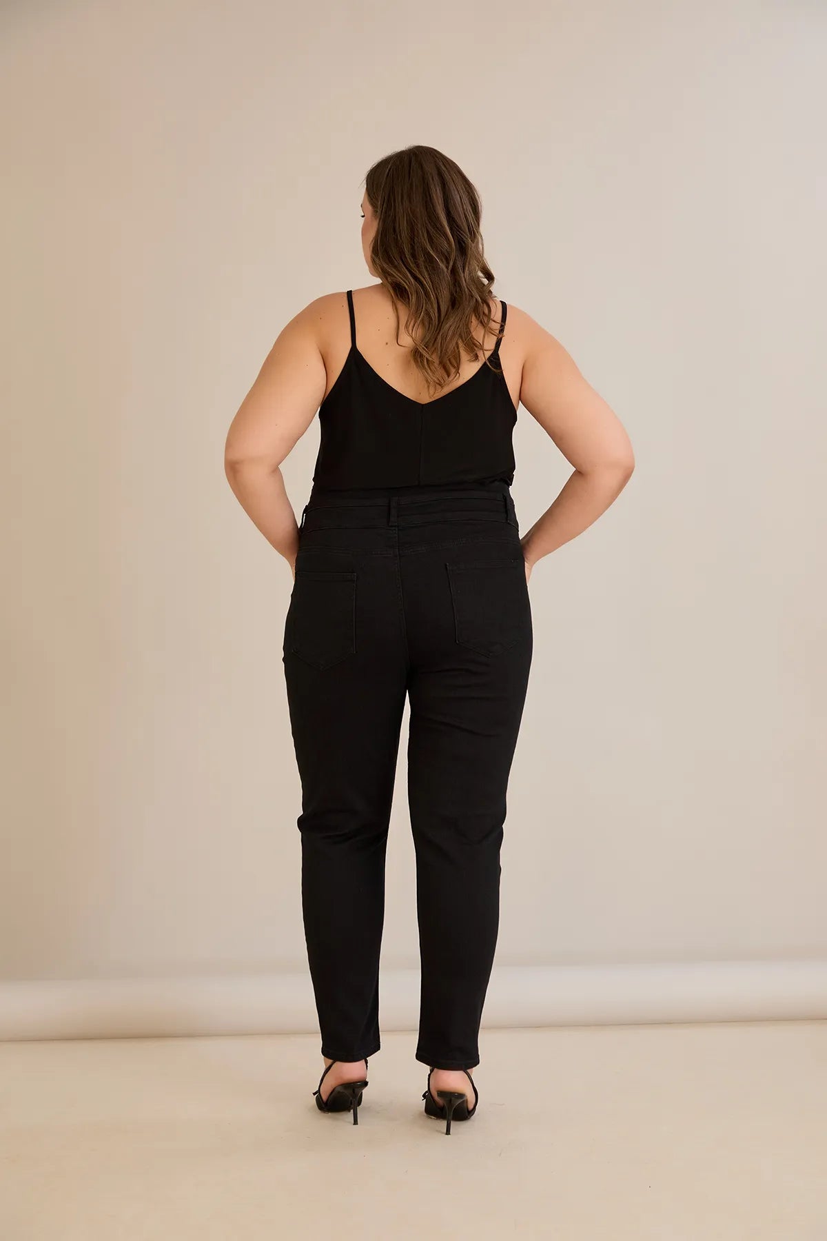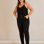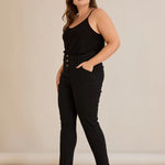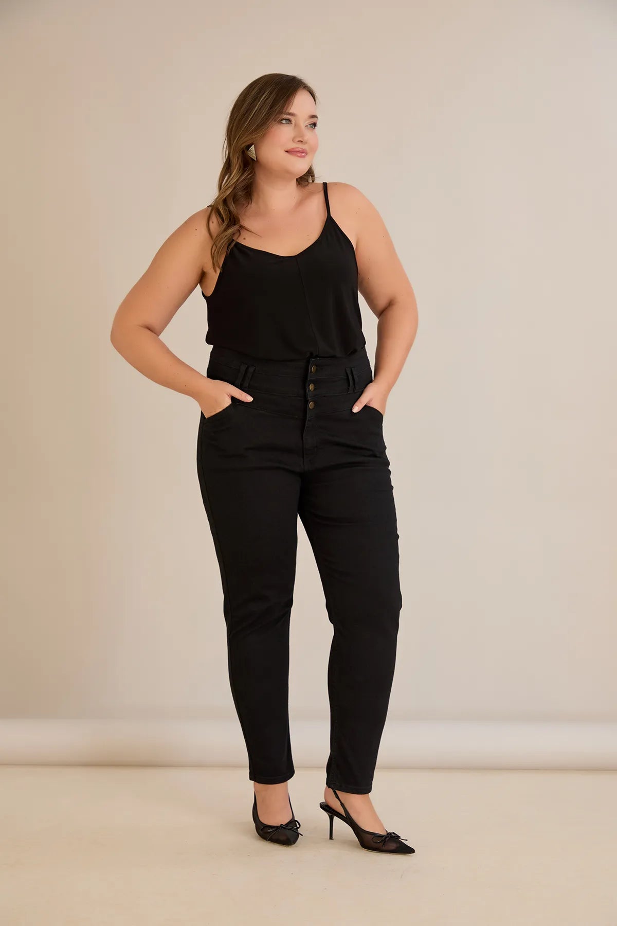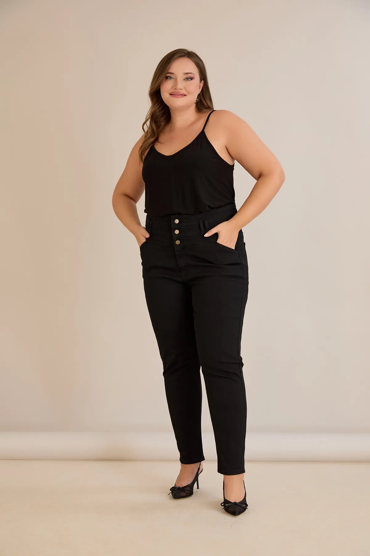 Еластични дънки с висока талия и копчета - черен