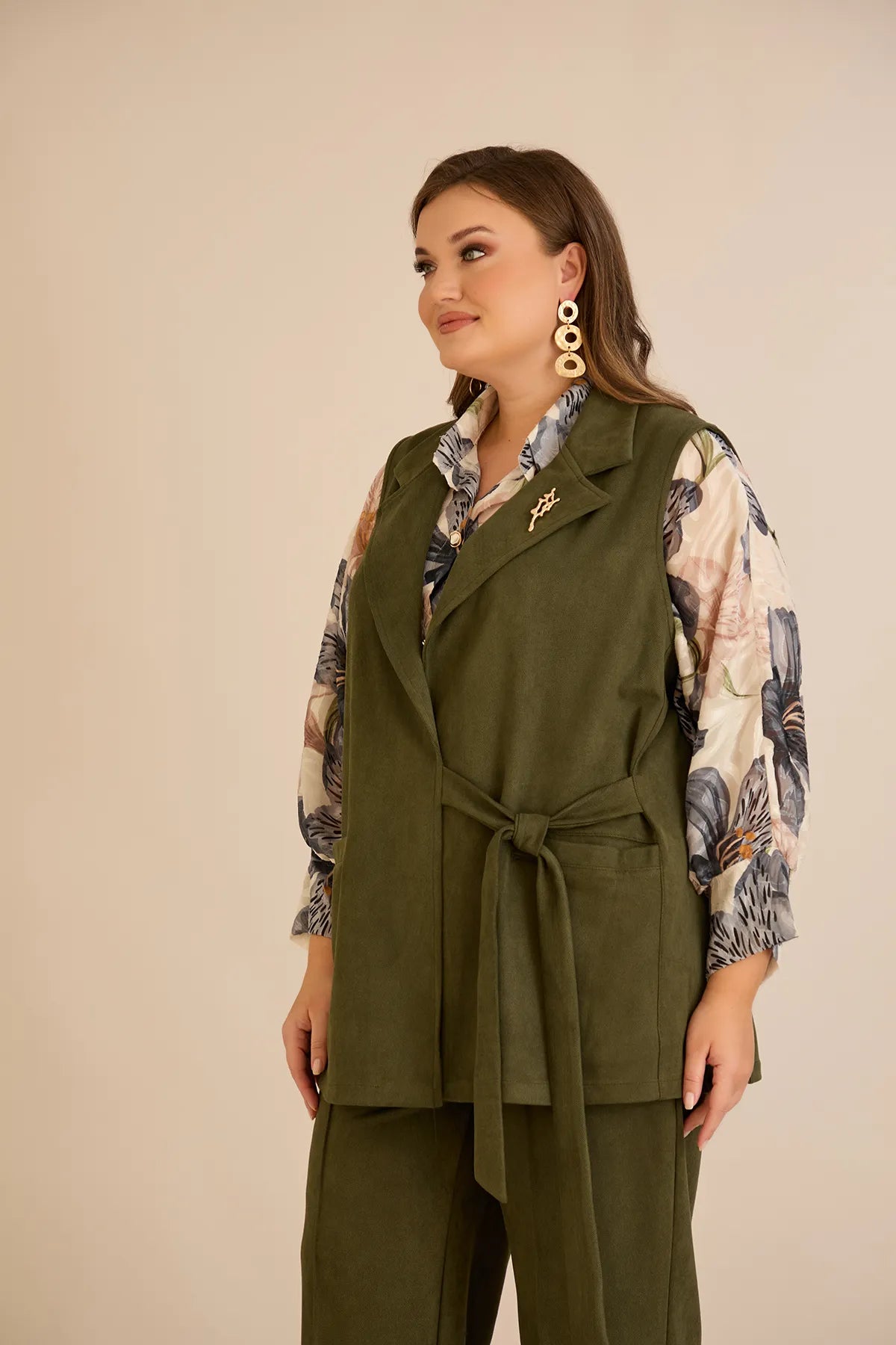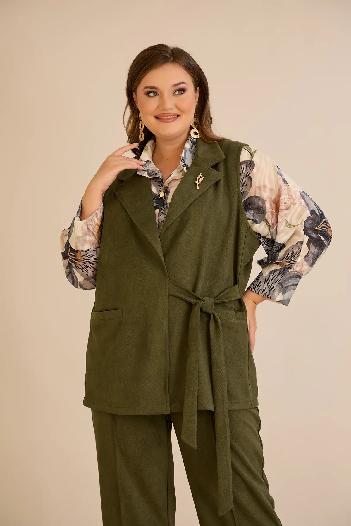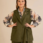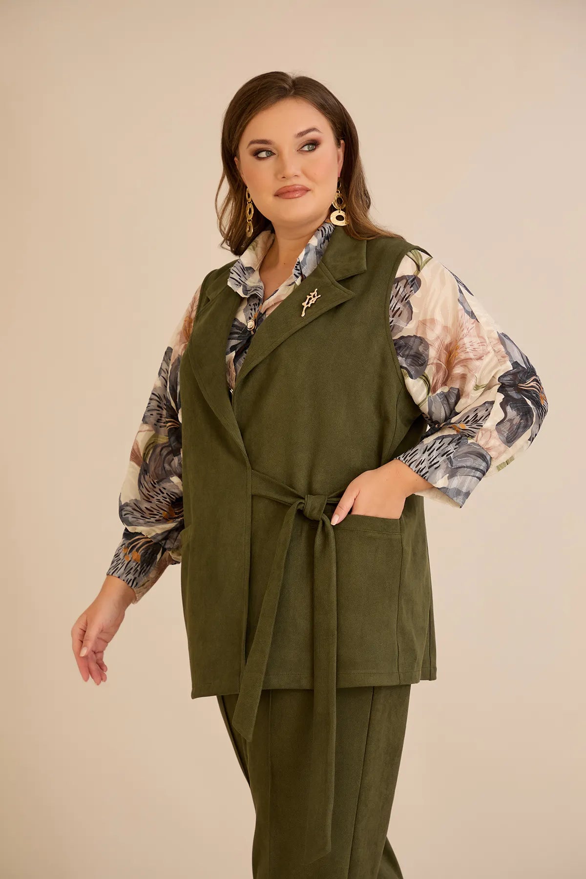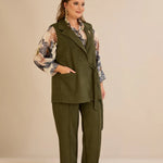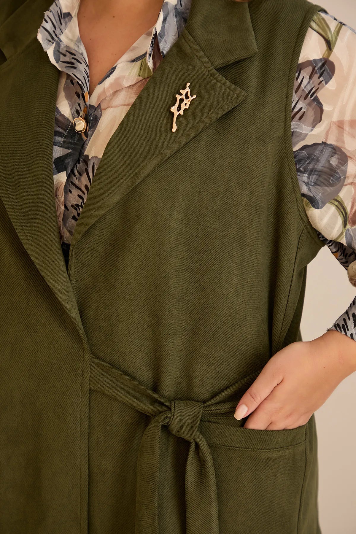 Елегантен елек с ревер и брошка - каки
