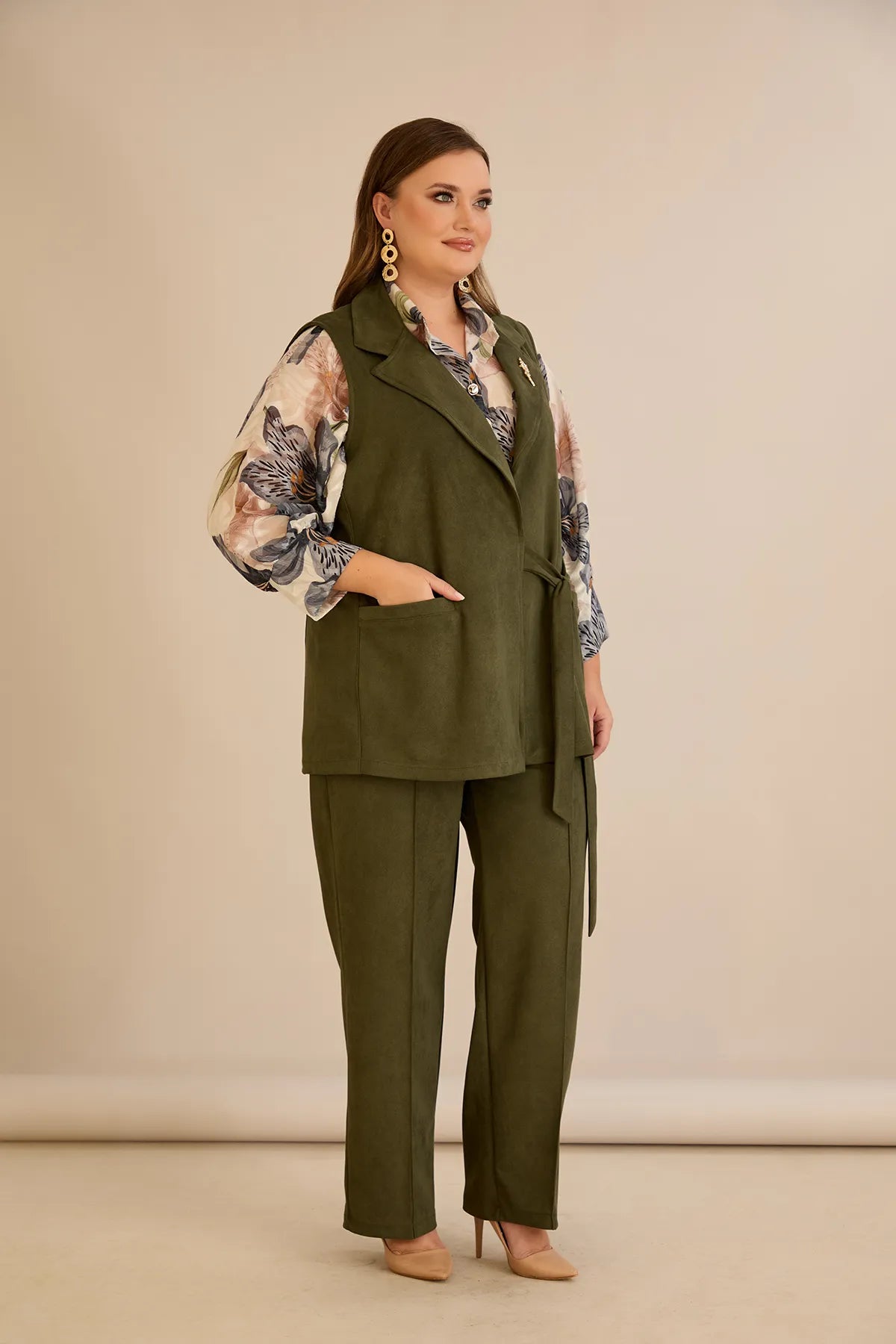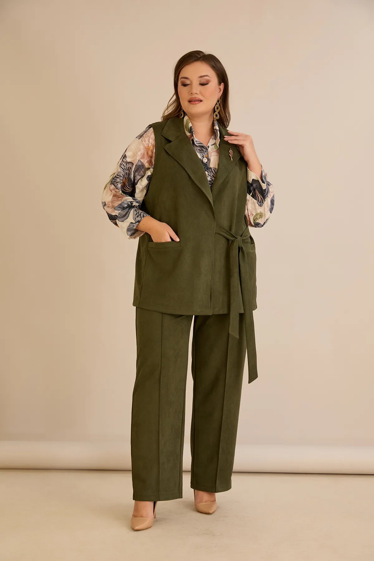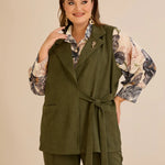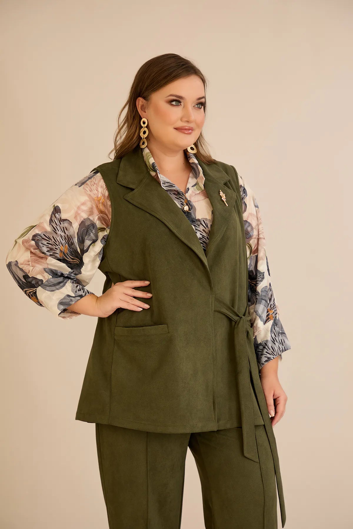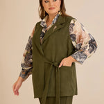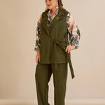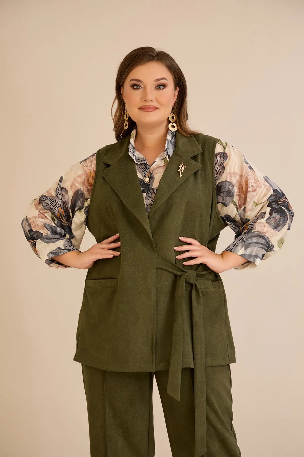 Елегантен елек с ревер и брошка - каки