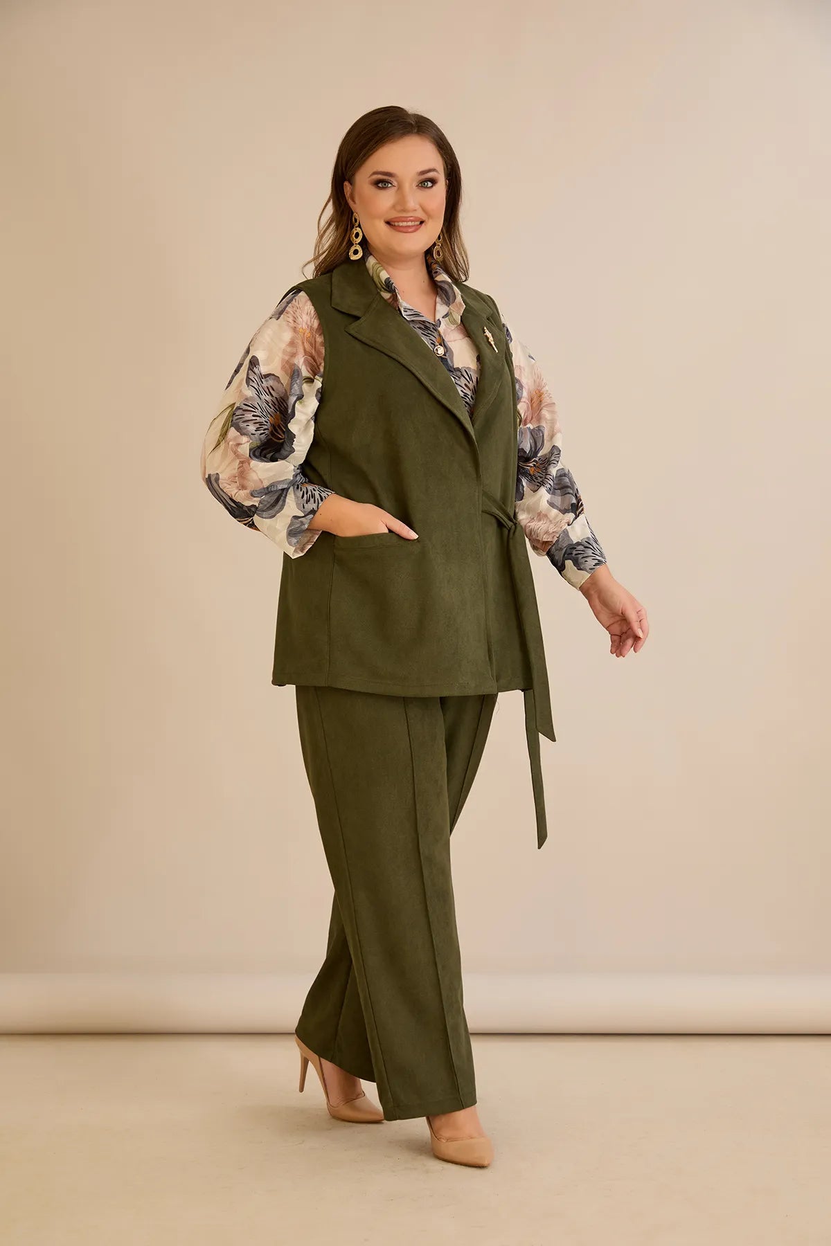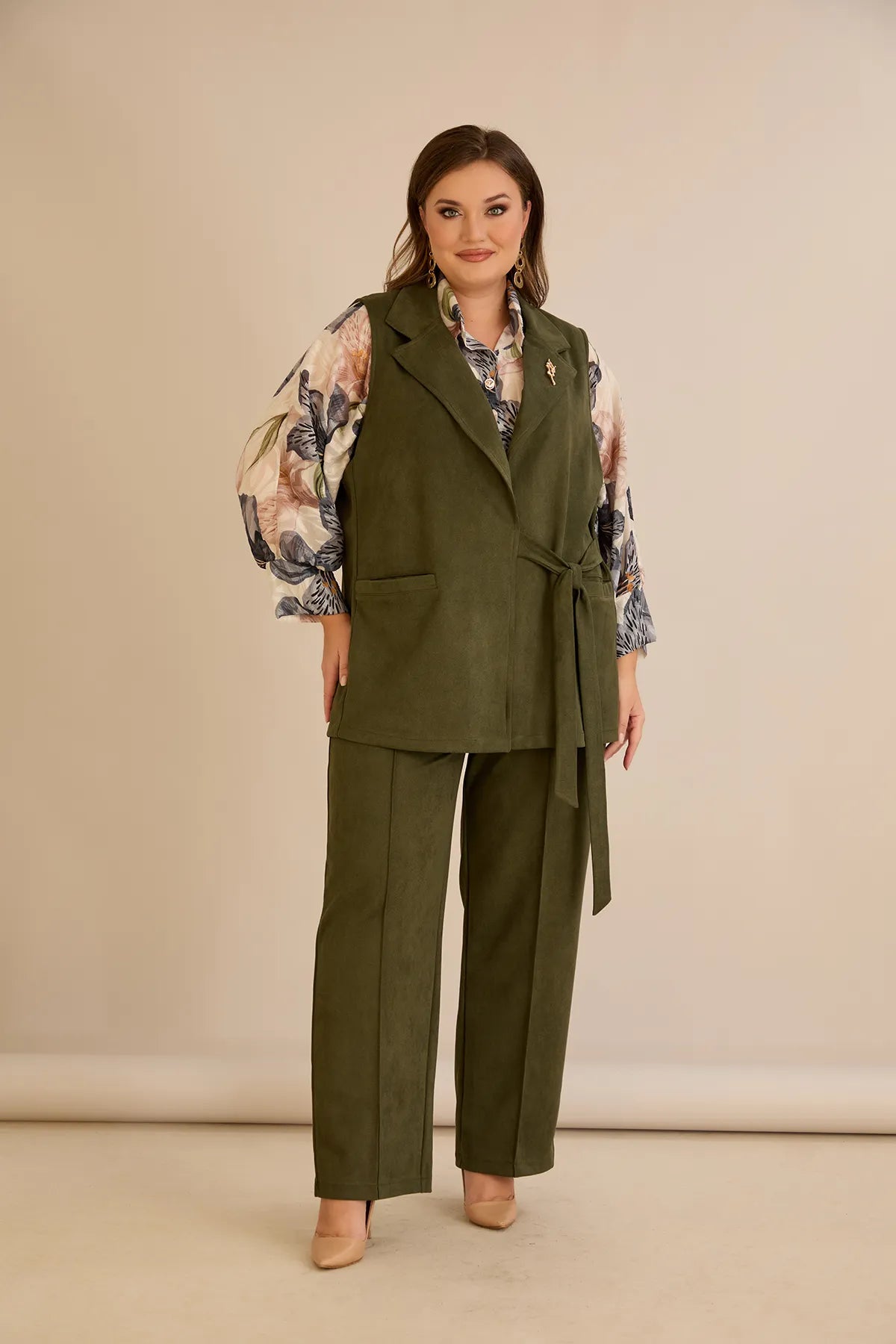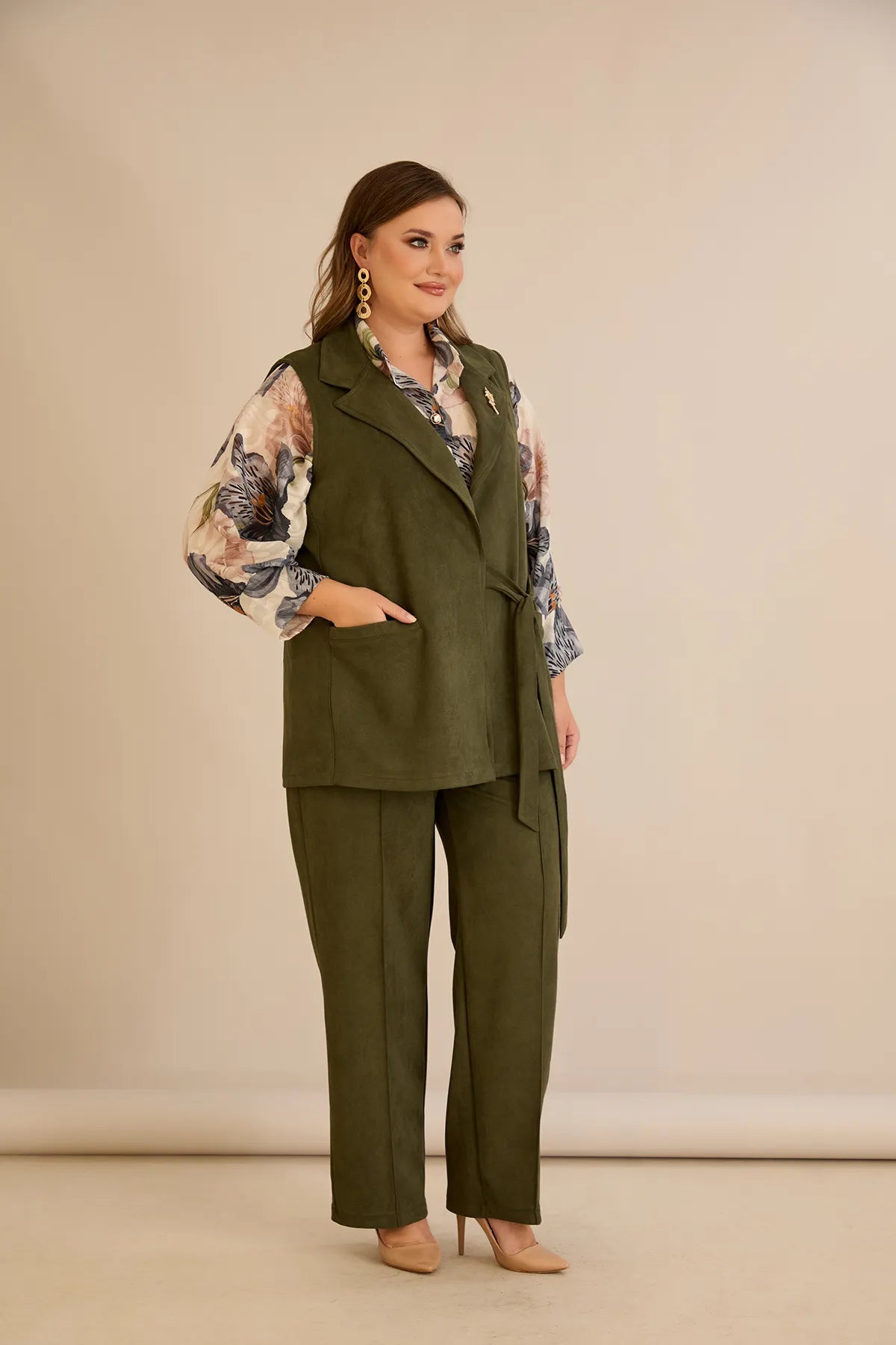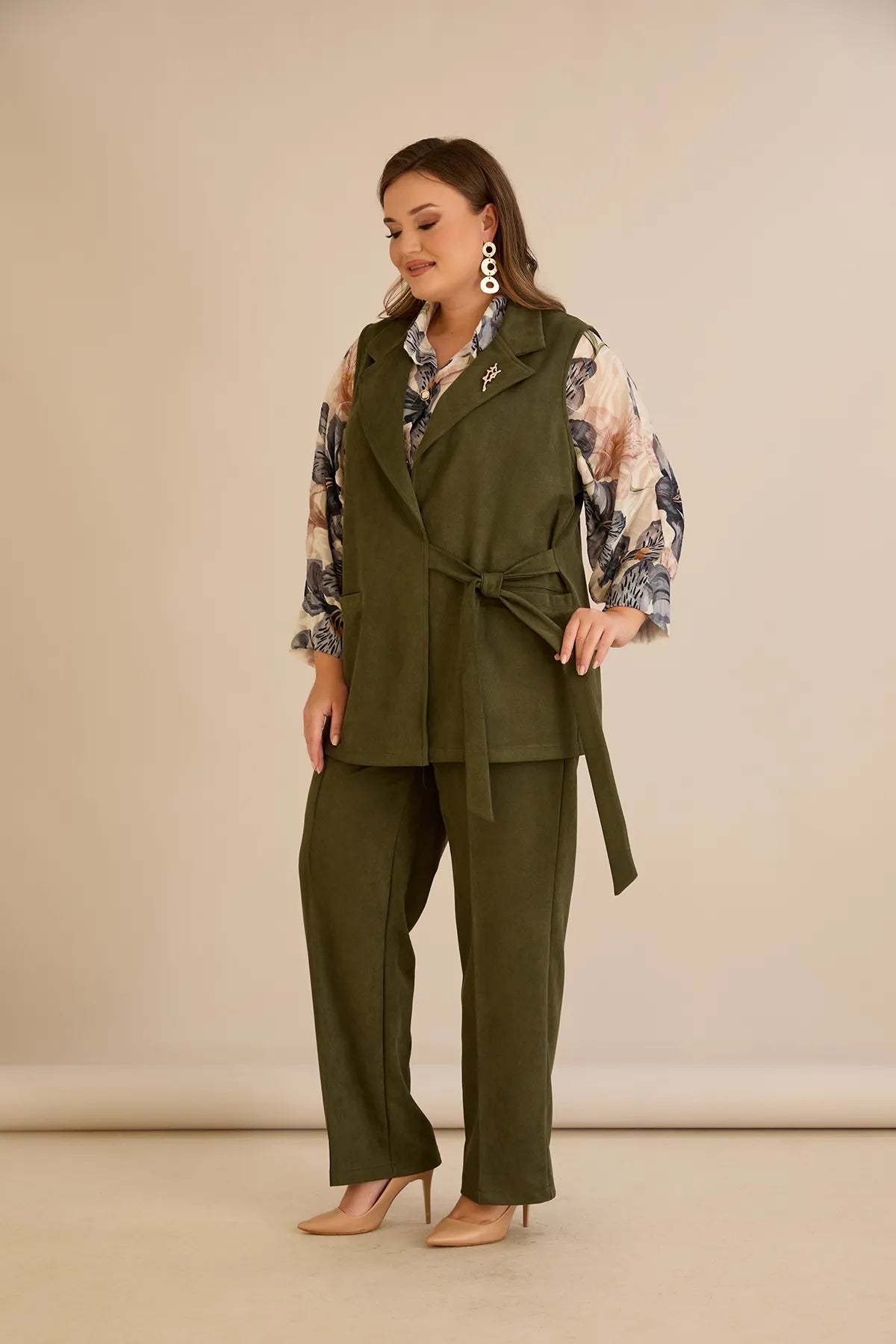 Елегантен елек с ревер и брошка - каки