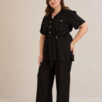 Елегантен сет две части от лен и вискоза - черен