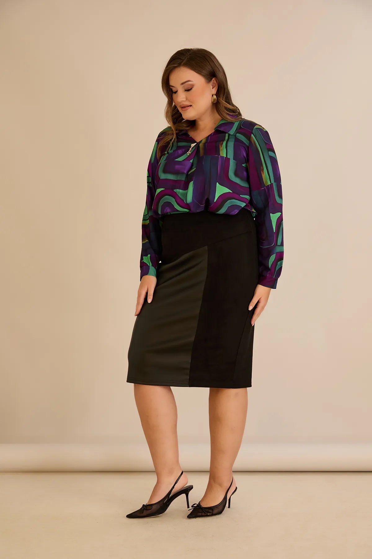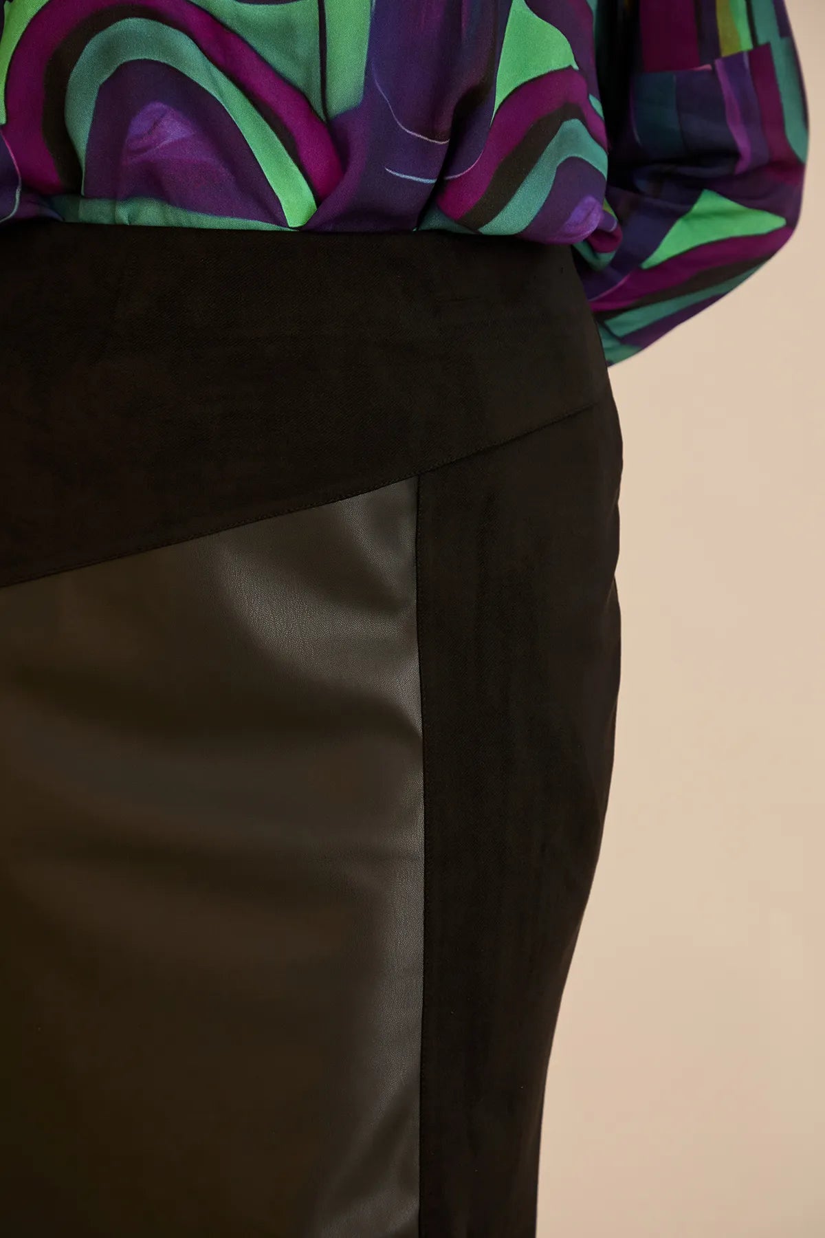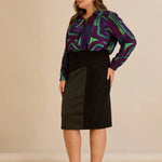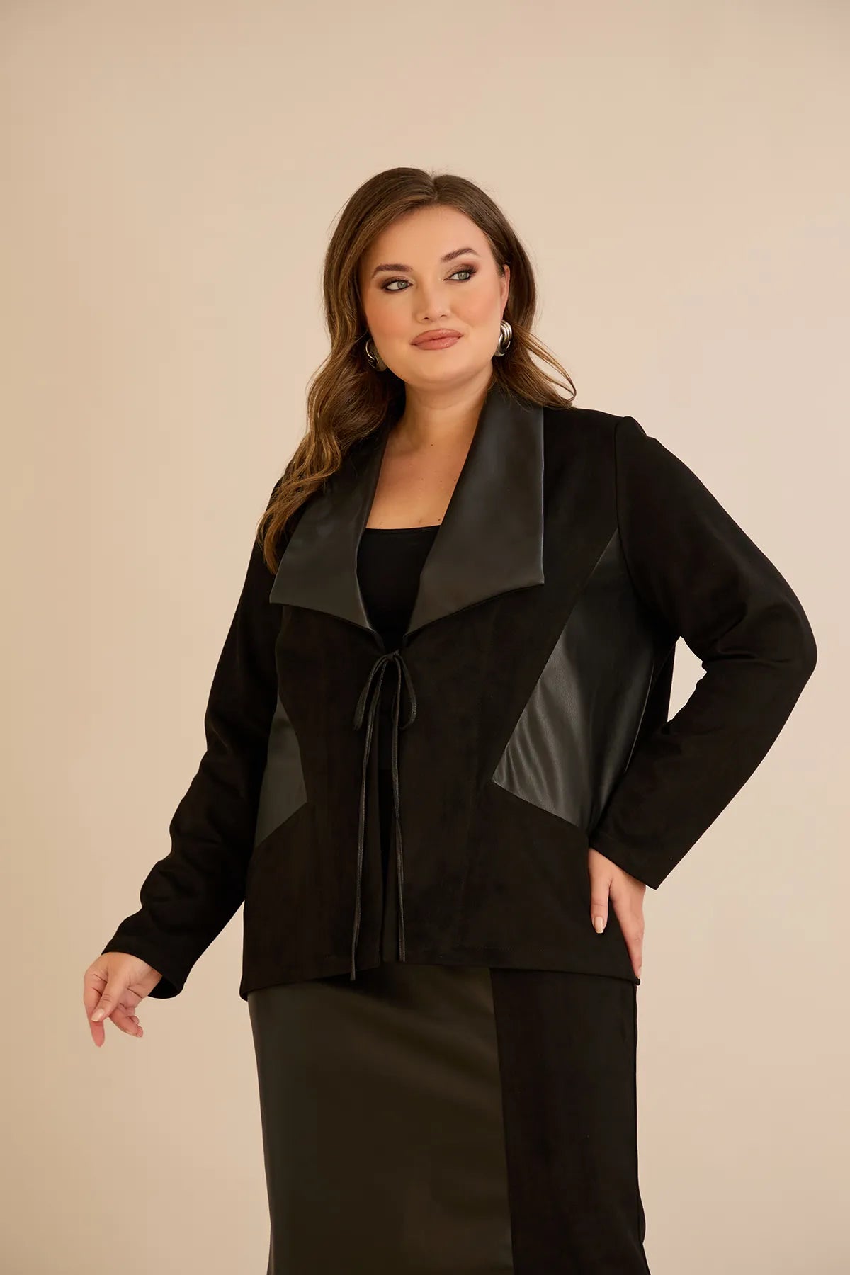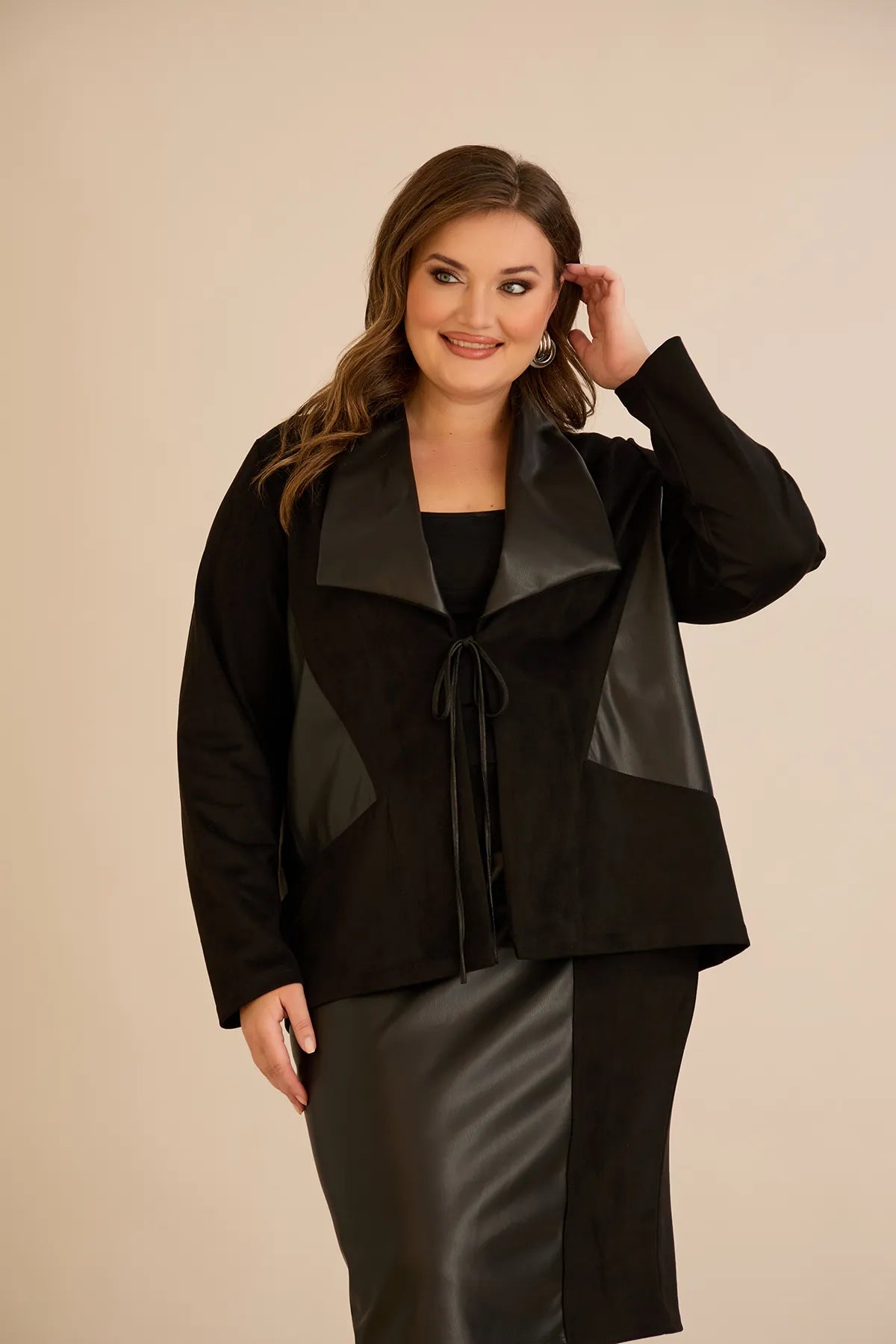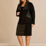 • Сет от две части с кожени акценти - сако тип блейзер с връзки и пола с Midi дължина
