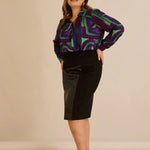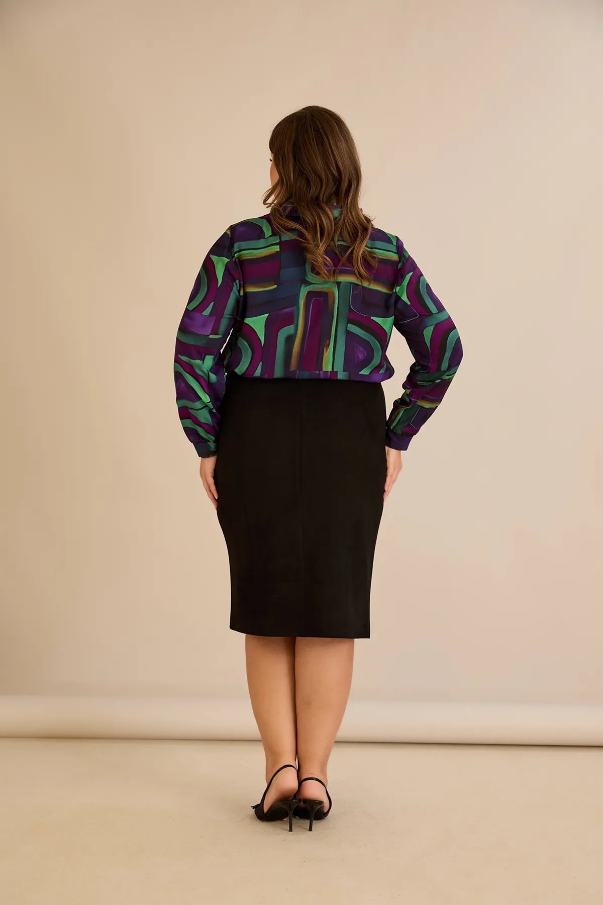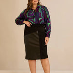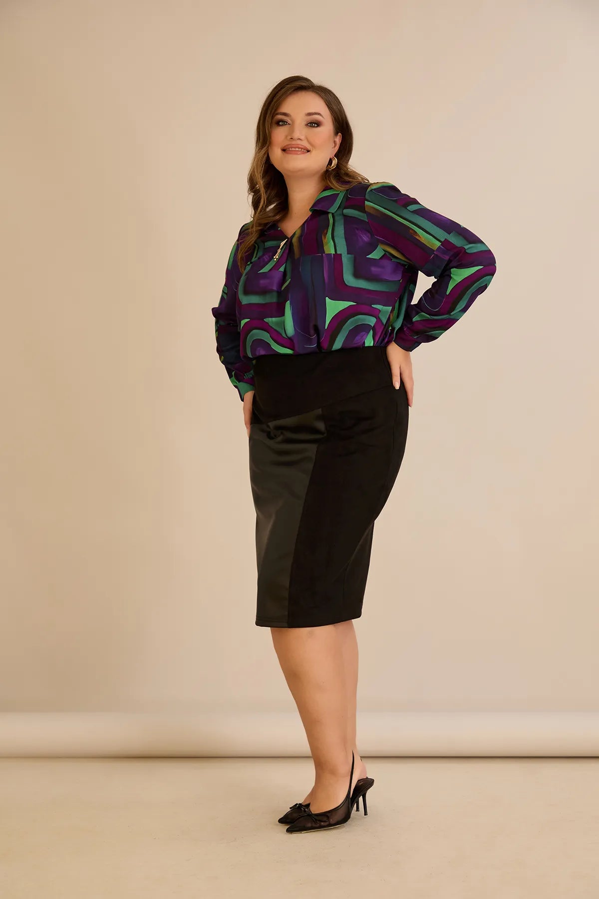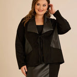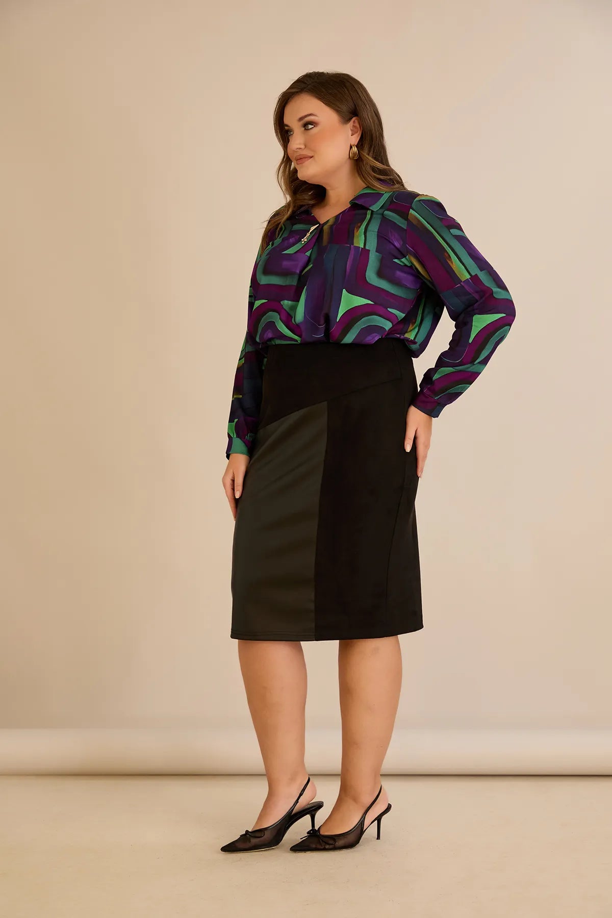 • Сет от две части с кожени акценти - сако тип блейзер с връзки и пола с Midi дължина