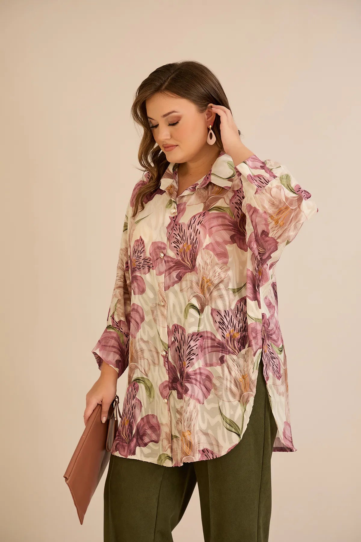 • Ефирна и елегантна риза, изработена от лека материя с деликатен релеф и блясък