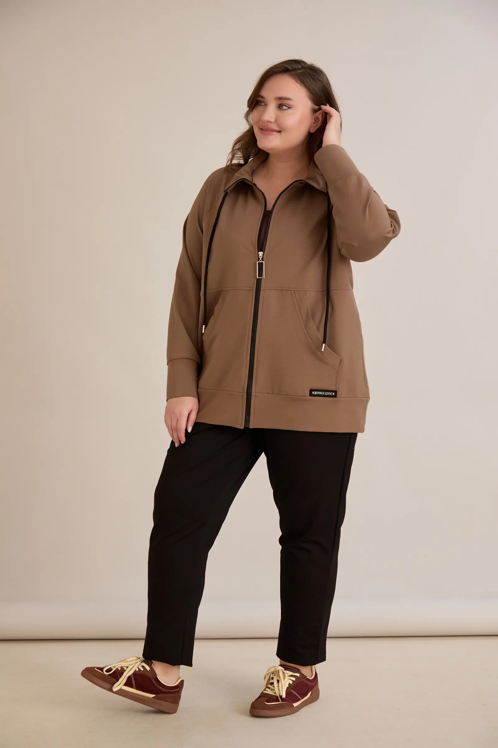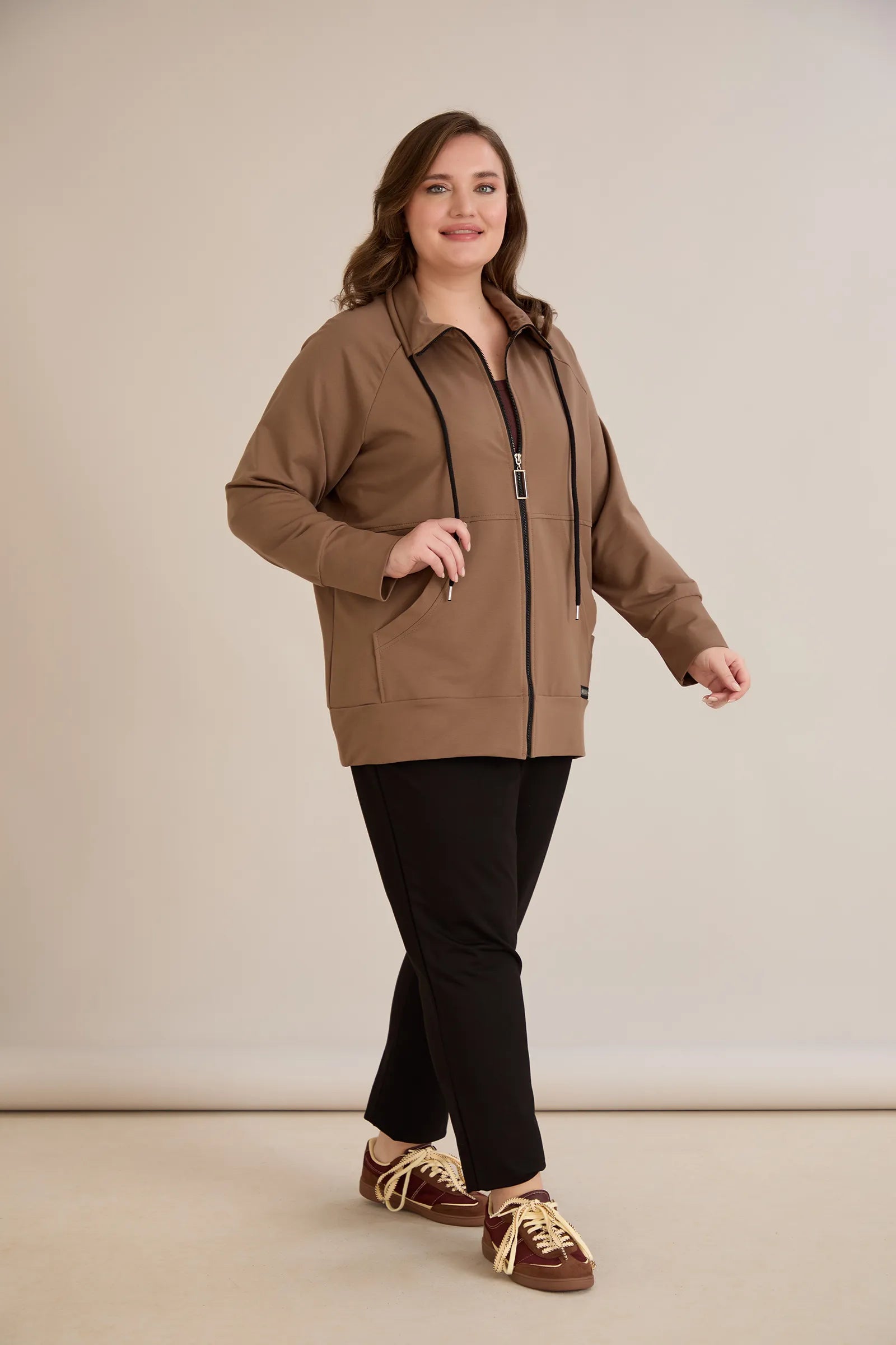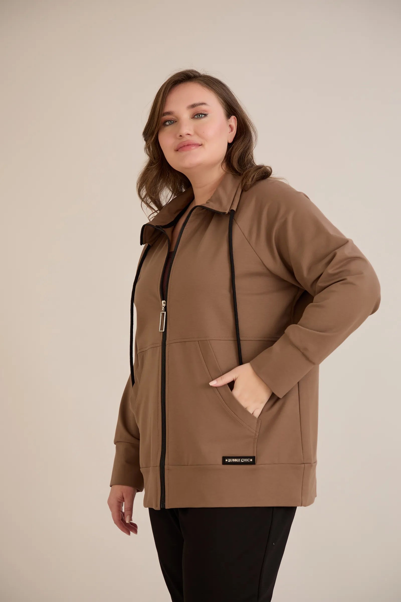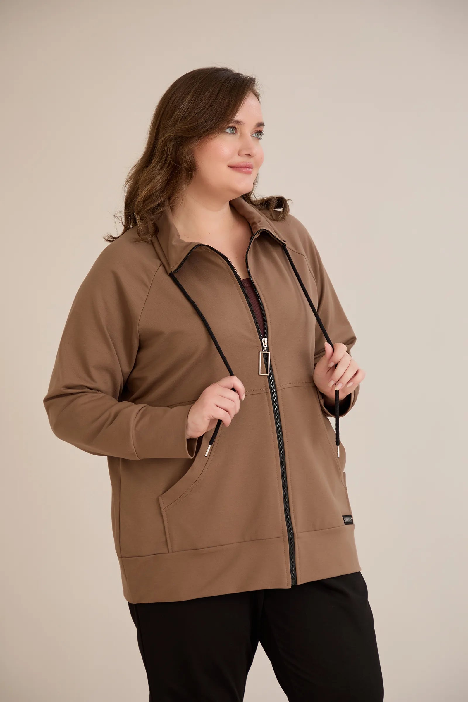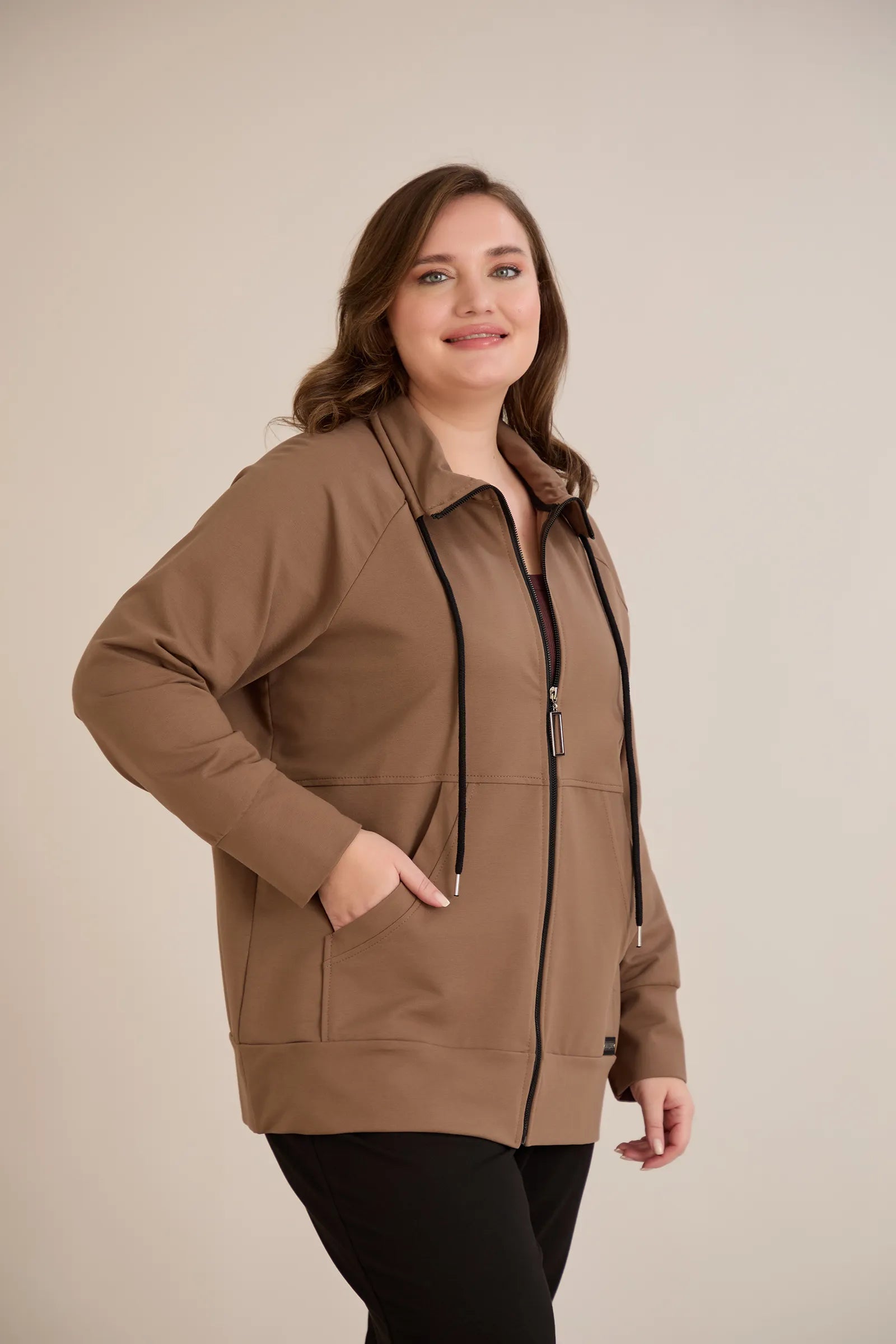 Горнище с цип и джобове - визон