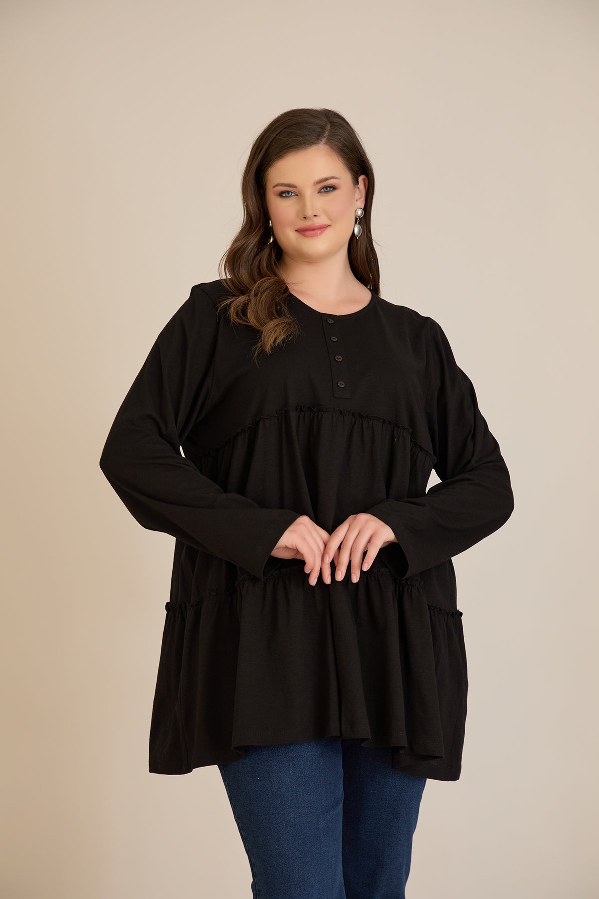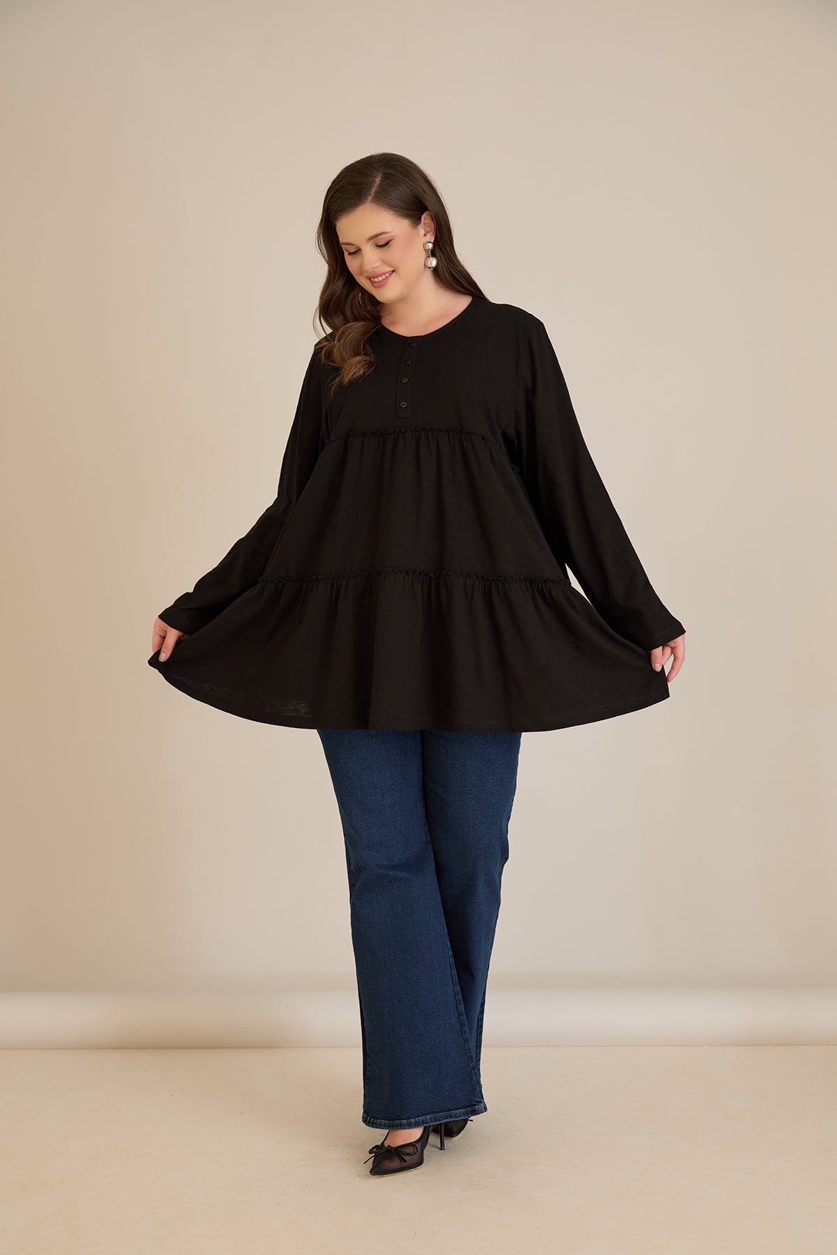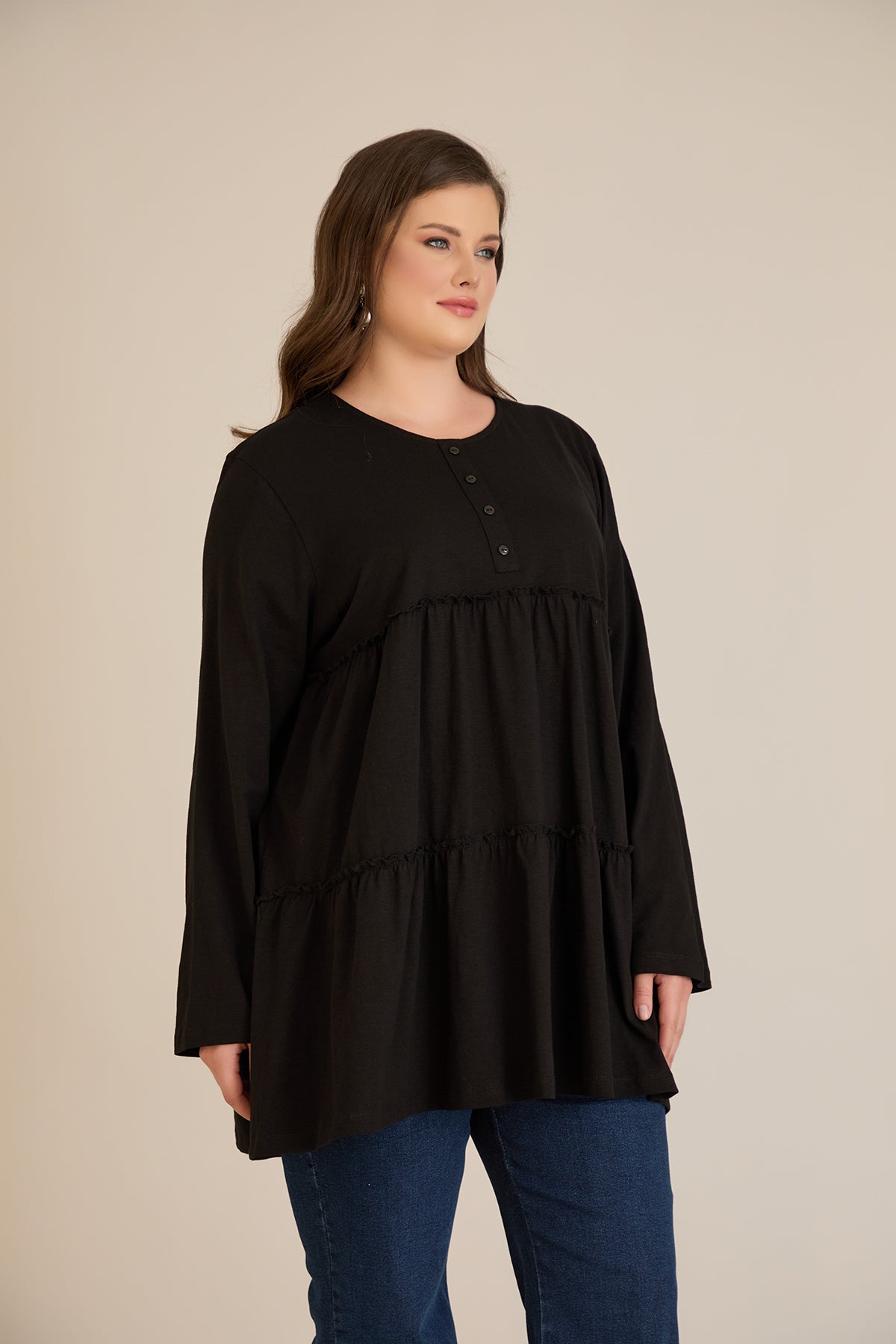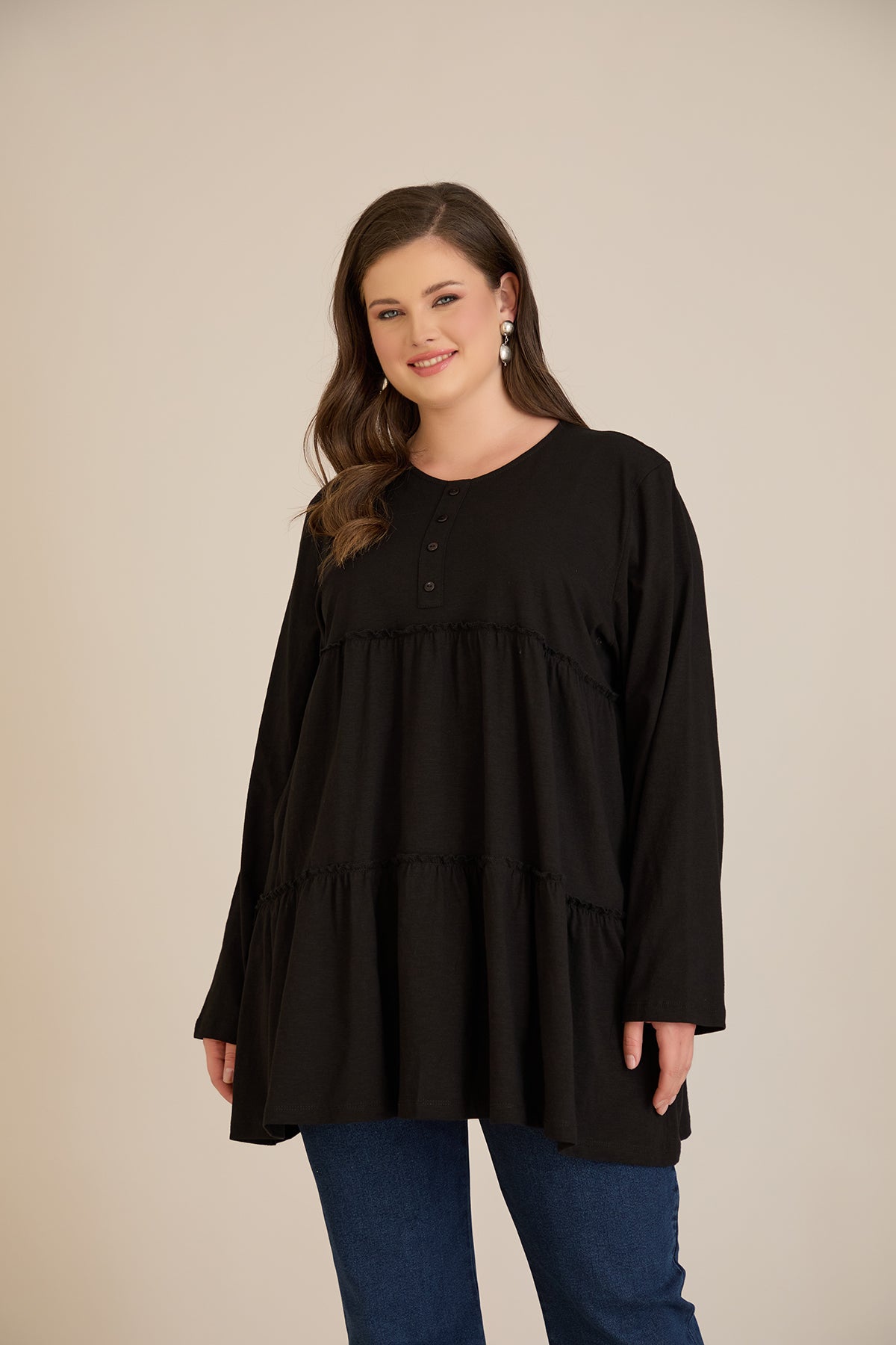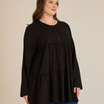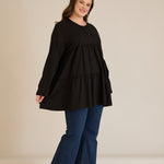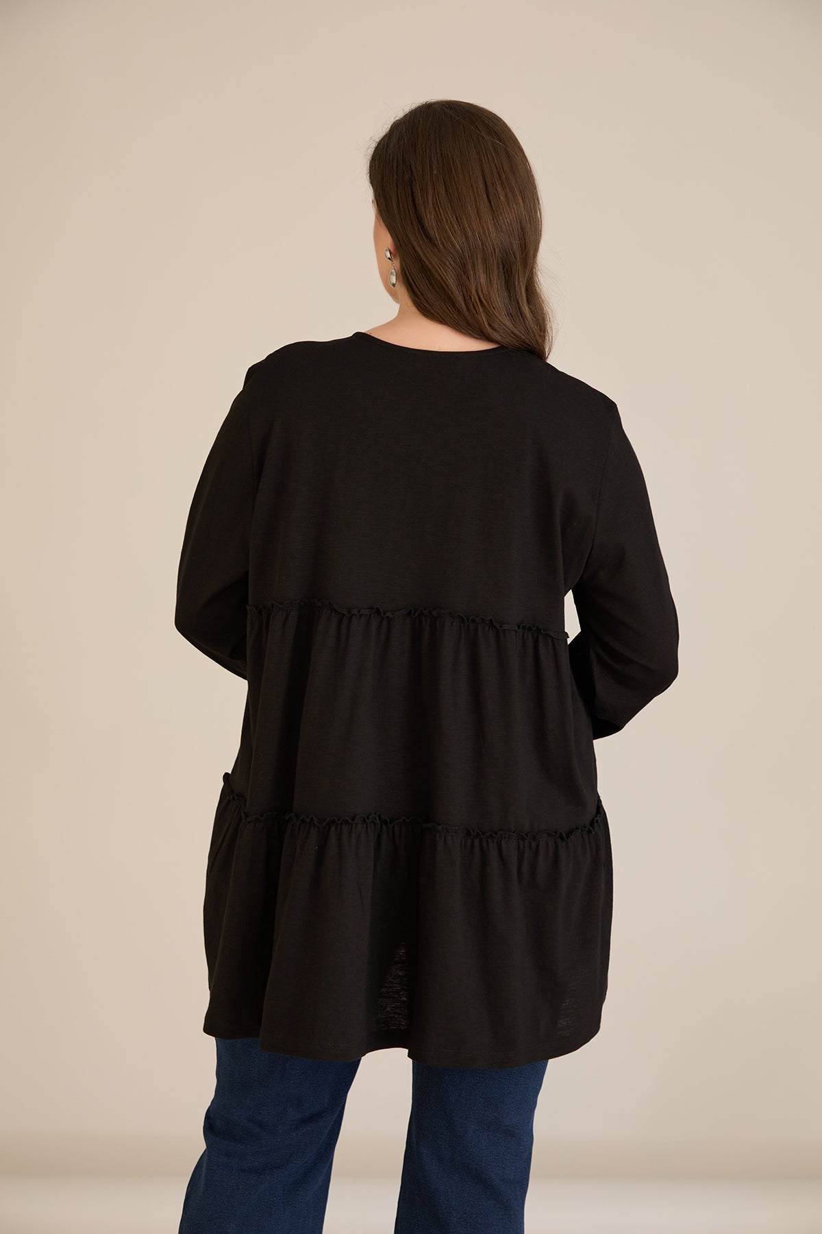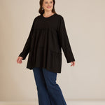 Памучна туника с дълъг ръкав - черен