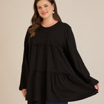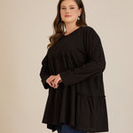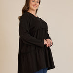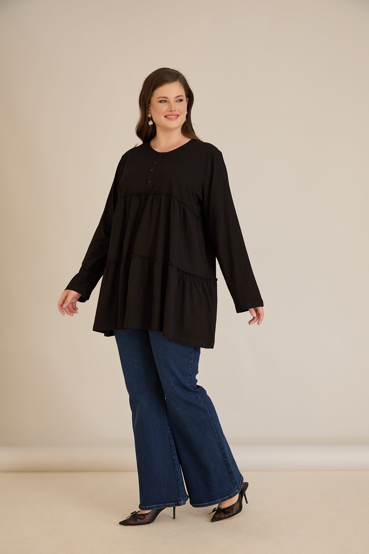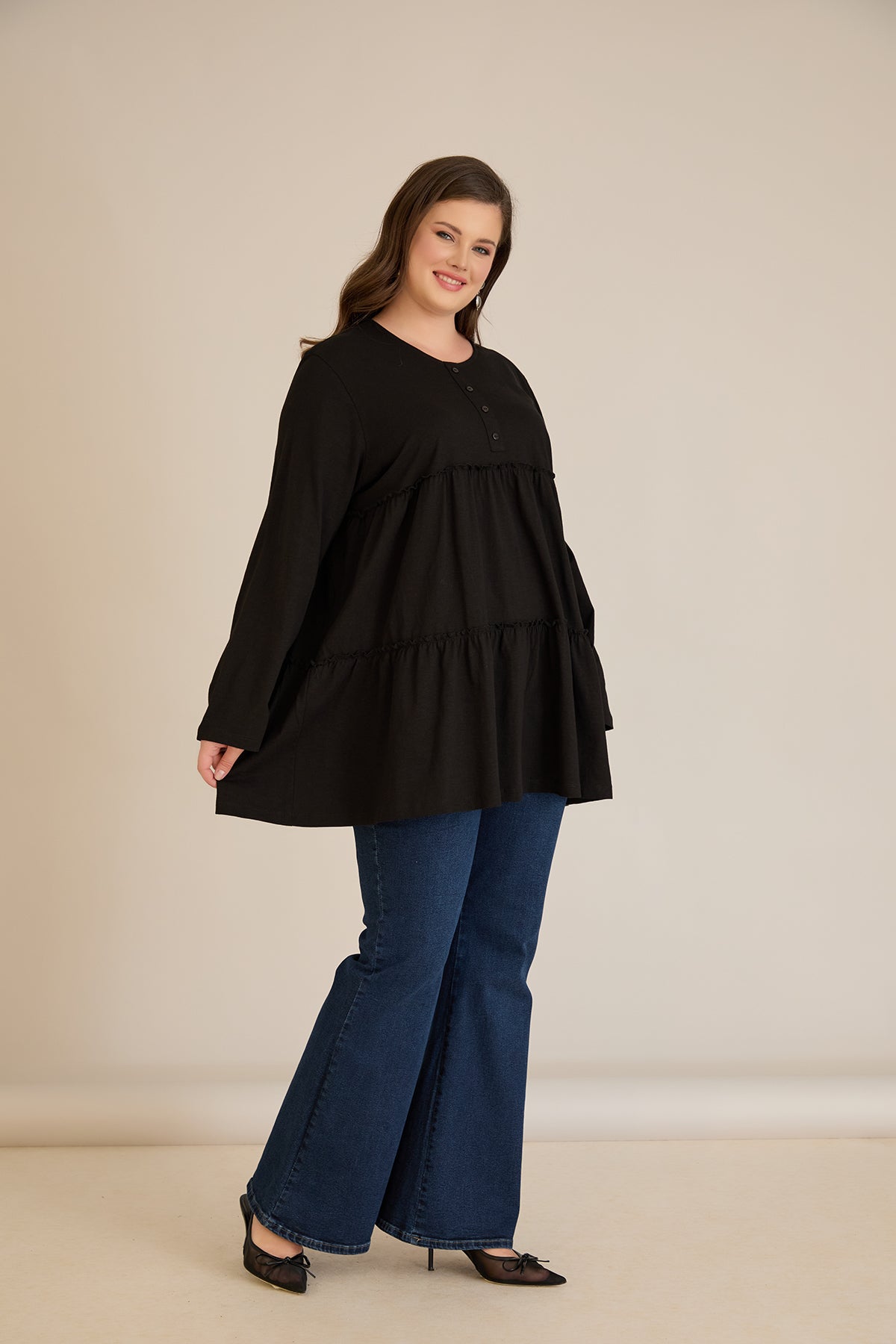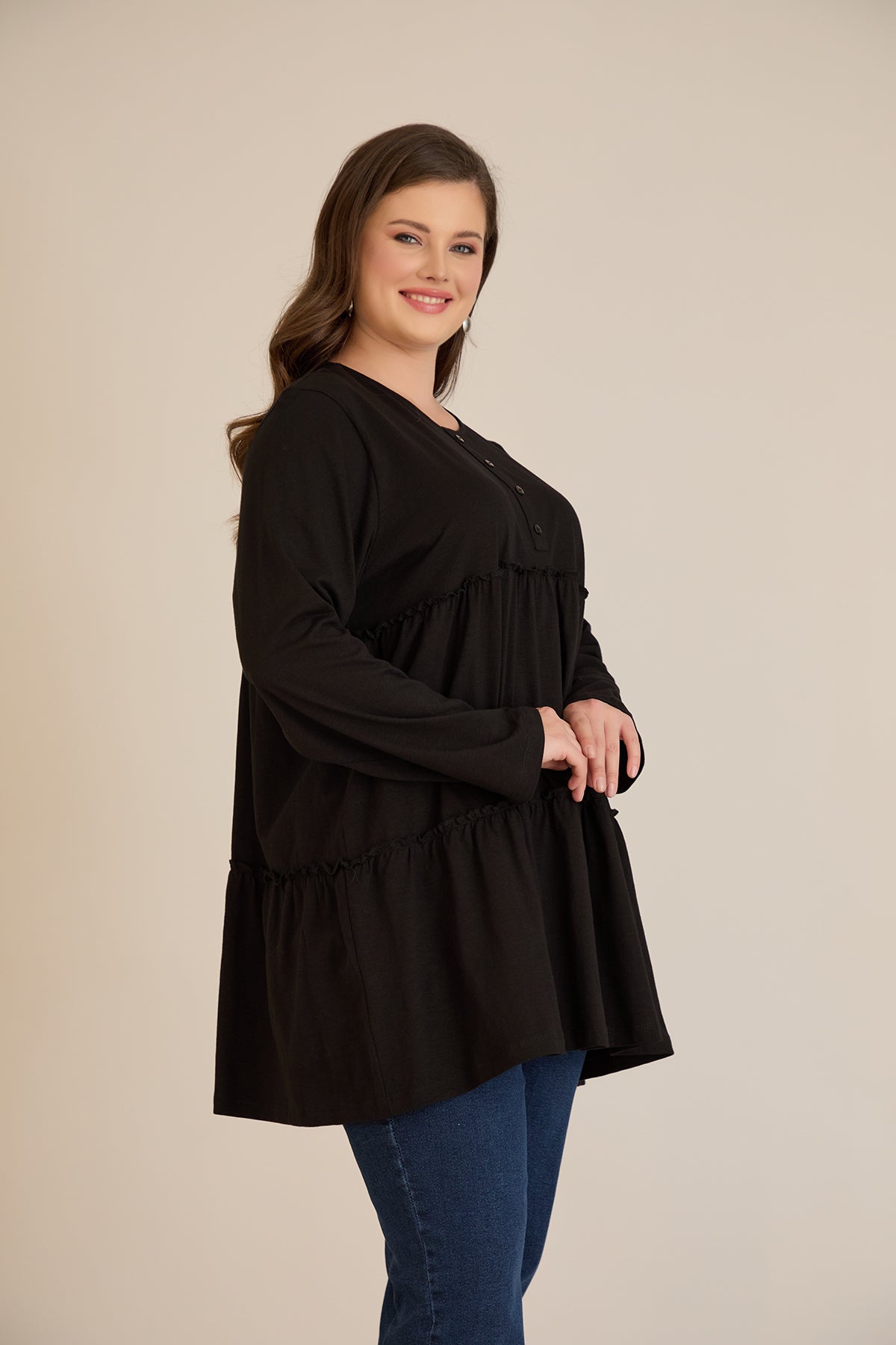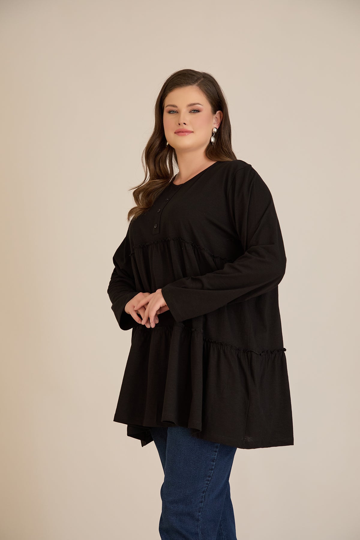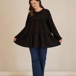 Памучна туника с дълъг ръкав - черен